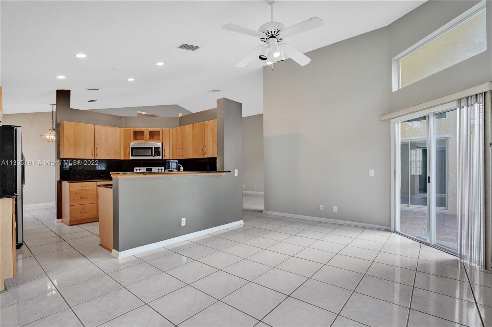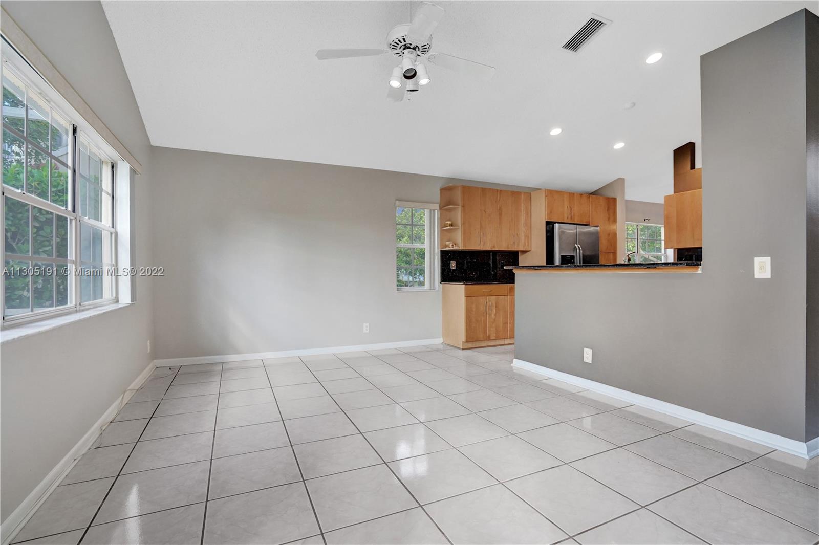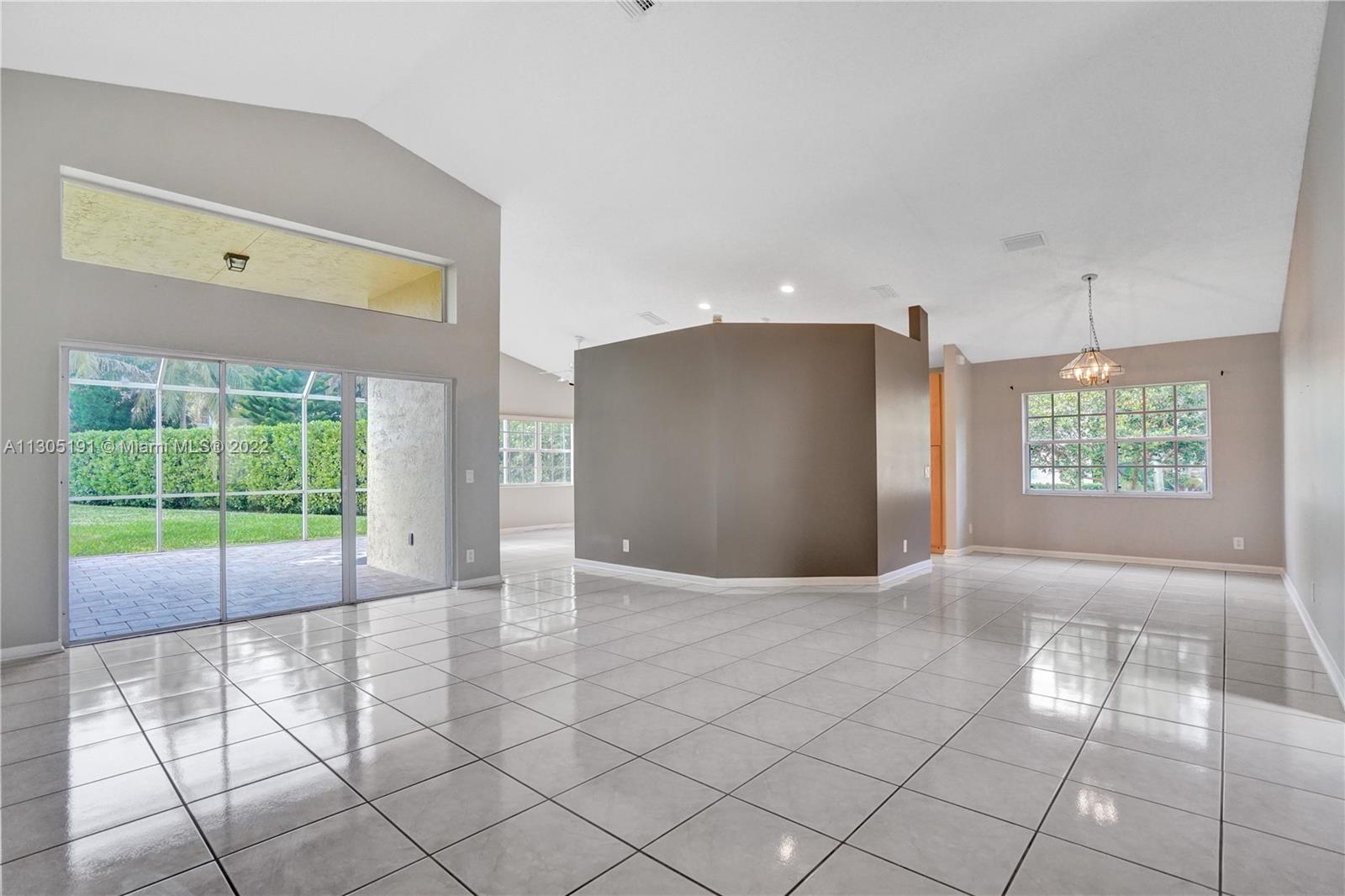 Very large 4/3 one story home on a huge 10,000 sf corner lot. Light and bright home that truly shows great with a nice open floor plan and high cathedral ceilings. Ceramic tile flooring in main areas and new laminate flooring in bedrooms. All bathrooms have been beautifully remodeled. Upgraded kitchen with granite, wood cabinets and newer stainless steel appliances. Big covered screened patio and a huge backyard with room for a pool. Great neighborhood with community pool, A-rated schools and close to shopping and restaurants. Will not last!