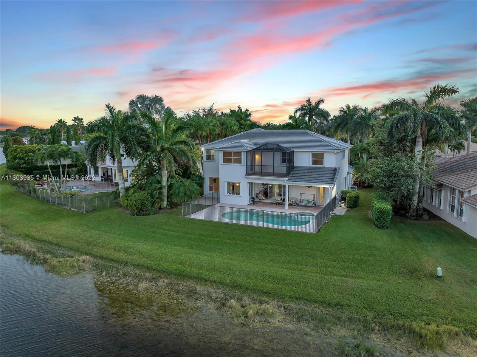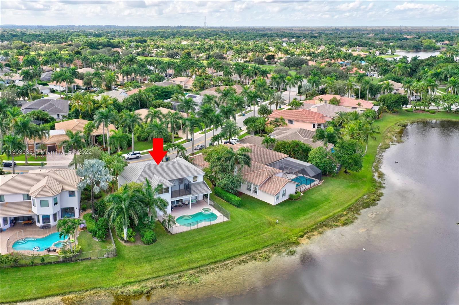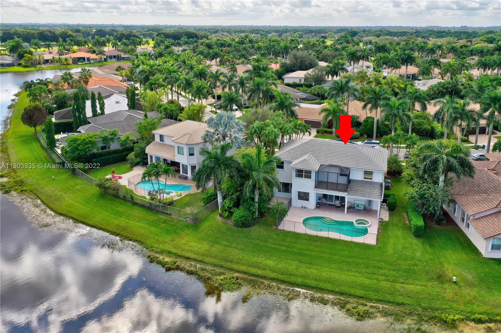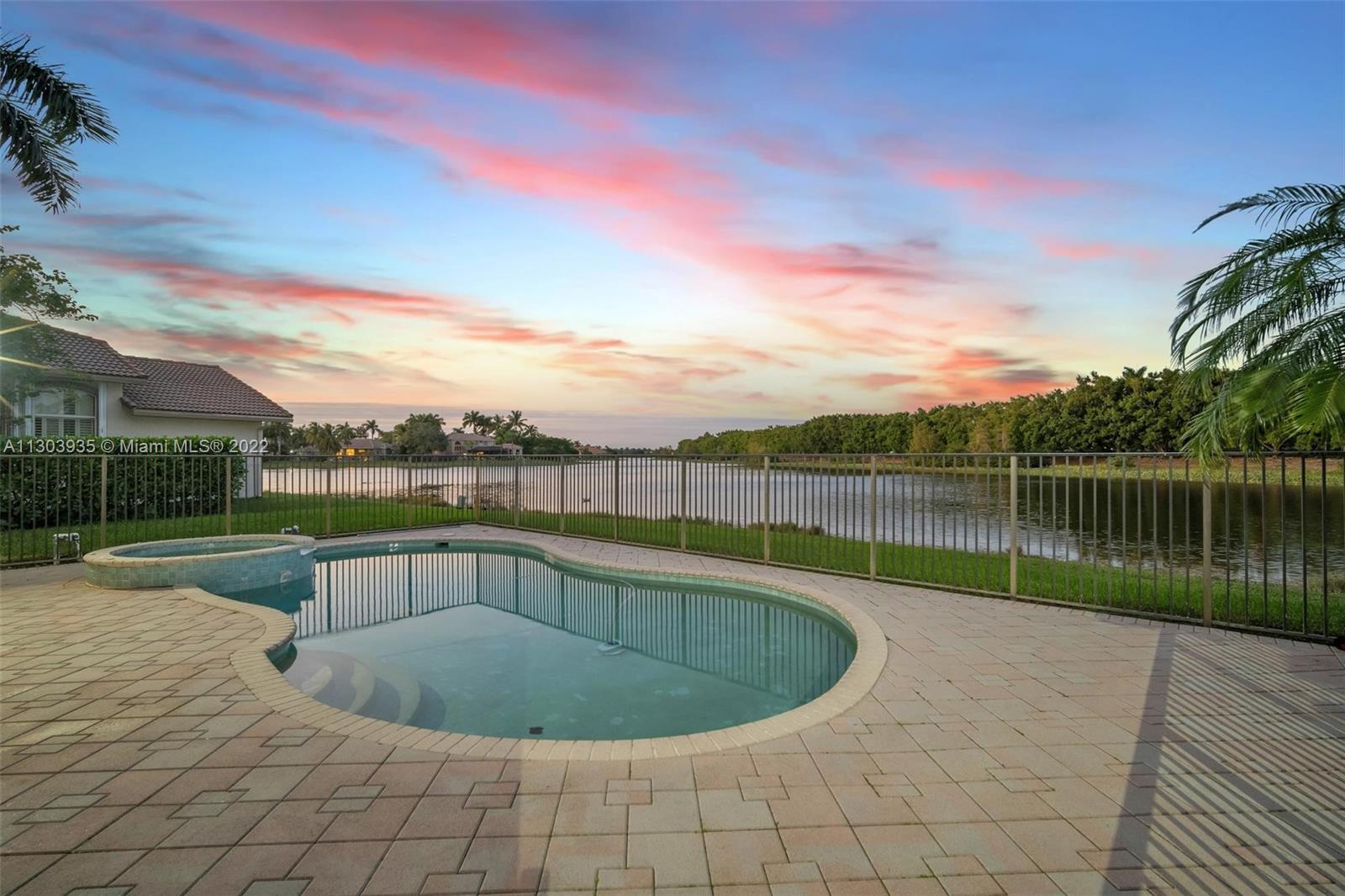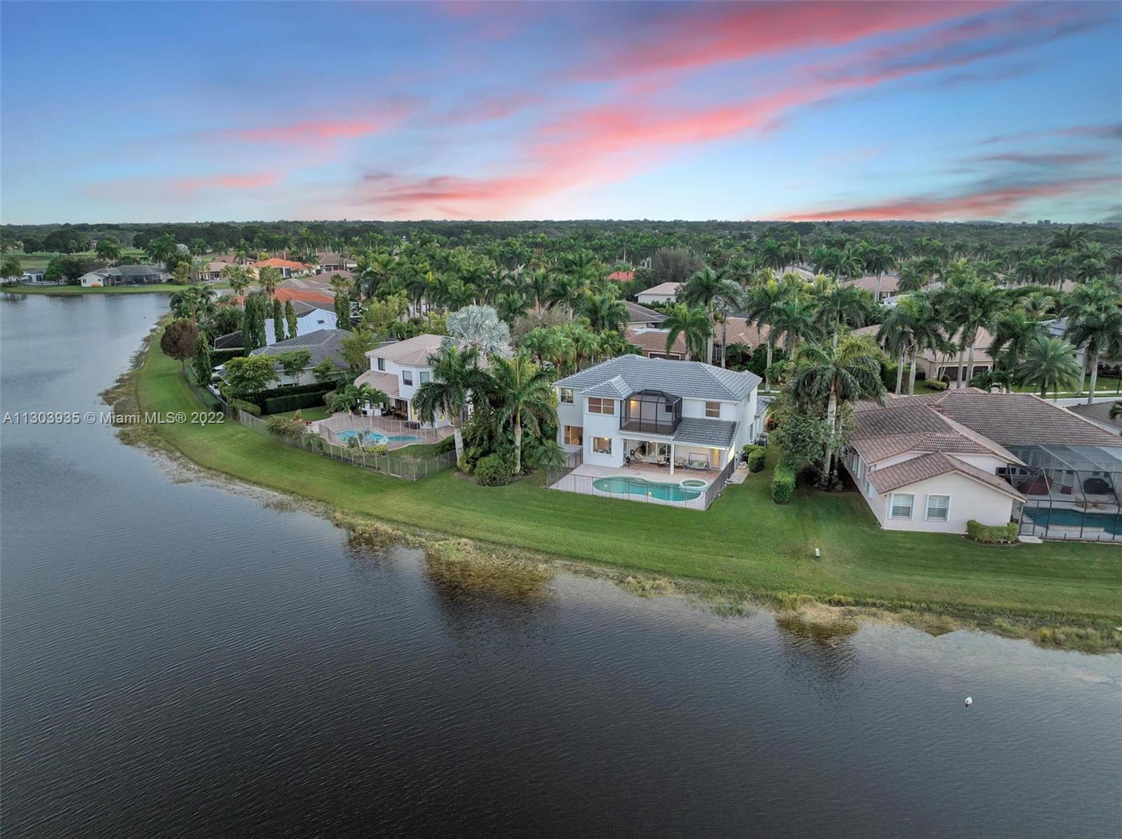 Finally, the home you have been waiting for with a NEW ROOF (2021) in coveted Weston Hills. Full accordion shutters in this two-story dramatic entry home. Gorgeous panoramic un-obstructed lake view, sunset views included. COMPLETE EXTERIOR PAINT 2022, 3 car garage AND circular driveway. 5 bedrooms include a spacious first floor bedroom/study & cabana bath. Soak up the lake view from your eat-in kitchen, family room & expansive paved deck. Entertainers dream! Upstairs features mahogany wood floors, all renovated bathrooms, 4 bedrooms include a Jack & Jill bathroom, a 2nd bedroom also en-suite. Expansive primary bedroom includes vaulted ceiling, 2 walk-in closets, exotic marble, extra sitting area and a great view of the lake from your screened in private balcony- a true luxury retreat.
