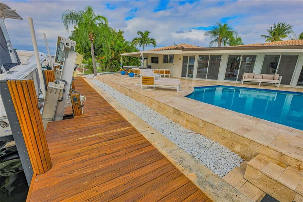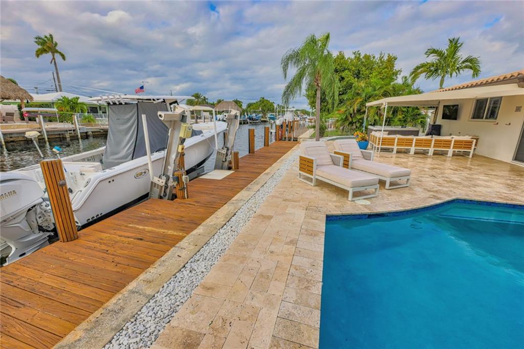 Boater’s Dream! This 3/2 ocean access pool home with 60 foot dock on a quiet cul-de-sac in Garden Isles is the perfect place to call home. Beautifully maintained and upgraded with impact windows and doors, modern granite kitchen and bathrooms, and tile throughout. Over 1900 sqft under air, enjoy fantastic canal views via the panoramic Florida room. This lovely home has a 1.5 car garage, and an open layout that is perfect for entertaining, hosting a backyard BBQ, or just unwinding in the pool or spa. With a huge travertine-paved backyard, resurfaced pool, and even a faux-grass play area, you’ll enjoy low-maintenance weekends. Don’t forget to bring your boat – just minutes to the Intracoastal, with a single fixed bridge at Federal Highway and a newer 16k lb aluminum boat lift.