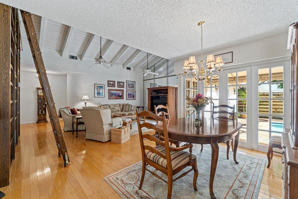 Price Improvement! Very charming home in the sought after community of The Greens of Emerald Hills. Enter the living room with open beam, wood, vaulted ceiling, accompanied by the awesome built in bookshelf with rolling ladder ( it's 15 ft tall!) The floors are hard wood, in the liv rm - tile in kitchen and new carpet in master. The private pool/patio area has lush landscaping, brick pavers and an awning for shade. plus a side sitting area - great for entertaining and great views from the kitchen and fam room. All the sliders and kitchen window are impact, there are shutters for the other 4 openings. This house is NOT updated, but has been well maintained by owner of 22 years. Motivated seller.