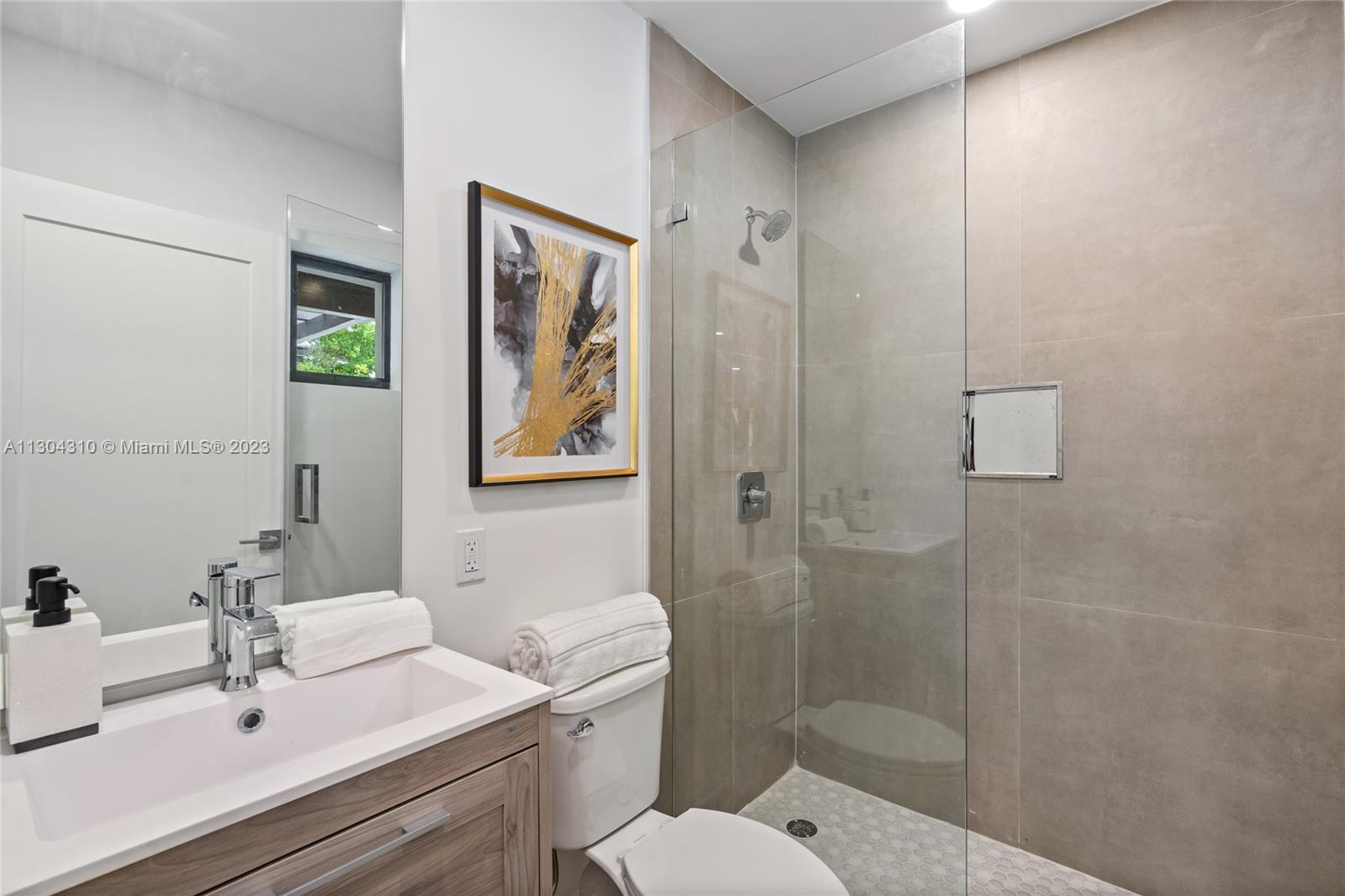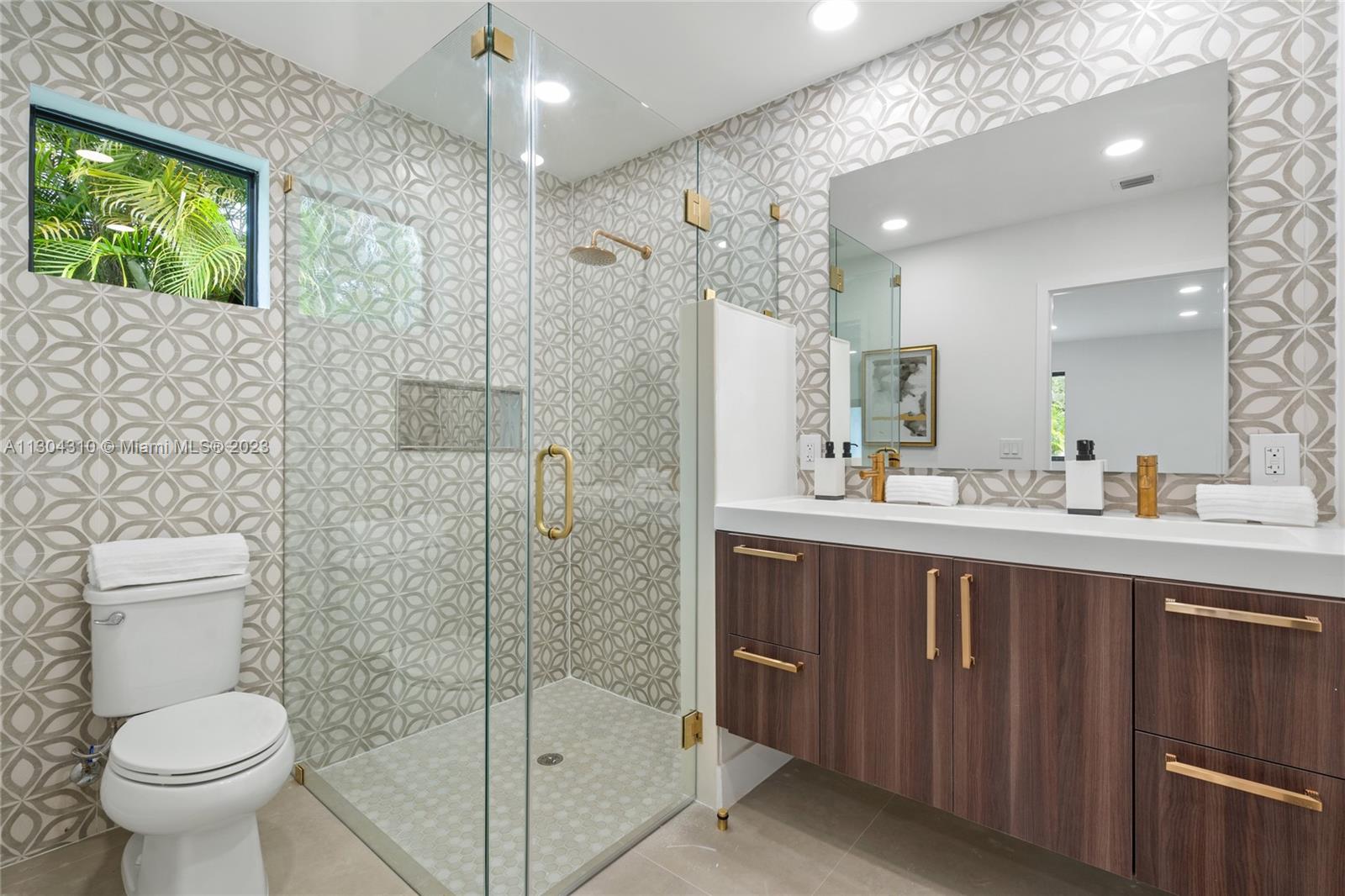New South Coral Gables turnkey move-in-ready home lives large. This spacious turnkey home has 4 bedrooms, 5 bathrooms, pool, & 2-car carport on a perfectly located gated corner double lot. A rare find, each bedroom has ensuite bathrooms & generous closets. New plumbing, electrical, mechanical, roof, impact windows, cabinetry & flooring. Property has 3 electric gates with access from San Remo Ave and Domenico Ave. Open floor plan with beautiful custom kitchen, Bosch appliances & large walk-in pantry. Other features: spacious laundry, mudroom, 32x32 porcelain flooring, LED recessed lighting throughout. Located within top rated Sunset Elementary school district & walking distance or fun golf cart ride to restaurants, shopping, groceries, park & top rated schools Coral Gables has to offer.