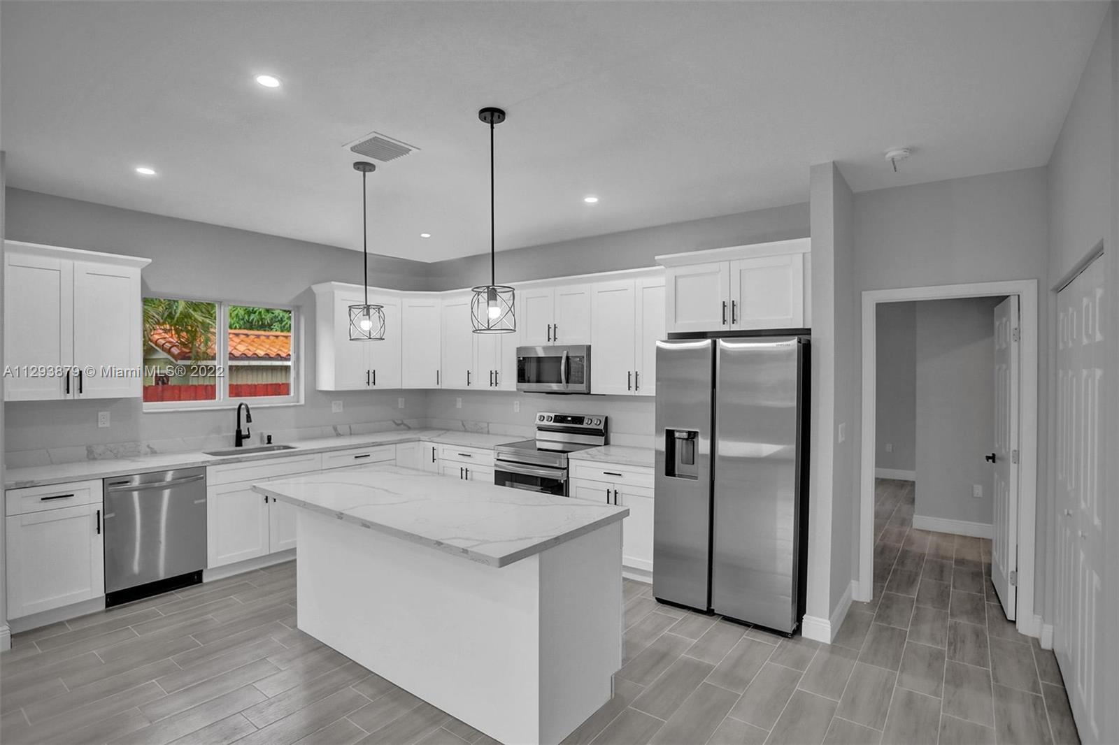 Come take a look at this BRAND NEW home built in 2022! This Modern new construction home is 1711 sq. feet and offers impact windows, a covered front entry, tile flooring throughout and Brand New Samsung appliances. Relax in your spacious master suite and enjoy an immaculate master bath with stand-up shower and a large walk-in closet. This well designed home features large bedrooms with ample closet space, spacious bathrooms. Enjoy the open concept kitchen with a great island, stainless steel appliances, quartz counter tops and lots of natural light peeking into the living area. Enjoy the natural light coming through the the sliding glass doors that lead to your beautiful backyard and enjoy the egress windows overlook the side yard. This home is perfect for entertaining.