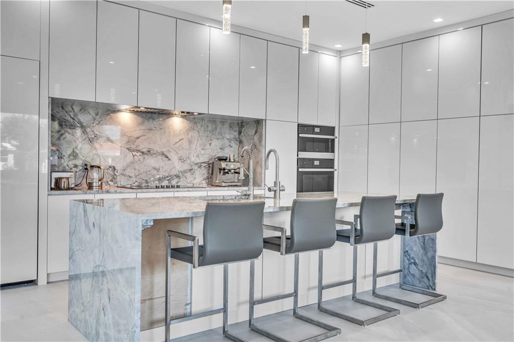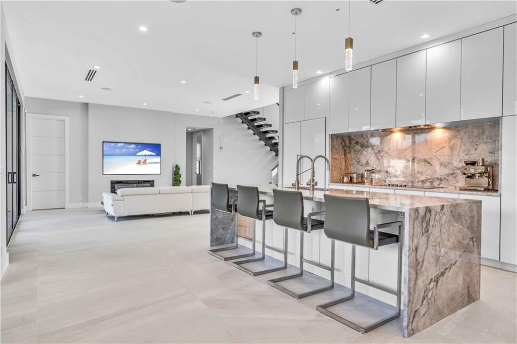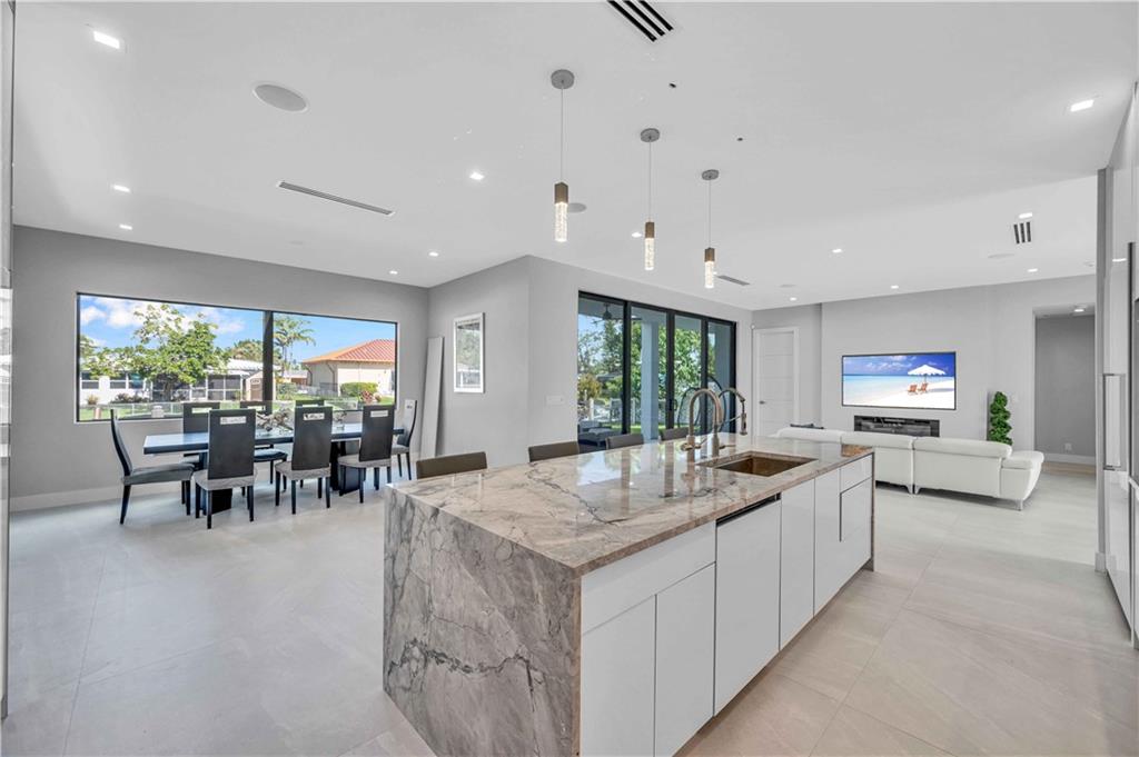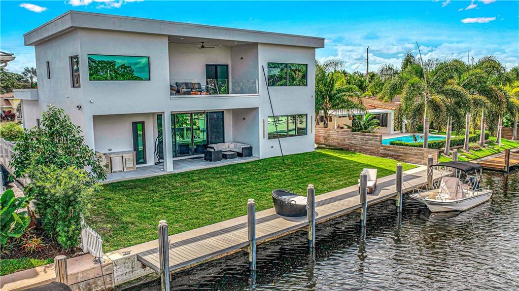 New construction ultra-luxurious waterfront home. This home is clean, fresh, and modern, with so many upgrades. There are 4 beautiful ensuite bedrooms. The main bedroom is elegant, with a lovely sitting area and a walk-out patio overlooking the water for your ultimate relaxation. It also includes a kitchenette, 2 large his and hers walk-in closests with full cabinetry, and an oversized bathroom with double sinks, a huge shower, and a tub. The gourmet kitchen features all Jen Air appliances, a Spartan hot and cold water filtration system, Stunning Quartz Super White countertops, and Island. The floor is Italian porcelain throughout. Outdoor living includes a patio and a covered summer kitchen. For your boat, you have 65' of new dockage with an updated seawall.