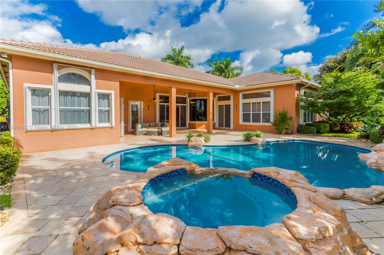 GORGEOUS ONE STORY HOME WITH POOL AND LAKE IN THE MANNED GUARD GATED COMMUNITY OF RIVERSTONE. THIS HOME FEATURES TILE FLOORING IN THE MAIN LIVING AREAS AND WOOD FLOORING IN THE BEDROOMS. THIS HOME IS A TRIPLE SPLIT FLOOR PLAN, WITH 5 BEDROOMS, PLUS AN OFFICE AND A BONUS ROOM. ALL BATHROOMS HAVE BEEN COMPLETELY UPGRADED MODERN STYLE! THE GOURMET KITCHEN IS COMPLETE WITH GRANITE COUNTERTOPS, UPGRADED CABINETRY, STAINLESS STEEL APPLIANCES AND A CENTER ISLAND. THE BACKYARD IS THE PERFECT PLACE TO RELAX WITH AN OVERSIZED COVERED PATIO, LARGE POOL WITH SPA, BEAUTIFUL LANDSCAPING, GRASSY YARD, OVERLOOKING THE LAKE.