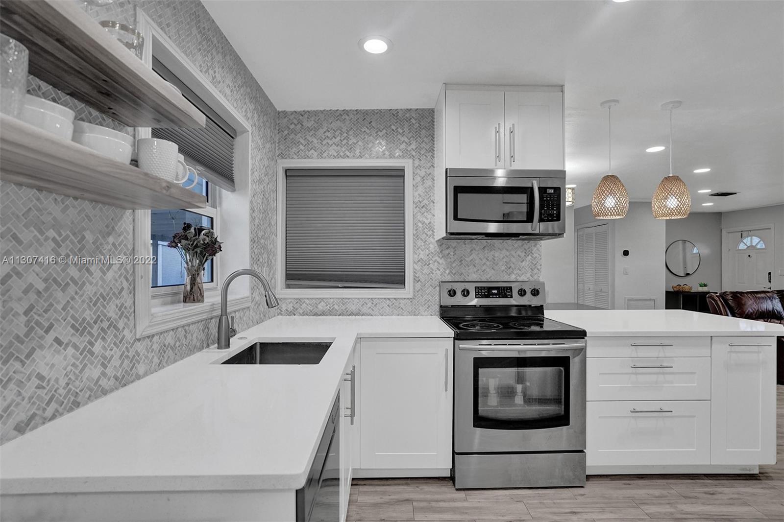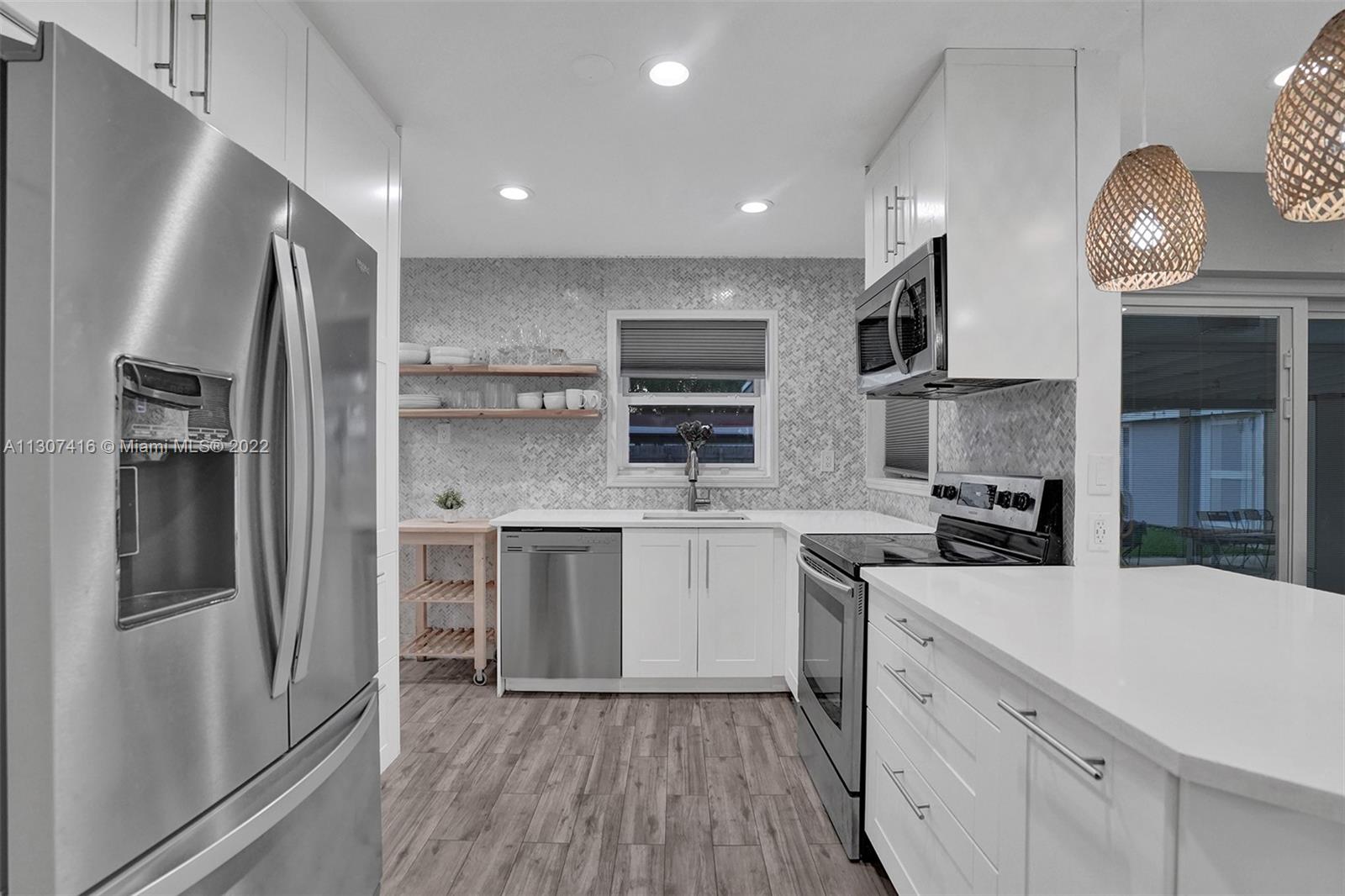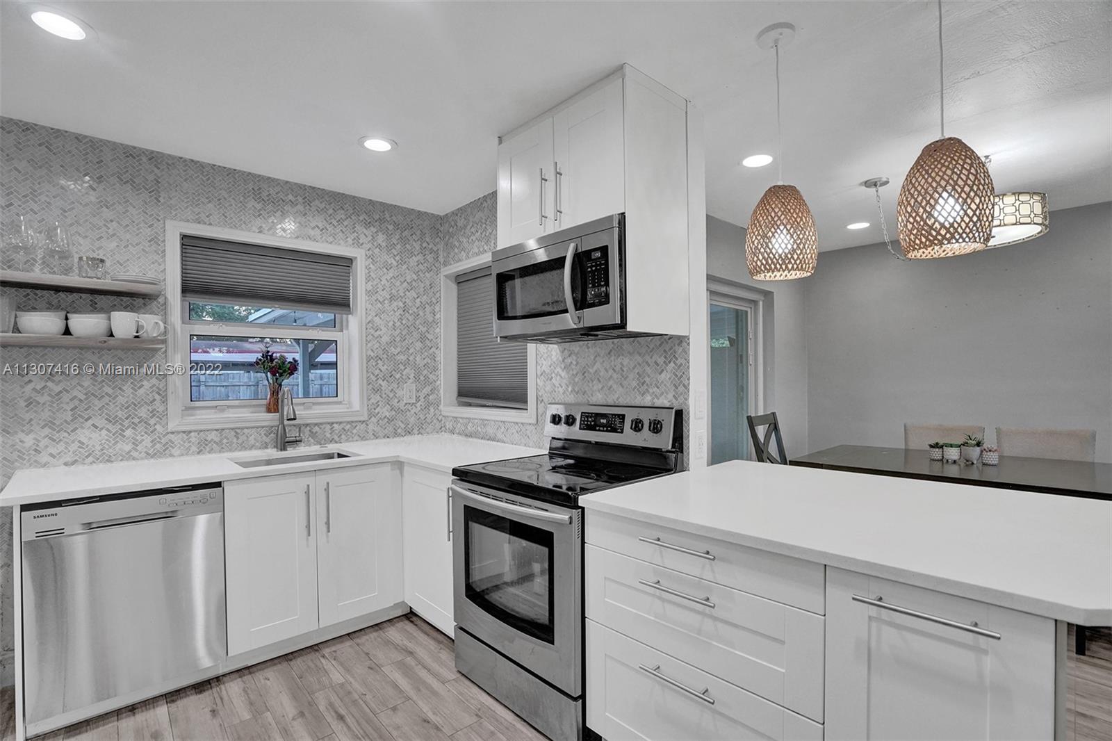 Renovated 3/2 single family home in West Hollywood. Freshly painted interior. Wood look tile floors throughout. Updated modern kitchen with quartz countertops, wood cabinets, mosaic marble backsplash, snack bar and stainless steel appliances. Recessed lighting in main living areas. New interior doors throughout. Smart home: smart outlets, keypad, thermostat, cameras and doorbell camera. Remodeled master bathroom with frameless shower doors and rainfall shower head. Upgraded guest bath. A/C replaced 2019. Newer electrical panel. Tankless water heater 2020. Spacious laundry room. Front loading washer & dryer replaced 2018. Impact Windows on front of the house. Large covered patio. Two storage sheds. Large circular driveway. Room on side of the house for RV or Boat. A must see home!