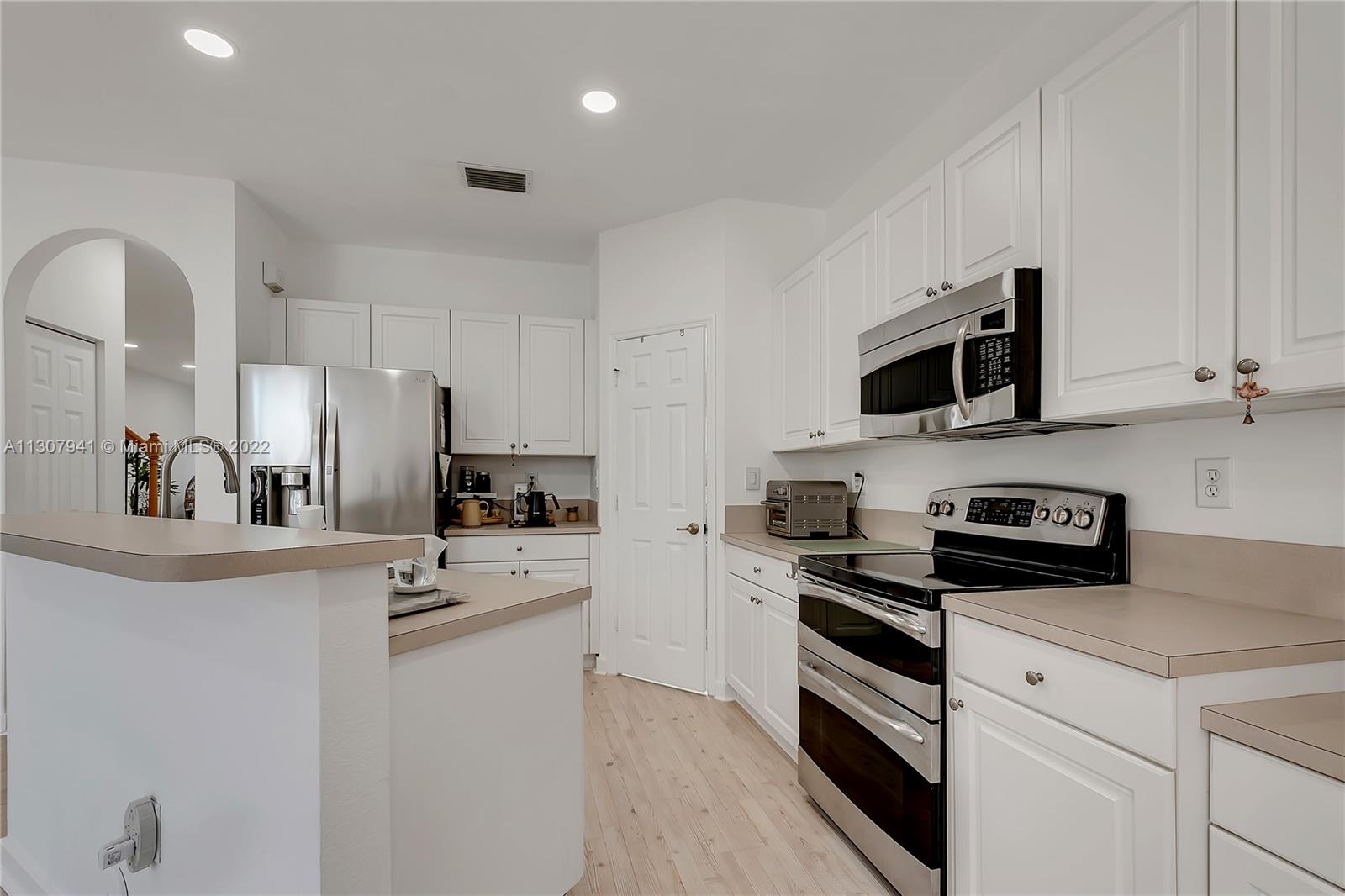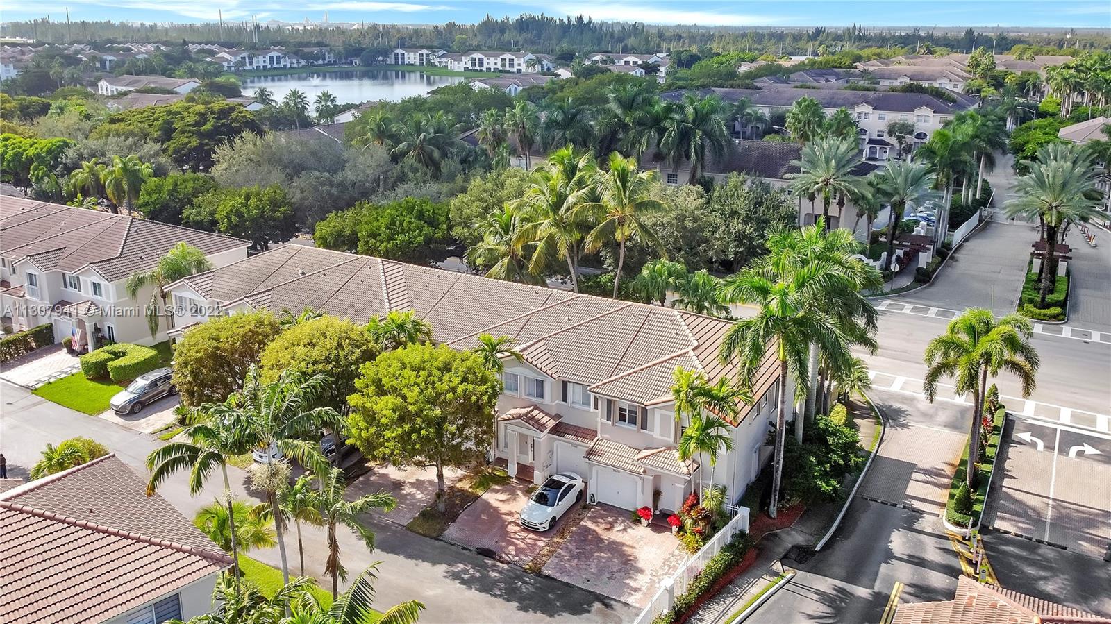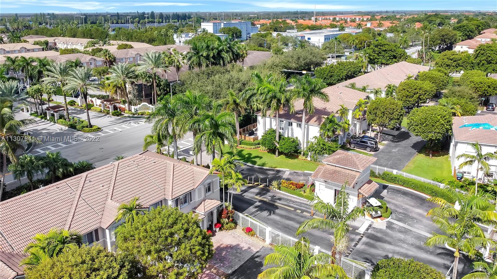 Beautiful Townhouse. CORNER UNIT with 4 Beds - 3.5 Bathrooms. Open Kitchen leading to the family room, large breakfast counter and pantry. Stain Steel Appliances. Laminate floors. Spacious patio with screen, retractable awning great for shadows and entertaining and floor with stamped concrete. Dead End Street location. Electric 1 car Garage door plus 2 parking spaces, and convenience guess parking just across the street. Shutters. Storage. Gated community and gate guard on site. Located in the best School District in Miami Dade County. Close proximity to all major highways with easy access to Dade and Broward County. Great location close to Dolphin Mall and International Mall.