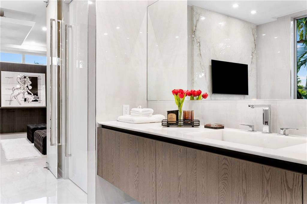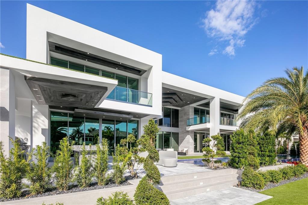 Set in the prestigious Seven Isles, this luxurious contemporary 2023 masterpiece w/breathtaking Intracoastal views showcases 12,336 sf of exquisite detail & refined finishes with a rare 120' of WF. As you enter, revel in the bright natural light illuminated by floor to ceiling windows. Main level hosts a spacious living area with a two-floor feature wall like no other, glass wine wall, lounge & gourmet chef's kitchen, pantry & prep kitchen. Find a stunning 4 car show case garage w/ AC's for car fanatics. Follow the floating staircase to 2nd floor and live in luxury in the expansive primary suite that includes an elegant showroom-style custom wardrobe room. The backyard oasis boosts a 72' lap pool & built in summer kitchen. Experience a real life getaway from the comfort of your own home!