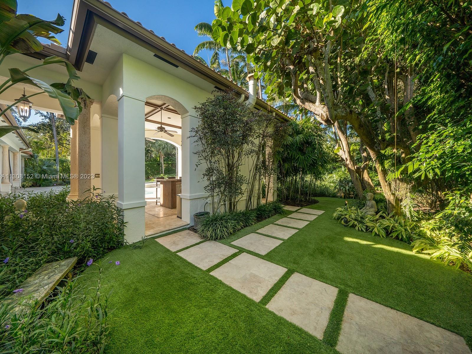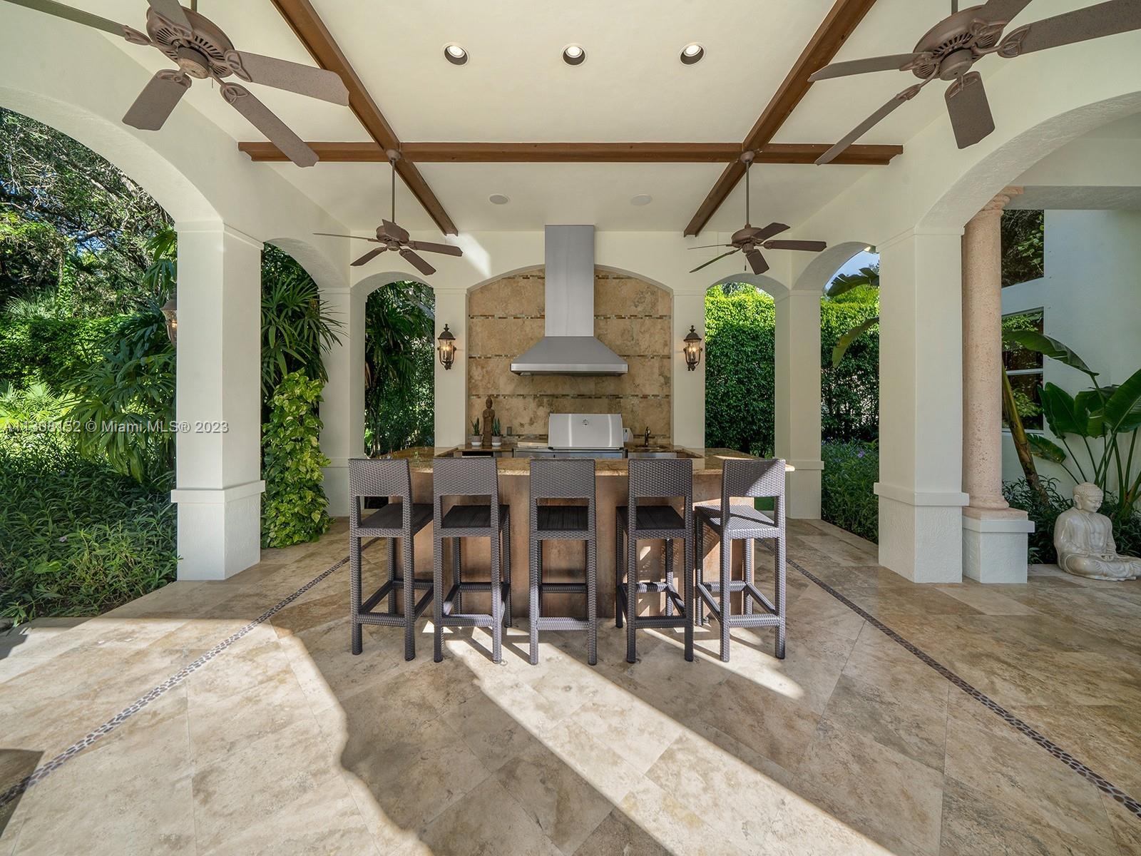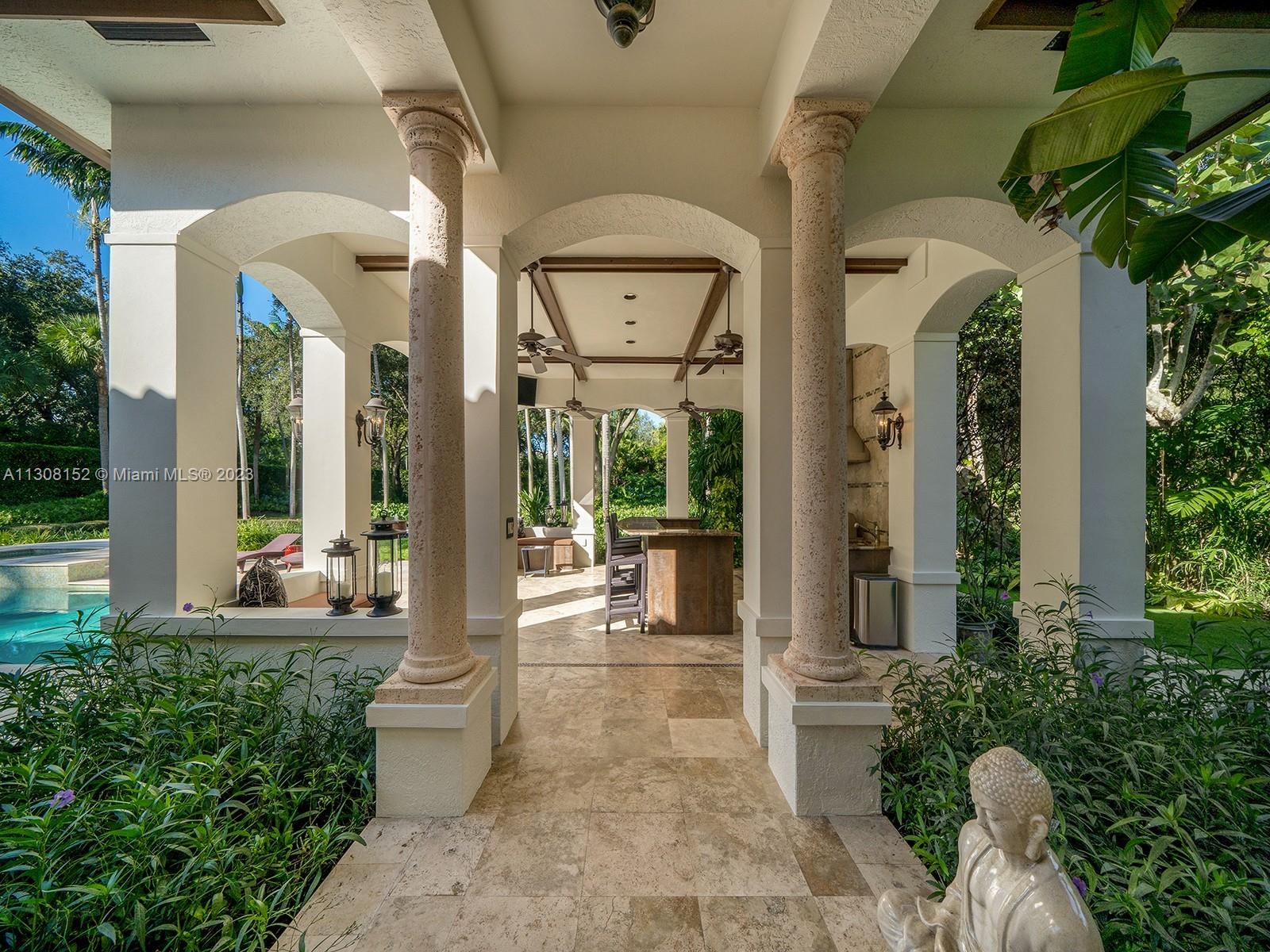 Elegance meets sophistication in the stunning one-story estate located on a quiet no-thru street in NE Pinecrest. This gorgeous home welcomes you w/ a foyer entrance, 14 ft volume ceilings & custom millwork. Discover expansive living areas including formal living & dining rms w/ direct views to the pool & manicured resort-like garden. Custom built designer kitchen w/ breakfast area, top-of-the-line appl & walk-in pantry. Huge master suite offers 3 WIC, sitting area, gym/studio rm, renovated spa like bath w/ custom cabinets & onyx finishes. Enjoy an outdoor oasis w/ covered terraces, Gazebo, fully equipped summer kitchen, ample yard, & exquisite heated pool/spa. Other features: temp-controlled wine rm, 3-car gar, generator, 1000 gal gas tank, wall & gated, security cameras, 3 fountains.