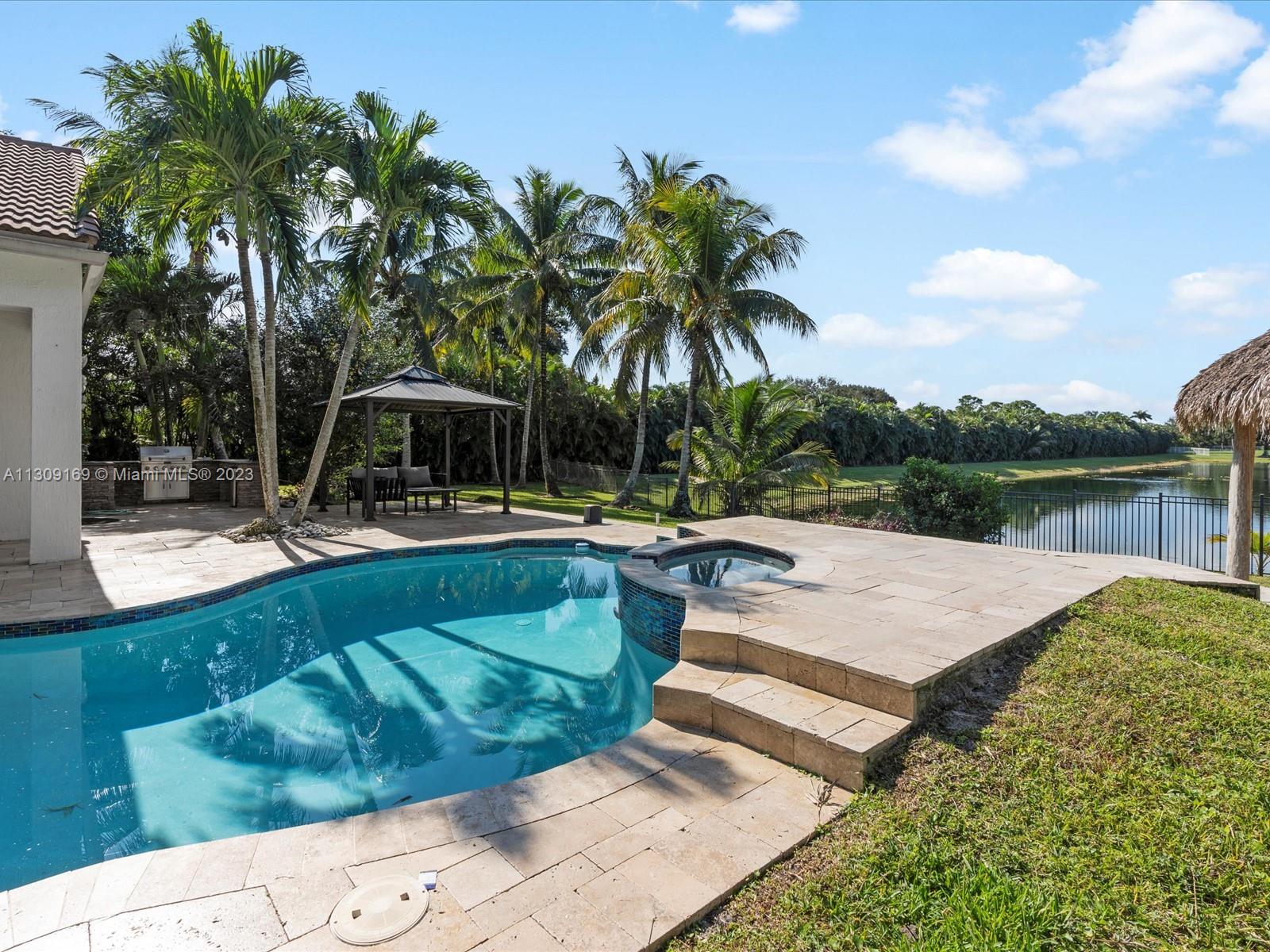 ONE OF A KIND HOME IN THE GATED COMMUNITY CARLTON RANCHES. FULLY REMODELED 4 BEDROOMS PLUS DEN, 4 FULL BATHROOMS, 3 CAR GARAGE. CORNER LOT, SITTING IN ALMOST AN ACRE OF LAND OF 35,026 SQFT. SPECTACULAR VIEWS OF THE LAKE AND POOL. PROFESSIONALLY REMODELED. DESIGNER WALL PAPER ACCENTUATING WALL IN MASTER BEDROOM & DINING ROOM. OPEN FLOOR PLAN, MODERN OPEN KITCHEN W/ OVER-SIZED ISLAND W/ GRANITE WATERFALL, GORGEOUS CALACATTA OVERSIZED TILE, 4 BATHROOMS ALL REMODELED W/ GLASS ENCLOSURES, BEDROOMS W/ WOOD FLOORS, WINDOW TREATMENTS, IMPACT WINDOWS & DOORS (EXC. 3 WINDOWS), ALL BUILT-IN CLOSETS. ONE OF THE MOST AMAZING FEATURES OF THE HOUSE IS THE ENTERTAINMENT AREA OUTSIDE W/ TIKI HUT AND BUILD-IN BARBECUE. BEAUTIFUL VIEW OF THE LAKE AND THE SUNSETS ARE BREATHTAKING! READY TO MOVE IN!