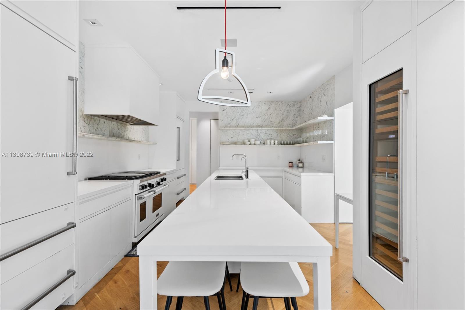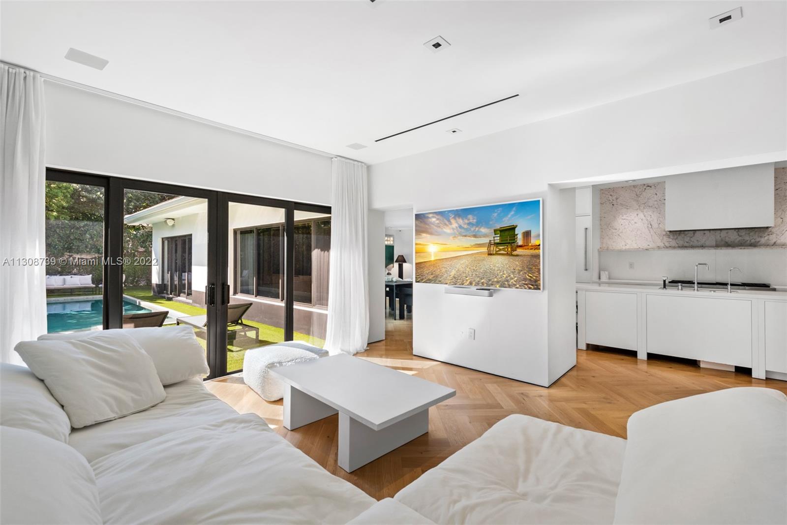 Live on Miami Beach’s prestigious Lower North Bay Road in this impeccably designed 4 bedroom + private office, 3 full bathroom &1 half bath residence. Designed by world-renowned interior designer Briggs Edward Solomon, this 3,240 SF fully renovated home spares no attention to detail. Sitting on a 10,610 square foot corner lot moments away from Sunset Harbor & world class dining, shopping & beaches. Features include herringbone designed wood floors, impact windows & doors, & 8 foot frameless solid wood doors. The gourmet designer kitchen includes a marble backsplash, 2 Subzero refrigerators & freezers & a 100+ bottle wine cooler. The open layout offers an oversized principal suite w/ a sitting area, custom master closet & master bathroom which boasts marble vanities & Waterworks fixtures