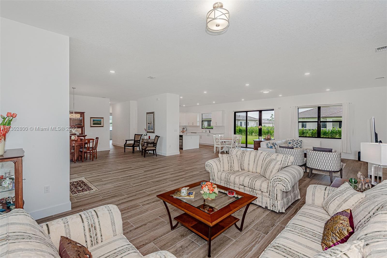 Luxurious 1 story home, in the prestigious community of Sierra Ranches. Modern interior design with attention to detail. Large master suite has walk-in closets and a big bathroom. Open and bright, split floor plan, 5 bedrooms, 5 1/2 baths. Living room, powder room, family room, breakfast area, covered terrace, split-3 car garages, a huge backyard with room for pool and lots of ambiance. Five minutes to 595 freeway.