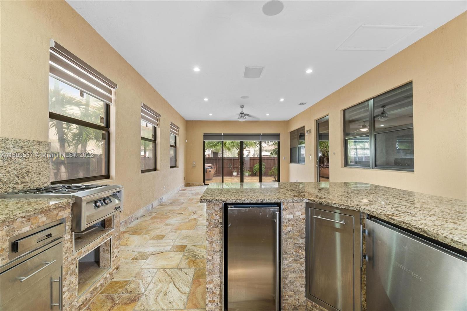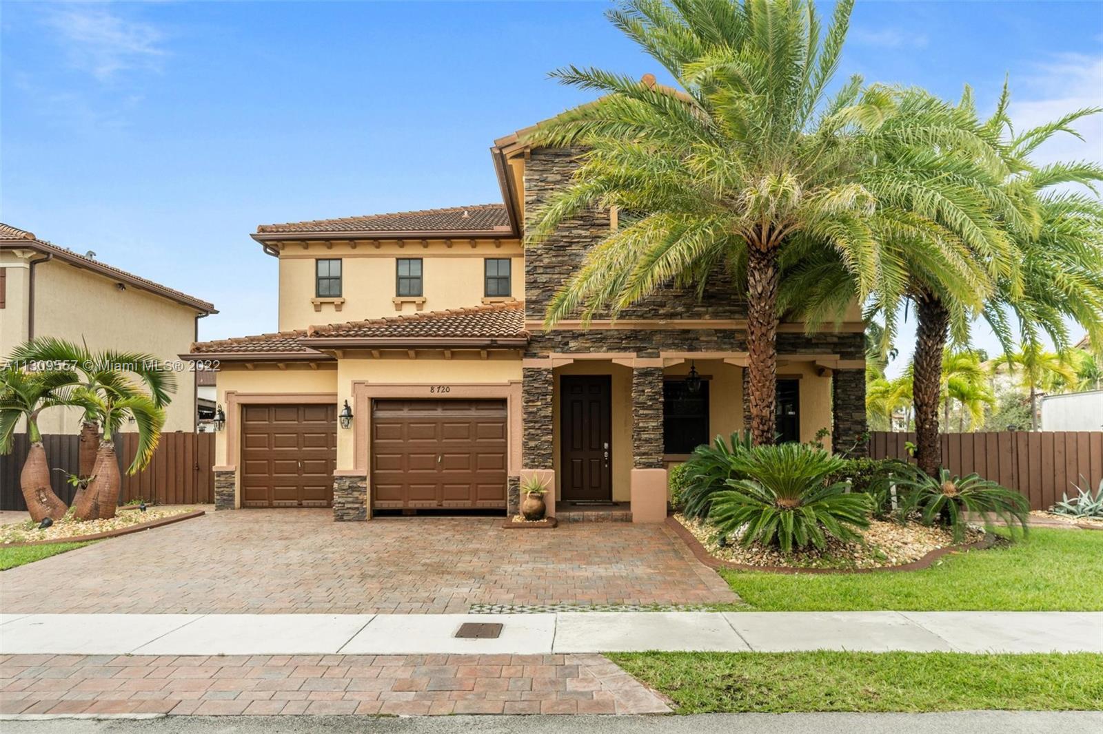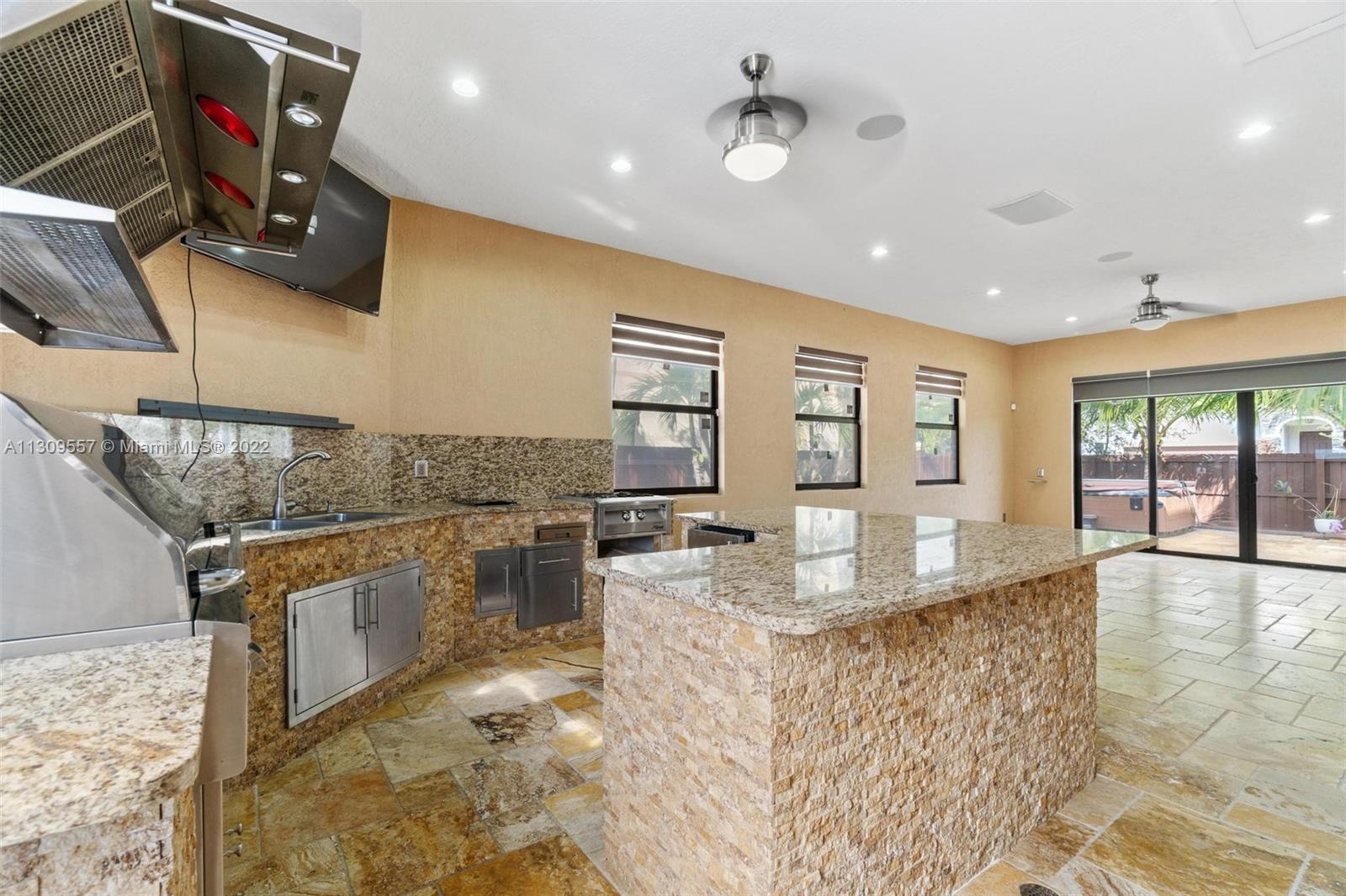 Impecable corner lot and spacious single family home, 4 bedrooms, 4 bathrooms, walking closets. Located in the prestigious gated community at Grand Bay Estates at Doral. Ample kitchen with stunning brown wooden cabinets, Stainless steel appliances and granite countertops. Ceiling fans throughout home, two door double garage with ceramic floor, garage cabinets and air conditioning. It has a social area with BBQ, Fryer, Ice Maker, etc, this area is under air conditioning. The luxurious resort style clubhouse features a pool, kids pool, a jacuzzy, full gym, tennis/basketball courts. Close to great public & private schools, supermarkets, restaurants, and new Doral CityPlace shopping Mall.