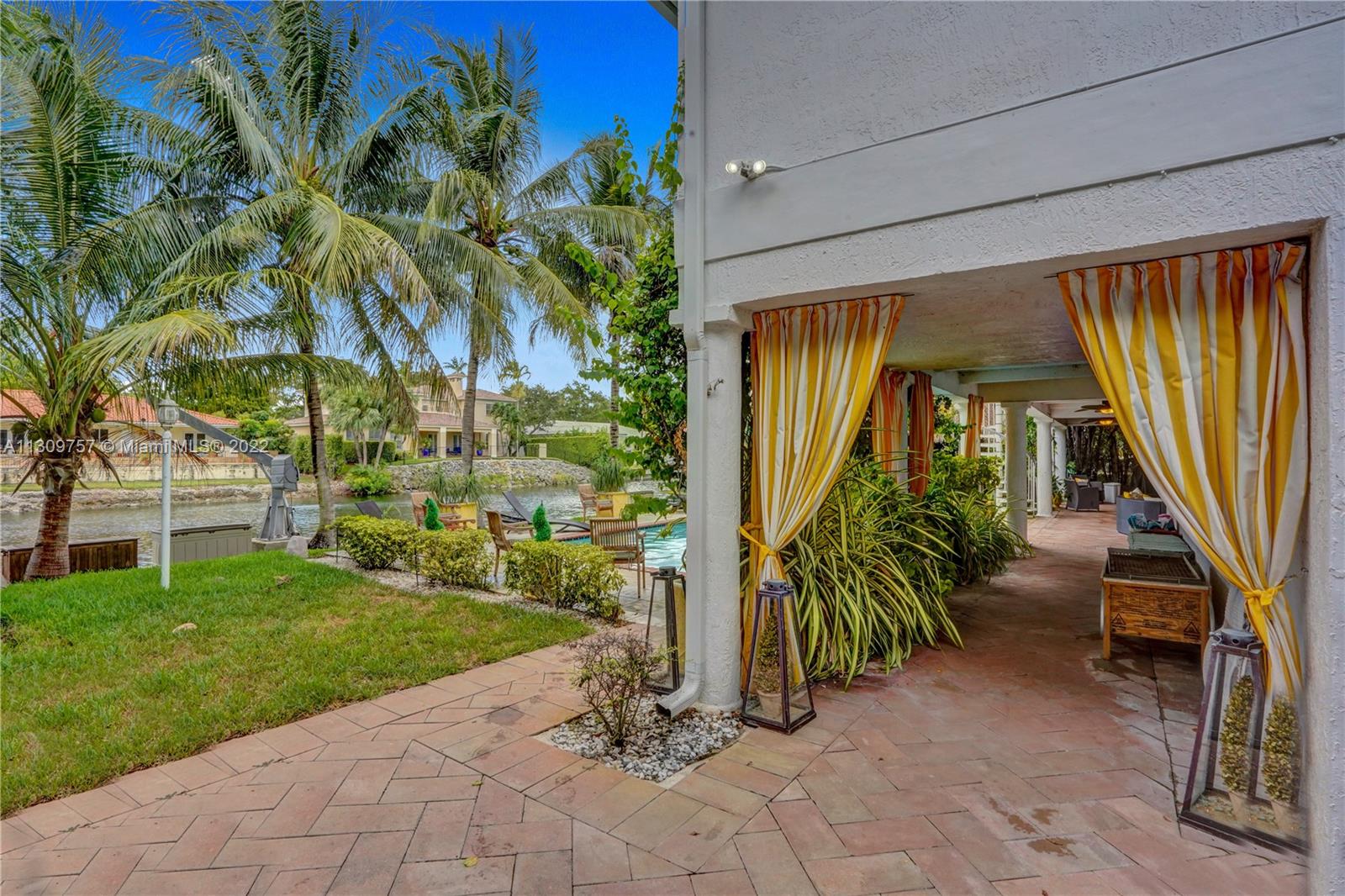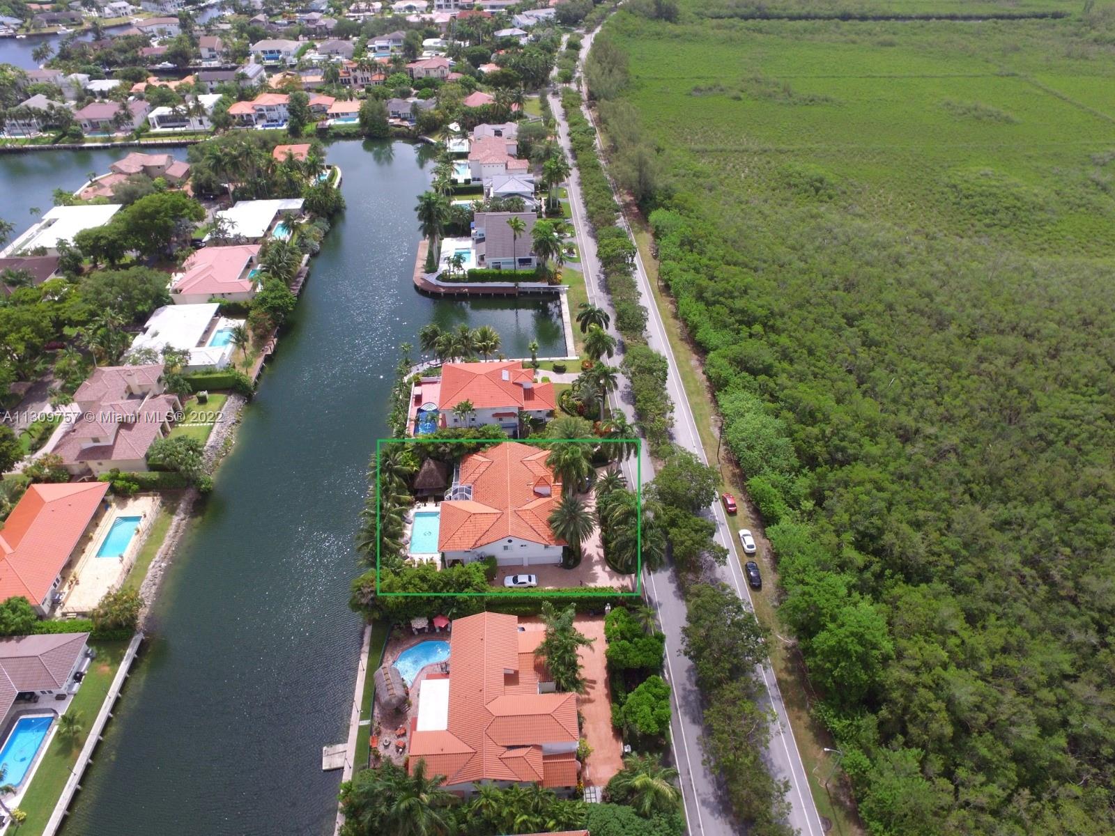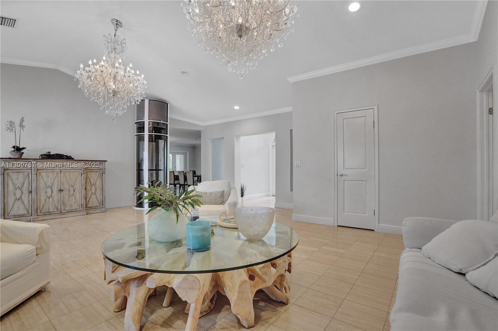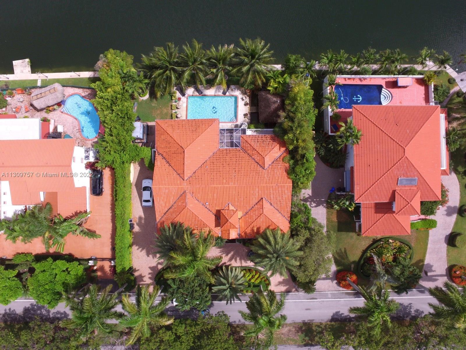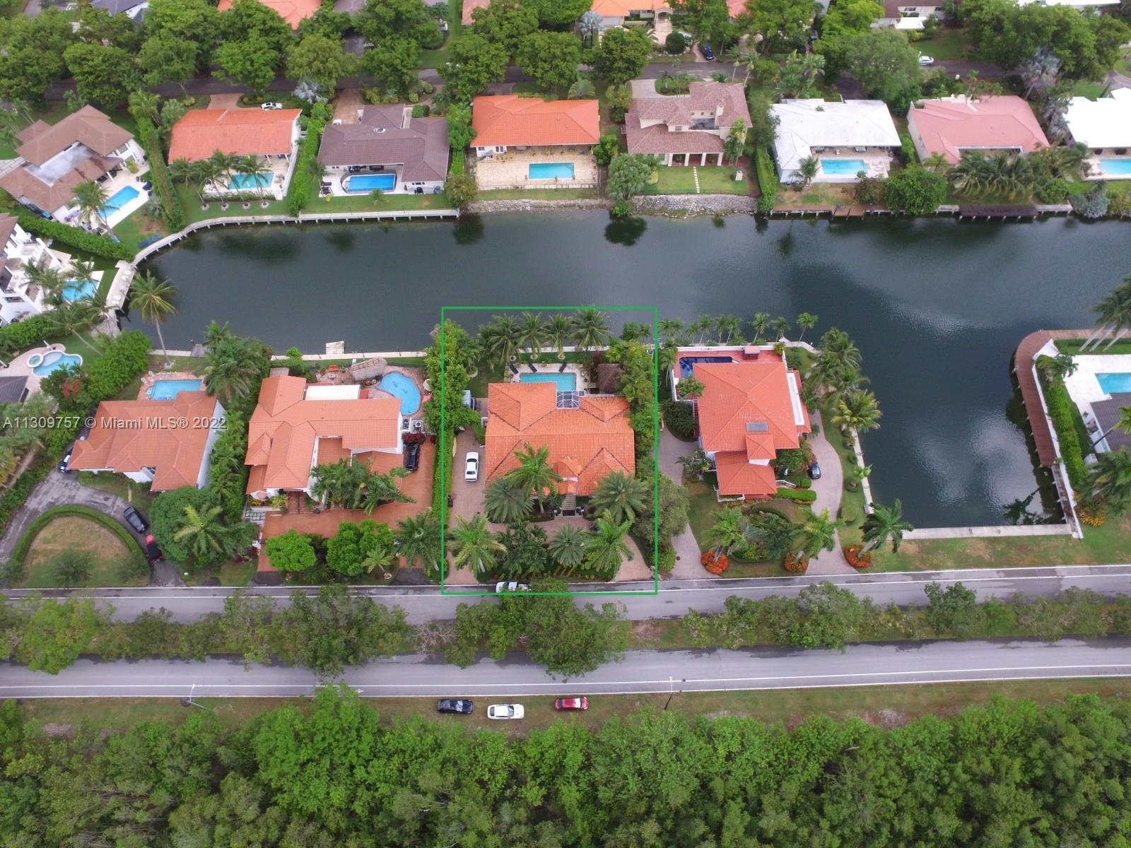 Elegant Two-story 5 beds 4.5 baths Waterfront home in highly desirable Gables By The Sea with NEW ROOF to be completed by 1st week of January,2023.(NO OCEAN ACCESS).Living area is LARGER THAN TAX ROLL as per owner. 4,642 adj. SqFt and 7,557 total SqFt. Upstairs features remodeled kitchen w/SS high end appliances, Pneumatic vacuum Elevator, 4 Large bedrooms w/walk-in closets. Downstairs features a Bonus living area perfect for in-laws quarters or recreation room. Currently set as 10 seat theatre room, office/library room, a separate billiard room and storage. Heated pool, Huge covered terrace, Tiki hut, koi pond with waterfall, four car garage and plenty of parking and very private with No back or front neighbors. Fantastic for entertaining. Highest rated private and public schools nearby.