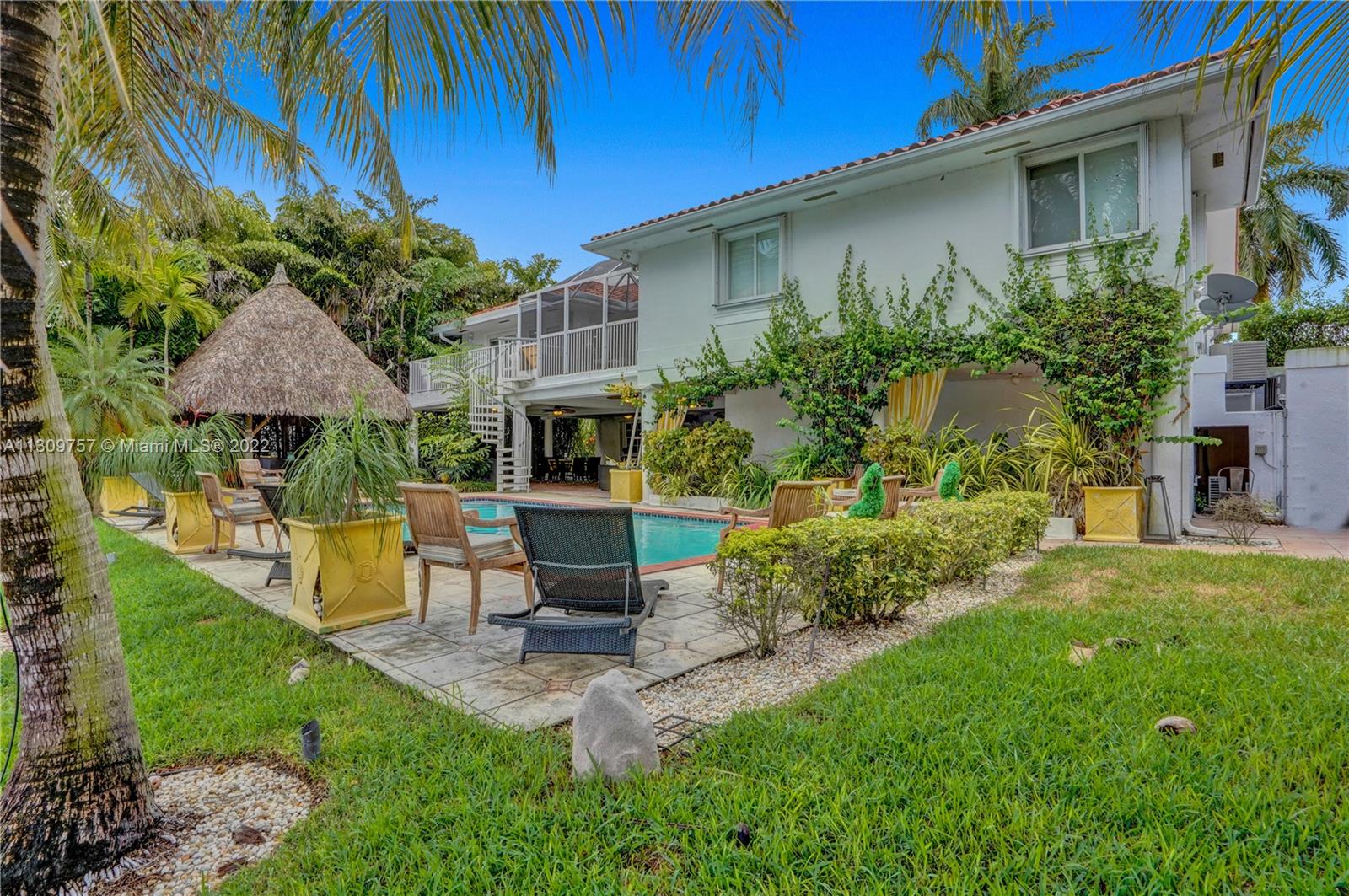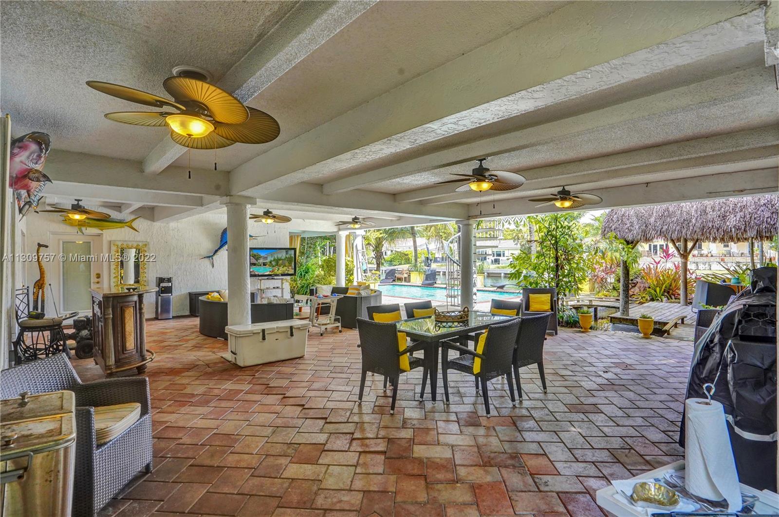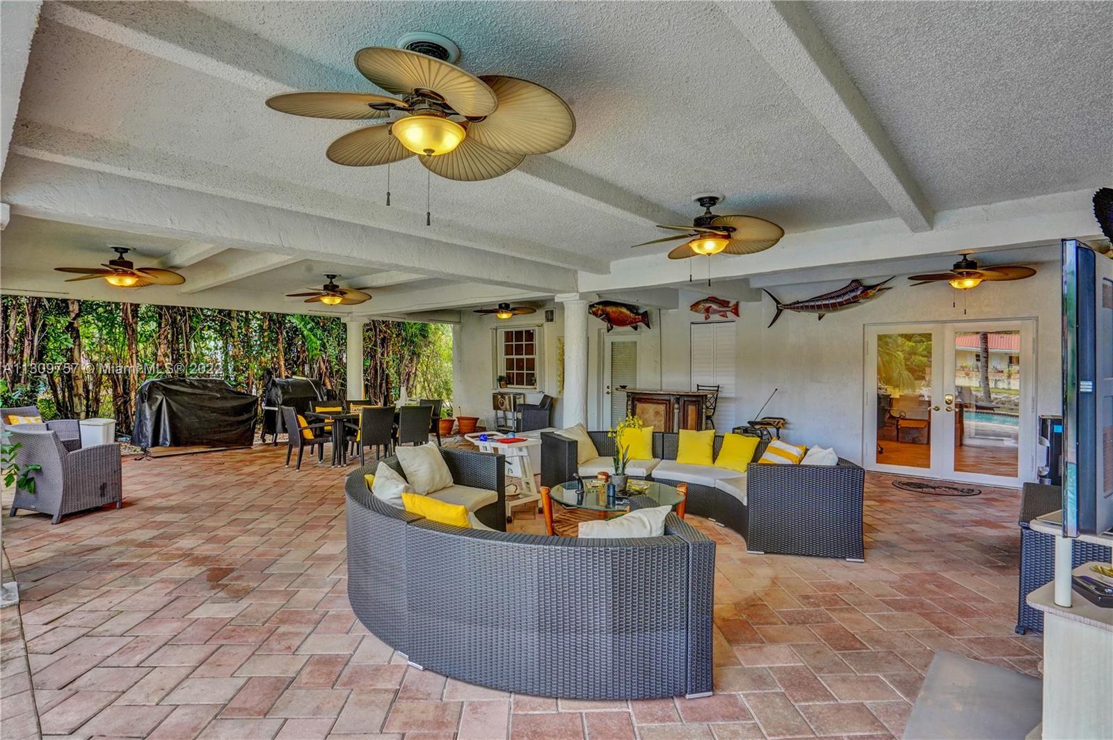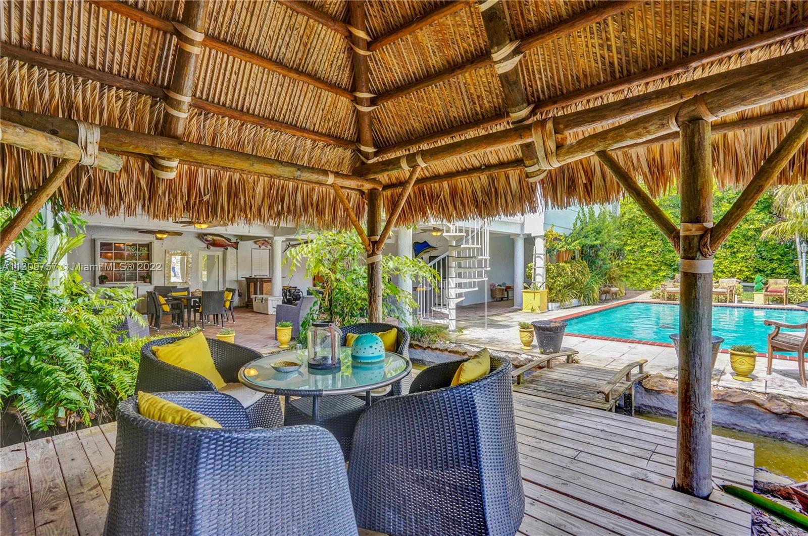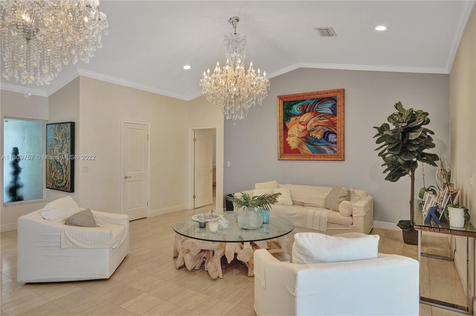 Elegant Two-story 5 beds 4.5 baths Waterfront home in highly desirable Gables By The Sea with NEW ROOF to be completed by 1st week of January,2023.(NO OCEAN ACCESS).Living area is LARGER THAN TAX ROLL as per owner. 4,642 adj. SqFt and 7,557 total SqFt. Upstairs features remodeled kitchen w/SS high end appliances, Pneumatic vacuum Elevator, 4 Large bedrooms w/walk-in closets. Downstairs features a Bonus living area perfect for in-laws quarters or recreation room. Currently set as 10 seat theatre room, office/library room, a separate billiard room and storage. Heated pool, Huge covered terrace, Tiki hut, koi pond with waterfall, four car garage and plenty of parking and very private with No back or front neighbors. Fantastic for entertaining. Highest rated private and public schools nearby.
