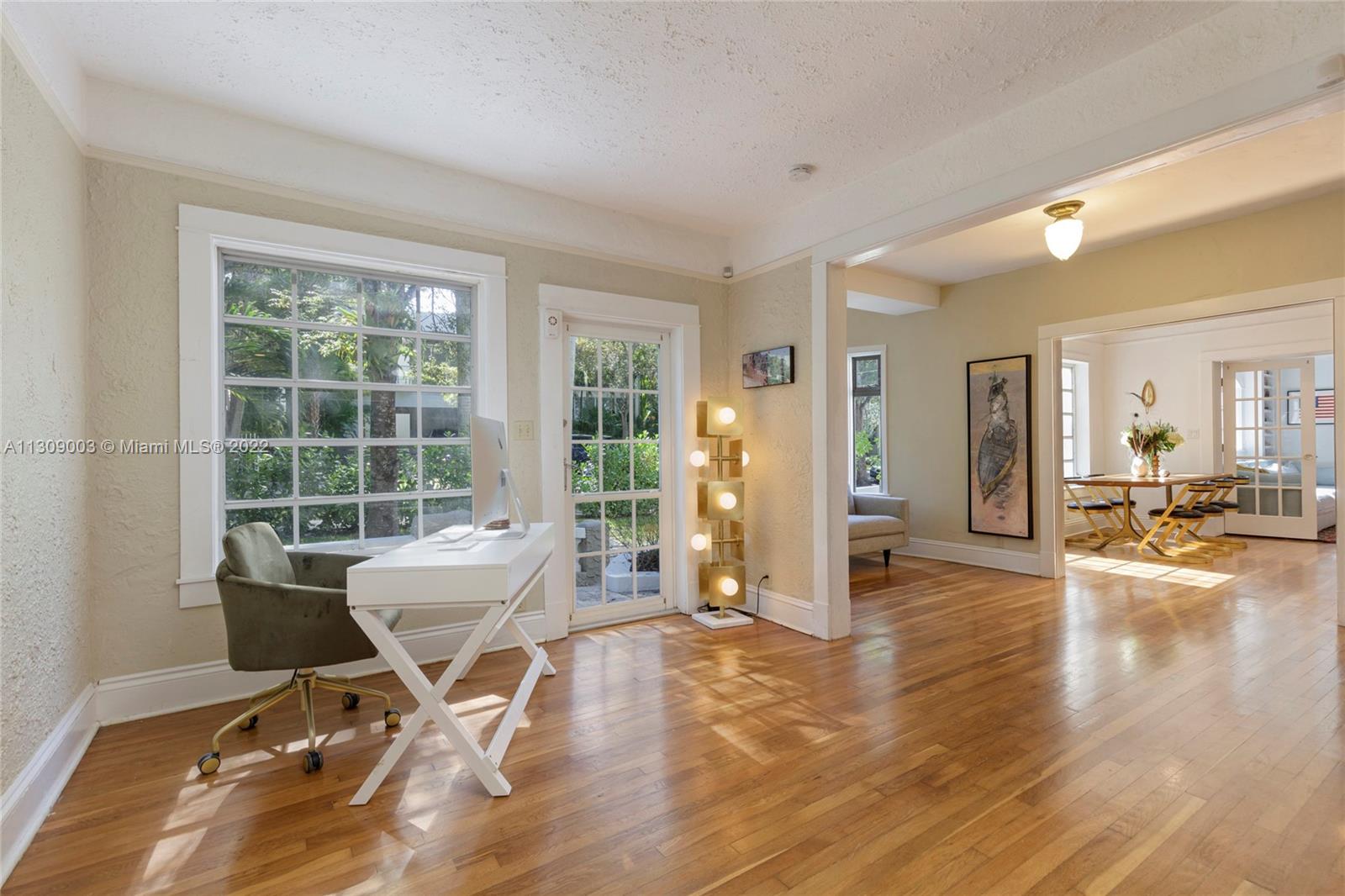 On a quiet neighborhood loop in desirable North Coconut Grove, rests this classic yet renovated home that exudes charm and character. An unmatched location on the corner of two no-through traffic streets and minutes from top schools, Biscayne Bay, Downtown, and dining. Great architectural and design details like coffered ceilings, hardwood floors, fireplace, and detailed woodwork. With a new roof, two new A/C’s, renovated kitchen, and updated plumbing & electrical, you won’t need to sacrifice peace of mind or modern conveniences. The detached, updated 1/1 guest house with kitchenette is perfect as an in-law’s suite, live-in’s quarters, or income-producing rental. Air-conditioned garage, storage, or workshop. Room for a pool plus yard space. The best of old- and new-world awaits!