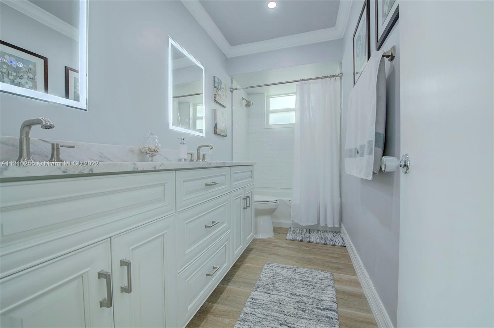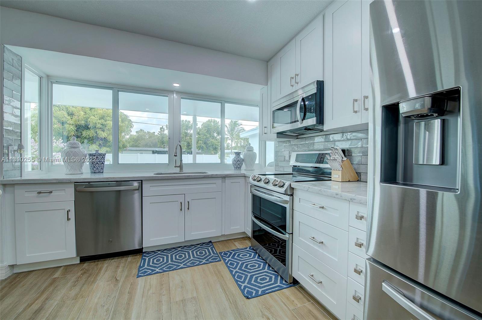 COMPLETELY RENOVATED 3 bed/2 bath pool home in the coveted area of Hollywood Hills. Home features a brand new kitchen with timeless, white shaker cabinetry, granite counters & new stainless-steel appliances overlooking the manicured, fully fenced backyard. A private Oasis with a huge, covered patio for entertaining. LED lighting throughout and ventilated laundry room. Ring doorbell & smart Nest thermostat. Master bedroom is complete with a walk-in closet & ensuite cabana bathroom. Bathrooms tastefully remodeled. ALL MAJOR TICKET ITEMS SUCH AS AC, ROOF, & HURRICANE IMPACT WINDOWS HAVE BEEN REPLACED WITHIN THE PAST 6 MONTHS! Home is move-in ready! Near prestigious private schools, houses of worship, hospitals, shops & the beach! *Property appears bigger than indicated on tax roll*