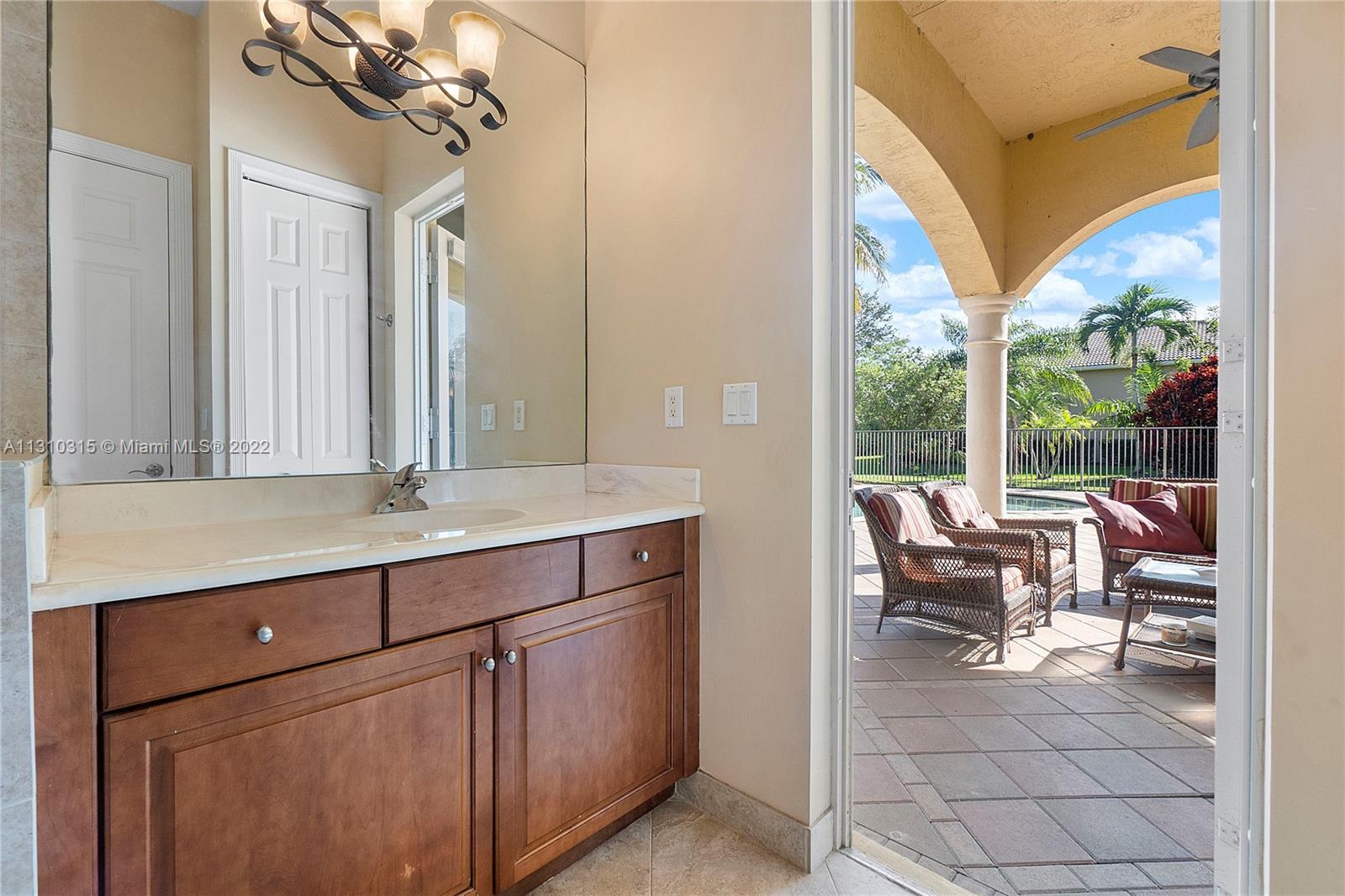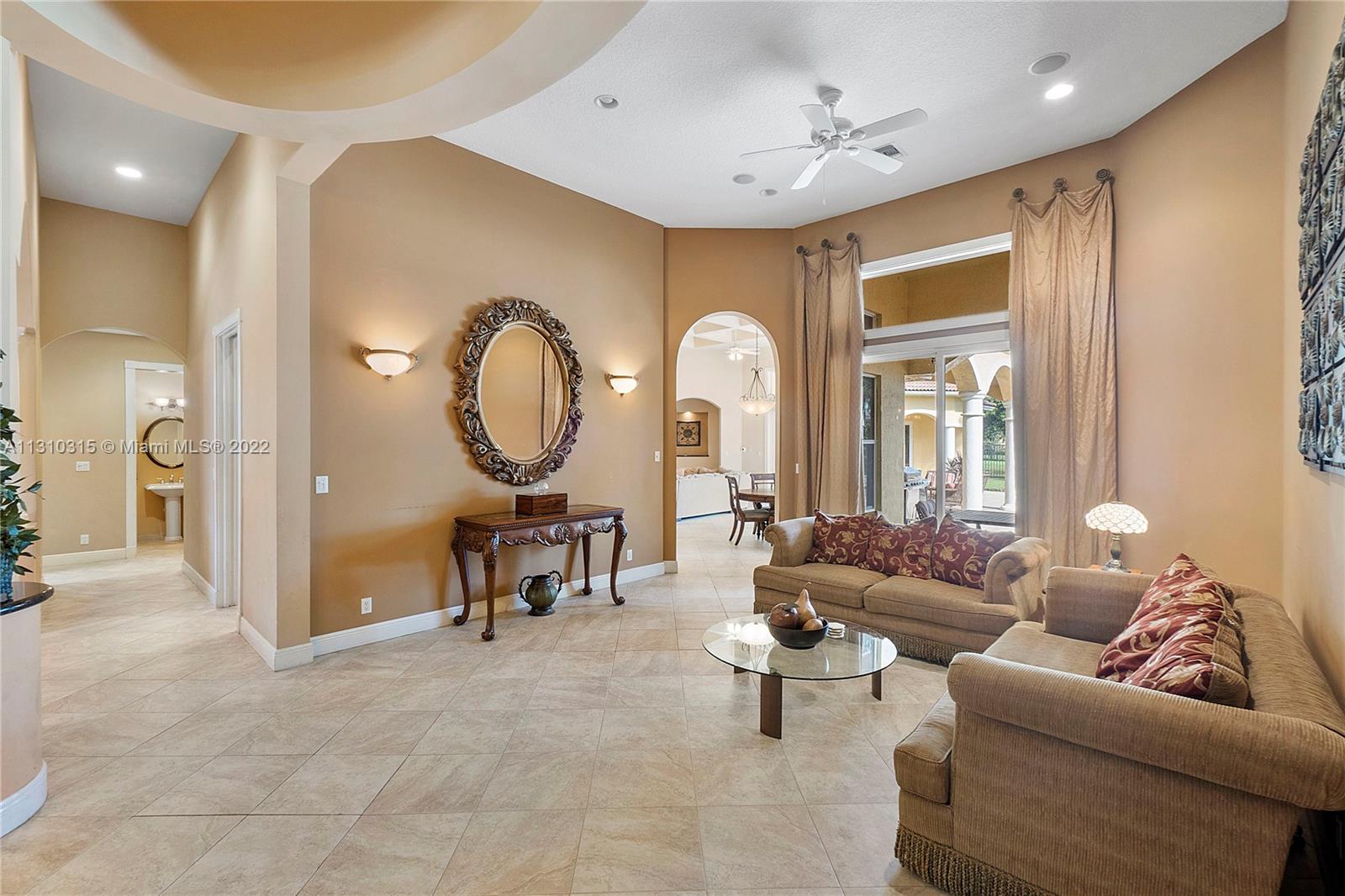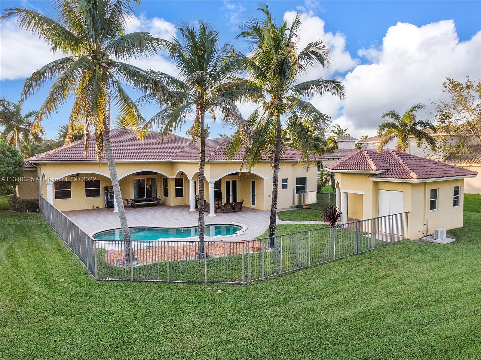 Palm Trees & Warm Breezes surround this custom Waterfront Estate Pool Home on a Builder's Acre. Privacy is emphasized in this rarely available prestigious gated NorthStar development with limited homesites. Mahogany Double doors accent the grand entrance, foyer, tile floors & vaulted ceilings. The 5 bed/3.5 bath split floorplan include an owner's suite with sitting area, dual walk in closets & a spa style bathroom. A formal dining room, gourmet style kitchen, breakfast bar & family room all have wide open views of the of the pool & luscious waterfront lawn. Covered patios & a detached 1 bed/1 bath pool house make this outdoor area perfect for entertaining. Minutes to beaches, airport, fine dining, sporting venues, Hard Rock Casino, shopping and all major highways. Musty see to appreciate!