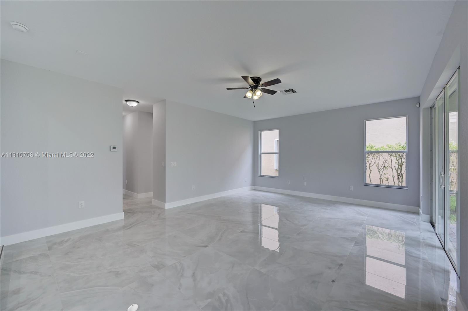 Prinstine 2 story single family home in the resort style community of Sunset Lakes! This move-in ready home features: 4/3, New Porcelain Tiles, Master w/coffered ceiling, Kitchen w/Quartz countertops, modern backsplash & Island (Quartz) around sink, Bay Windows, Dual oven, glass top stove, SS appl's, newly painted, new baseboards, new porcelain tiles on bathroom floor & walls. Master w/floating tub, his/hers closets, Marble vanities, dual sinks, Accordion shutters, 2 AC's. 1 full bed & bath located on the 1ST FLOOR. Upstairs; a stylish owner's suite w/double door entry. Gated, Sunset Falls offers top amenities, resort-style pool, tennis, spa,clubhouse & more. Outdoor entertaining can be enjoyed w/backyard BBQ's, Plenty of room for a pool. "A-school district.” Low HOA of $263 per Month!