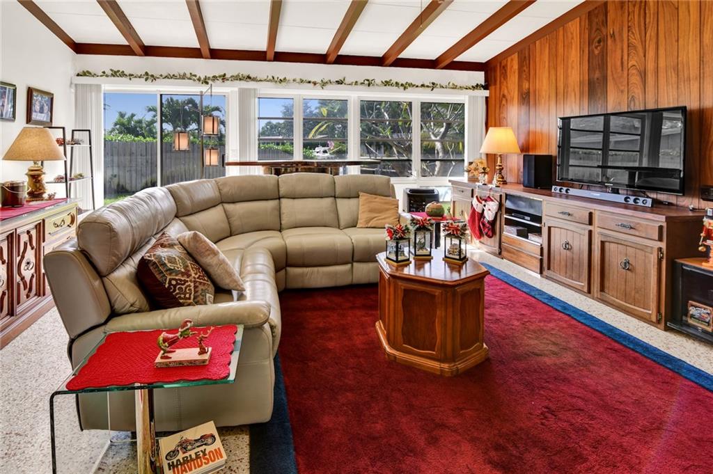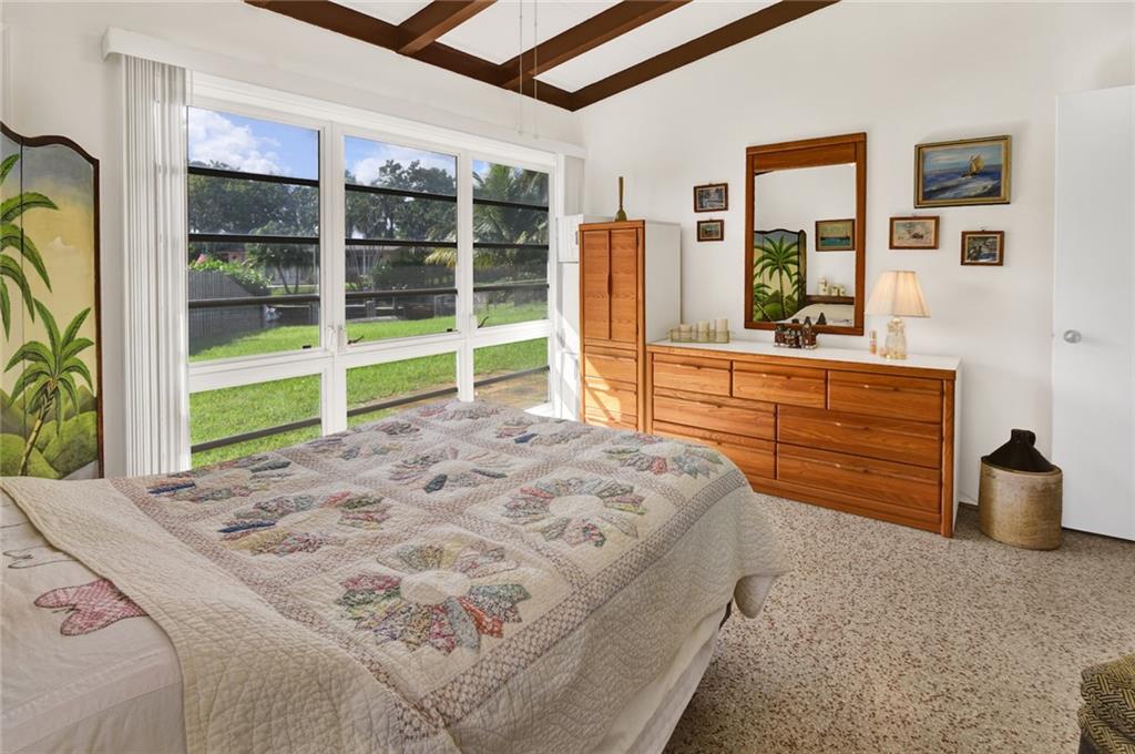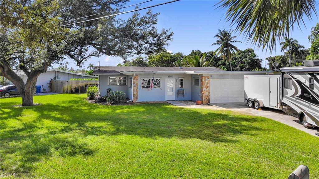 Do you desire a large yard & a place to dock your small boat? Look no further. Big pie-shaped lot with plenty of room to roam. Very clean & meticulous 3/2 home with an additional room upon entry. This home may be near original but it is extremely well maintained & spotless clean. Create your dream backyard oasis overlooking the waterway. Roof is 2017. Waterfront is 21 feet. Deepwater-ocean access canal with no fixed bridges. Park-like lot is over 10,000 sq. ft with a beautiful oak & mango tree. Large 90 foot driveway can park multiple cars and/or boat, trailer, RV, etc. or park in your 2 car garage. No HOA & no rental restrictions. Approximately 10 minutes to the beach by car. Near major highways, the airport & downtown. Close to the Hardrock Guitar Hotel.