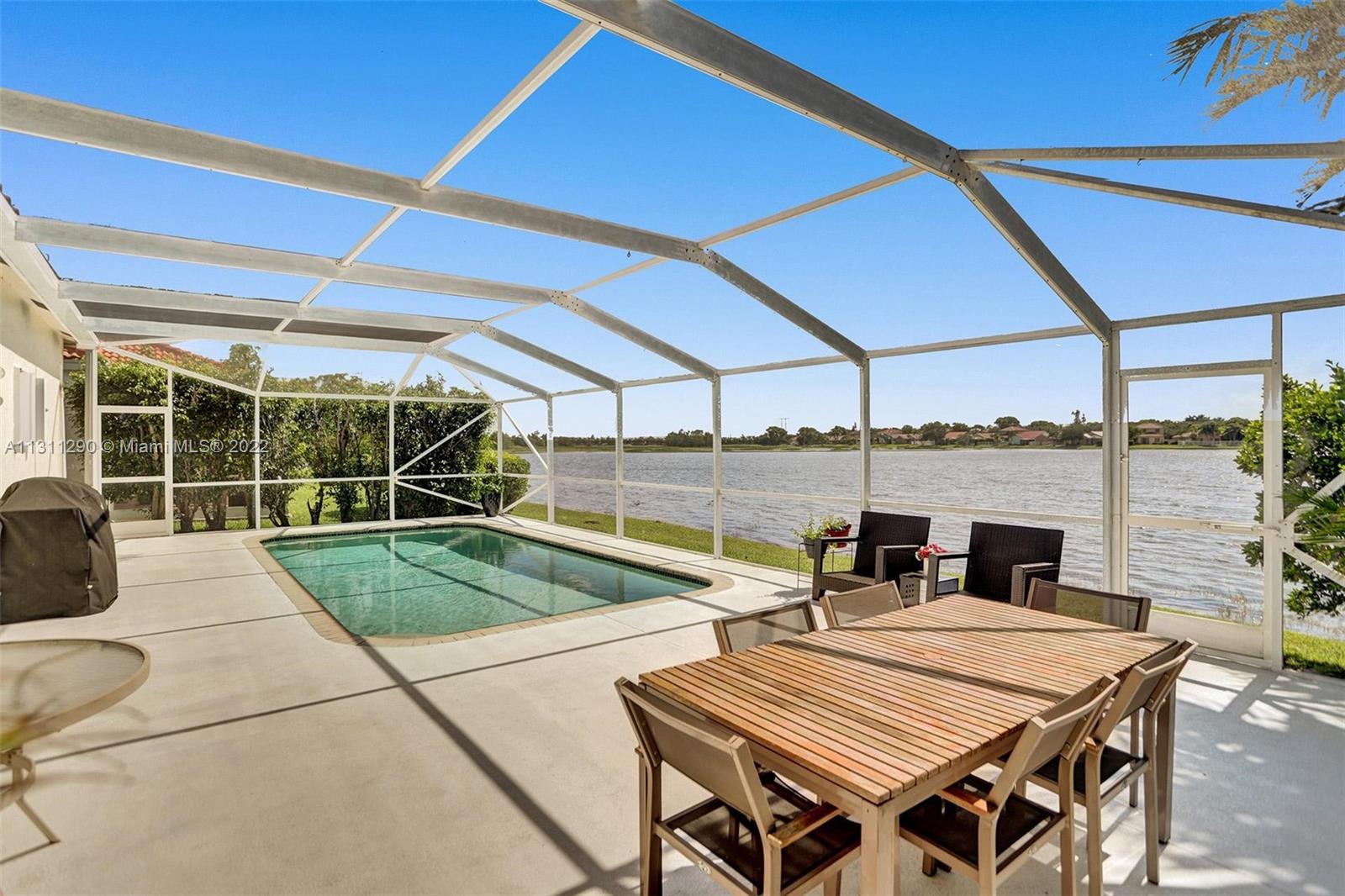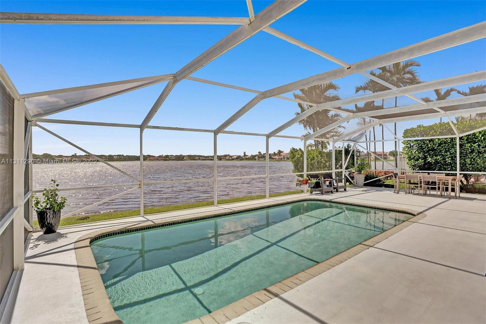 THE MEADOWS at Weston, best kept secret in one of the top 10 cities in the US to raise a family. Amazing one story pool home with an impressive lake view. Open concept home with 4 bedrooms and 2 1/2 bathrooms. One of the bedrooms was converted into the perfect work/study spot. Great front porch to enjoy the quiet dead-end street with minimum traffic. 3 YEARS OLD ROOF, 2 years old A/C and swimming pool pump. HIGH IMPACT doors to access back yard / swimming pool area. Best schools Weston has to offer!