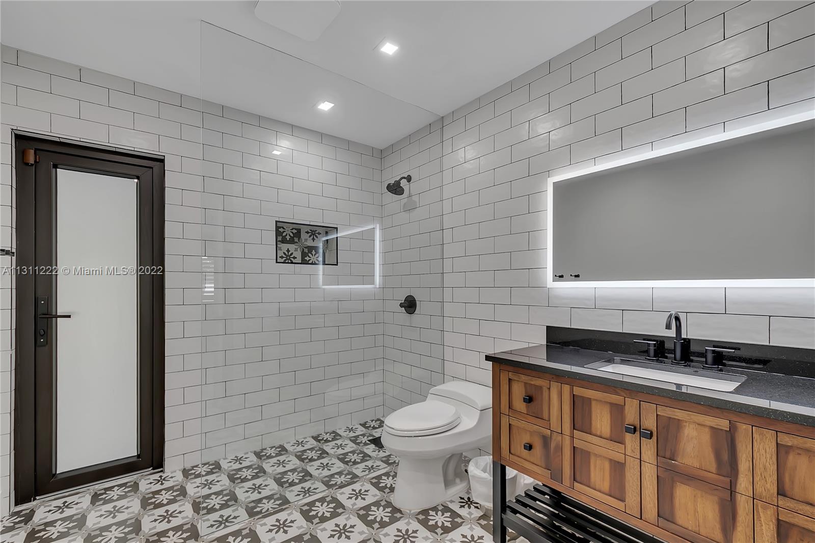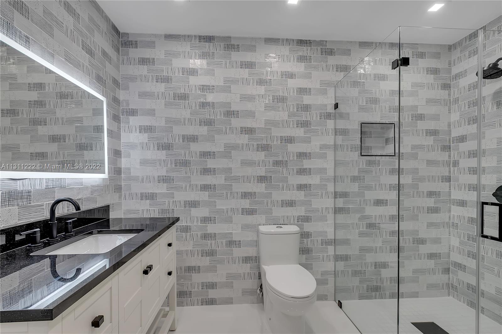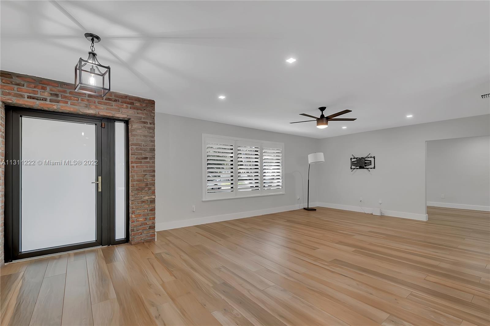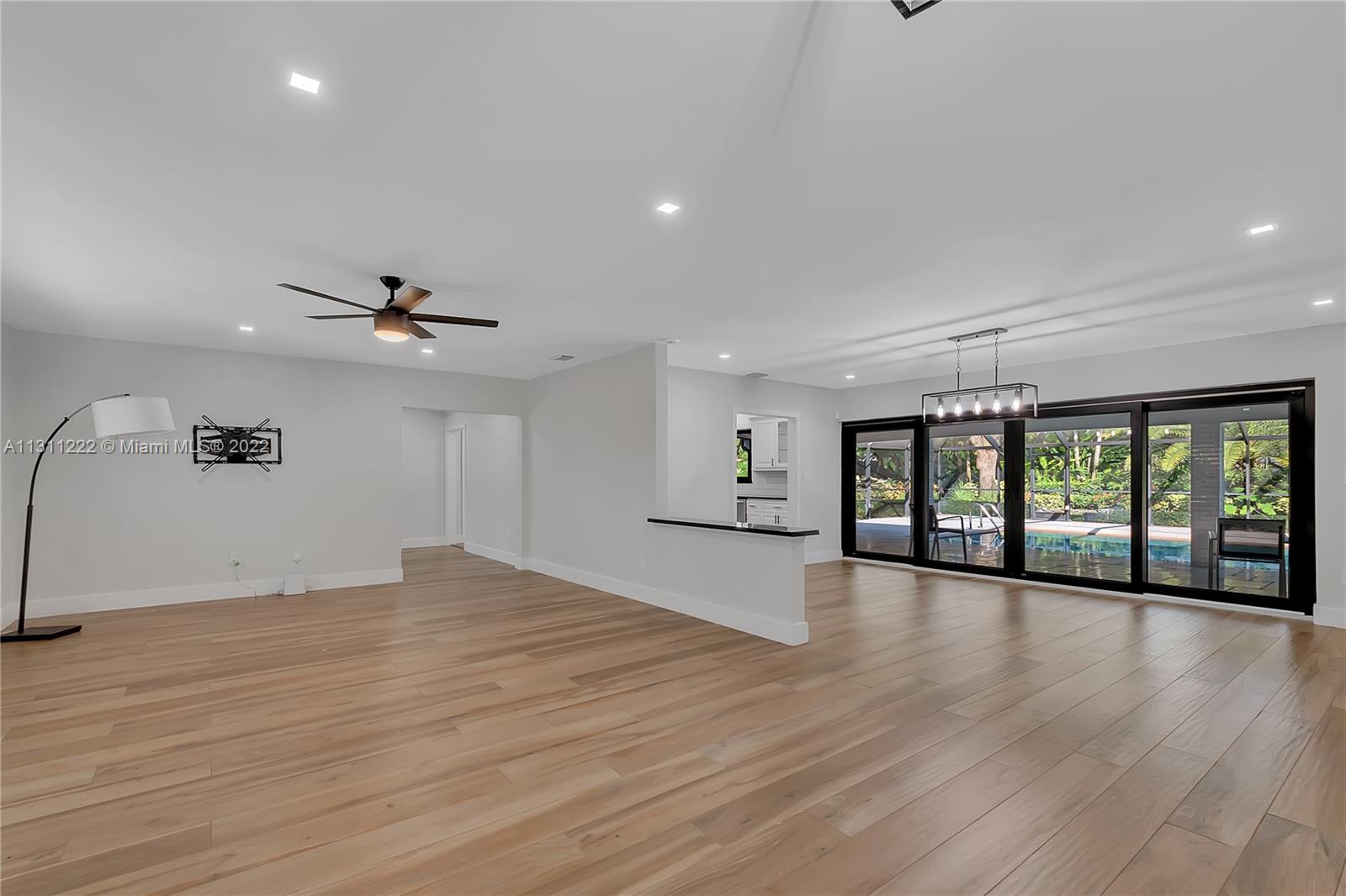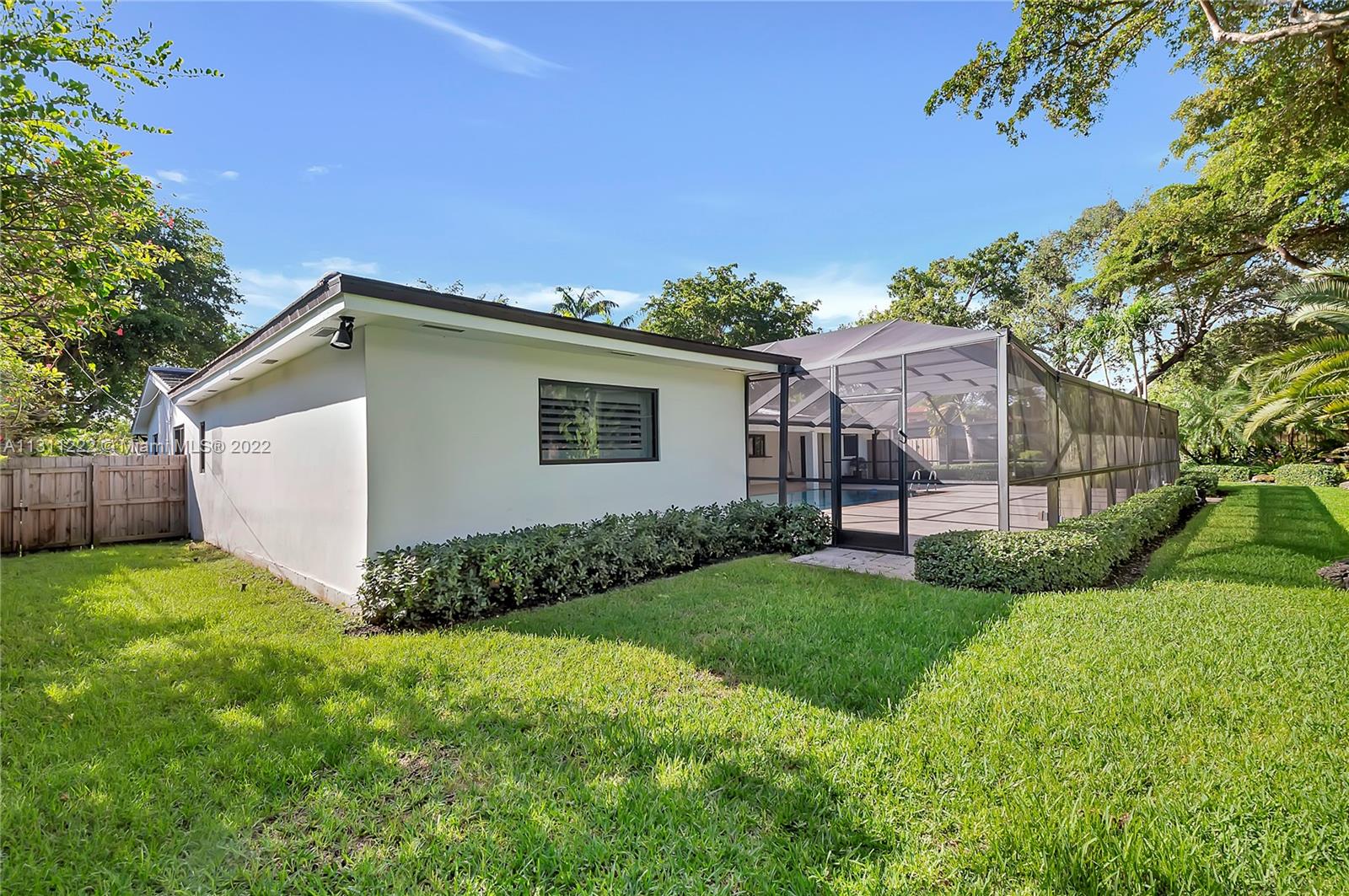 Renovated, 4 bdrm/ 3 bath home in the Village of Pinecrest. Great entertaining spaces. Open formal living room and family room. Formal dining off the kitchen. Modern yet charming kitchen with white cabinetry, subway tile backsplash, granite countertops & new stainless appliances including double ovens. Warm blonde wood plank tile flooring. Spacious, light-filled bedrooms. Fantastic, updated bathrooms. Wonderful primary suite w/ double walk-in closets, dual sinks & view out to the pool. Spacious screened travertine patio w/ deep overhang & pool. Lush yet perfectly manicured landscaping, including a tranquil pond w/ waterfall. New flat tile roof, impact windows & doors. Large laundry room. 2 car garage, circular driveway.
