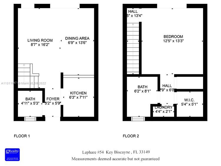 1 bedroom/1.5 bright and spacious 2-story townhouse located in the Lephare community. Ceramic tile floors in living area and wood floors in upstairs bedroom. Sliding glass doors and windows bring plenty of natural light. Great location 1 block from the beach, community center, CVS, shopping and restaurants. Walk to Village green, state park and all of the many attractions of Key Biscayne. TWO parking spaces! Washer-dryer in unit. If you love green you will enjoy the lovely 2nd floor balcony and ground floor patio. Lephare amenities include a heated swimming pool, gazebo and walking gardens. Key Biscayne has tennis courts, golf and a marina for sea lovers, water sports and deep sea fishing . The island has numerous wonderful parks with restaurants and tropical vegetation!