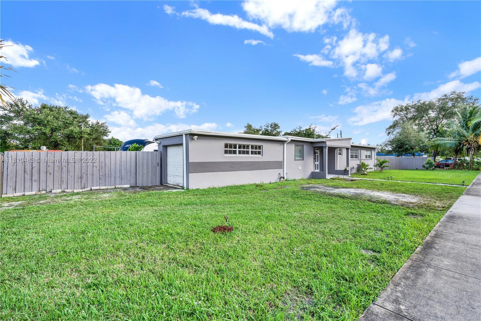 BEAUTIFUL move in ready 3/2 in quiet neighborhood with a bonus room that could be used as an office/den/playroom/Florida Room, plenty of space for a boat/RV, room for pool. No HOA, no restrictions. large fenced yard, Remodeled kitchen with new appliances. Close to Hard Rock Stadium and the Hard Rock Hotel and beaches. Corner Lot, new roof, impact, Iheat tankless water heater , south windows and doors impact , Rainsoft water softer system.