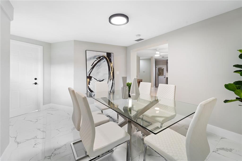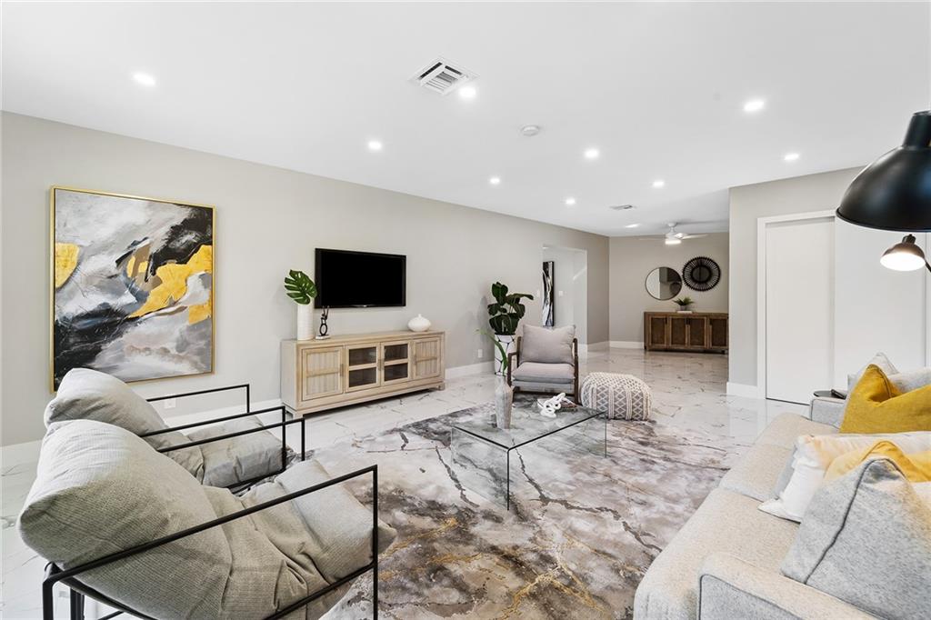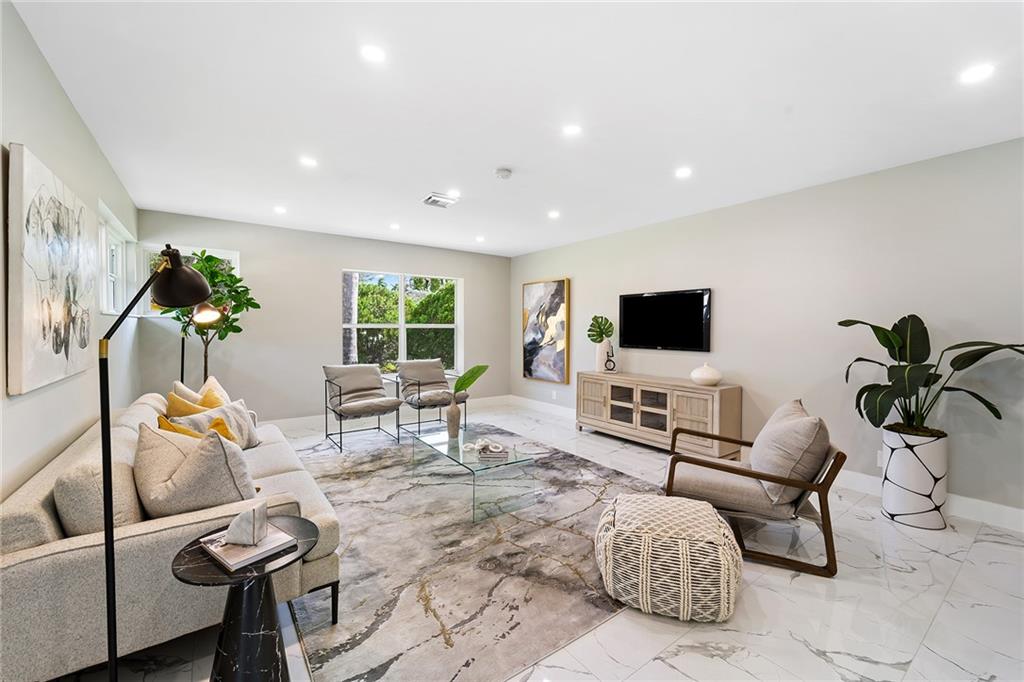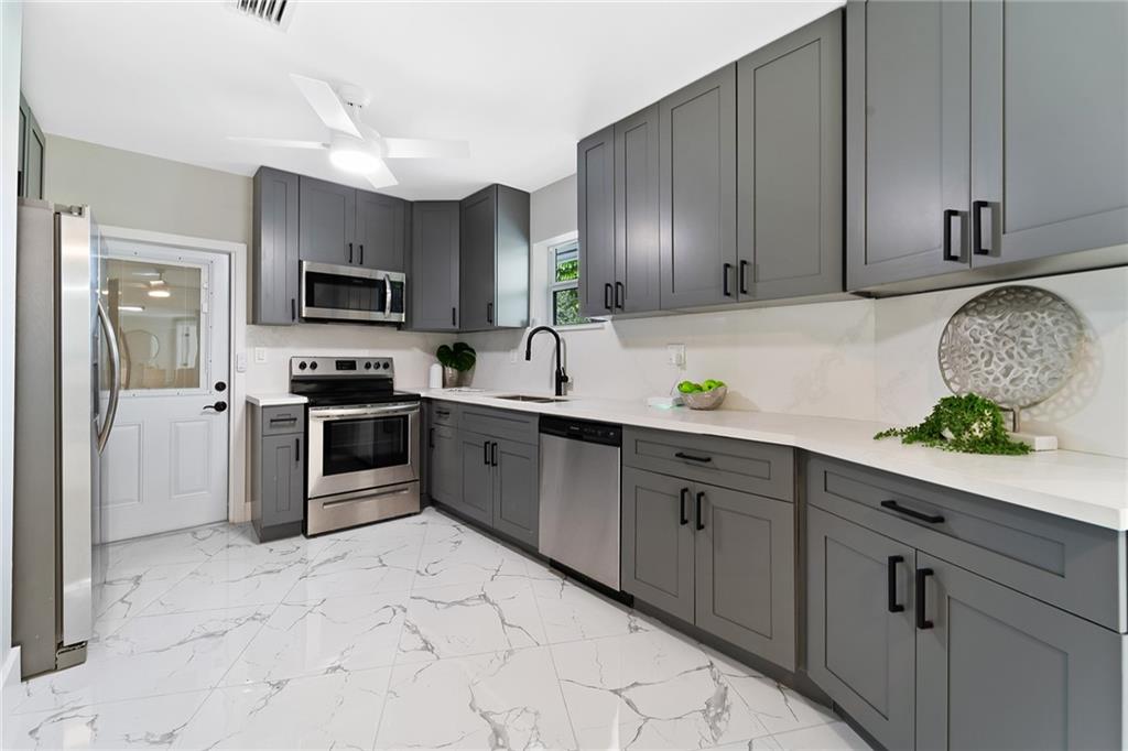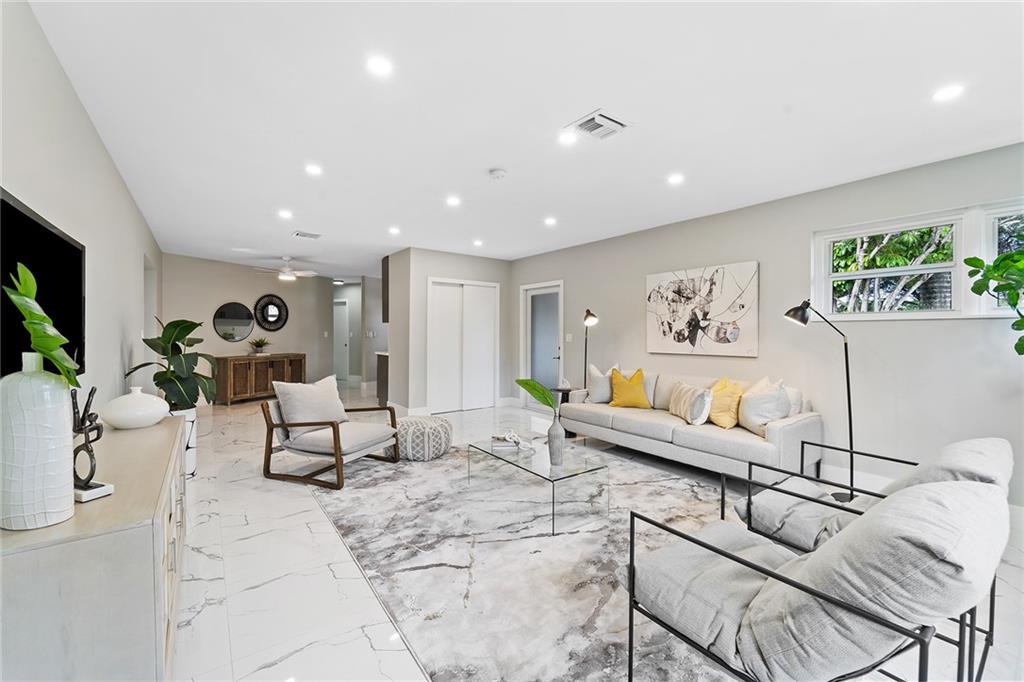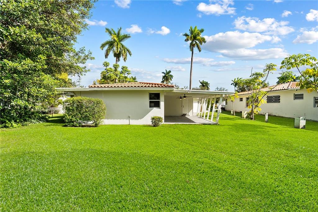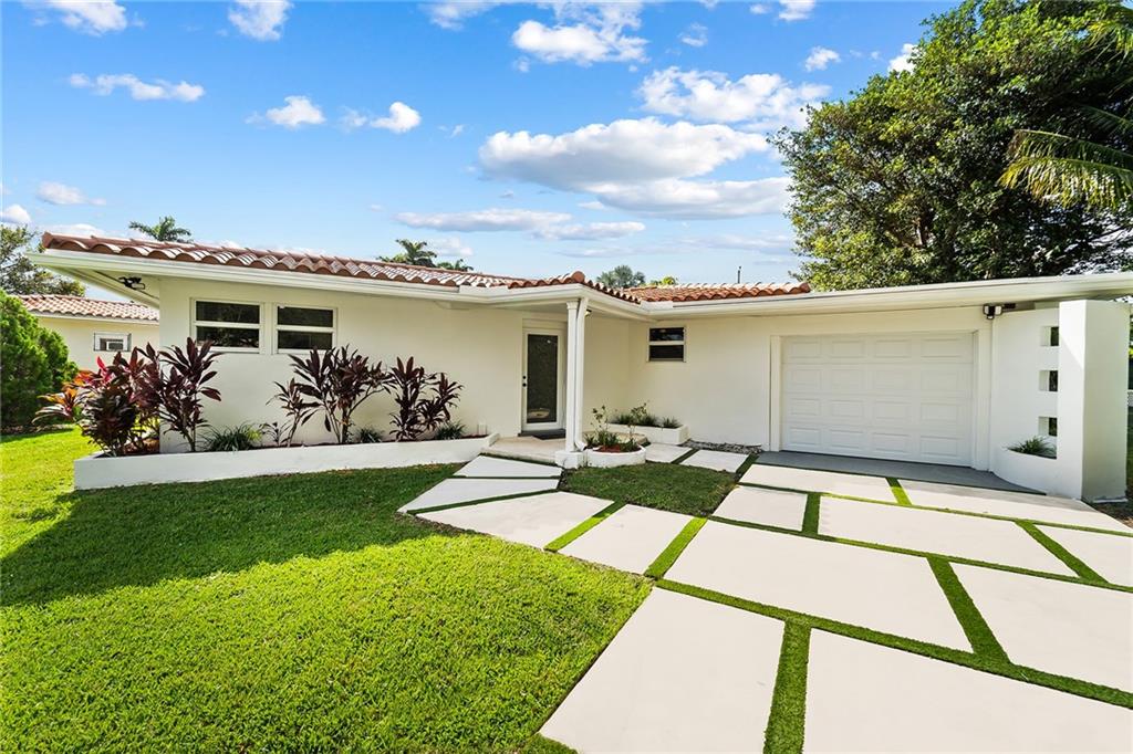 Dazzling upgrades, open spaces + stunning backyard at this 3-bed, 2-bath in wonderful Miami Shores! Miami Shores CC down the street, Miami Country Day School, tennis + downtown in minutes. Latest enhancements: cement box driveway, hurricane-proof 1-car garage door, porcelain tile + more within the residence. Super-spacious lot w/ dots of palms + vast green stretches. Tucked on a dead-end street for max tranquility! Structurally, a popping Spanish tile roof, Deco-esque back patio w/ fans + tons of windows for natural light. Inside, flexible spaces, recessed lights + gleaming tile. Open kitchen w/ gray shaker cabinets, modern white counters + stainless steel appliances. Primary suite includes ensuite w/ supersized, porcelain draped shower + stunning royal blue vanity. See it to believe it!