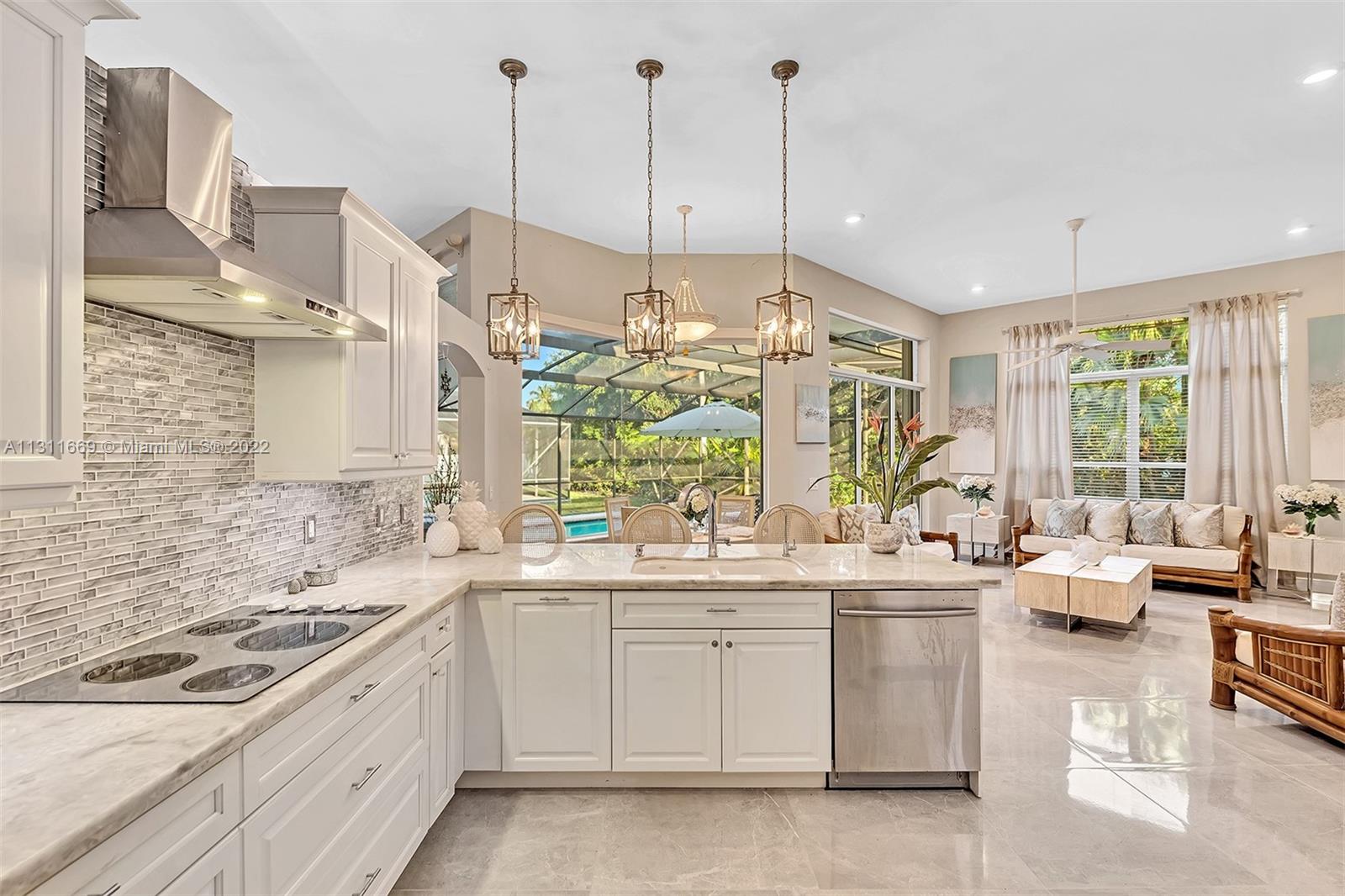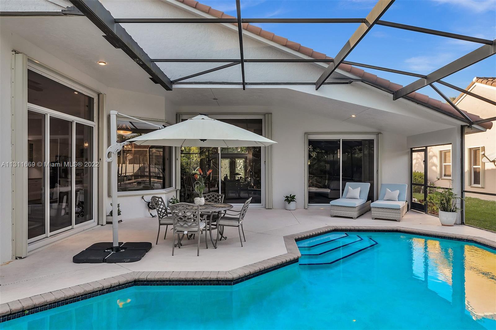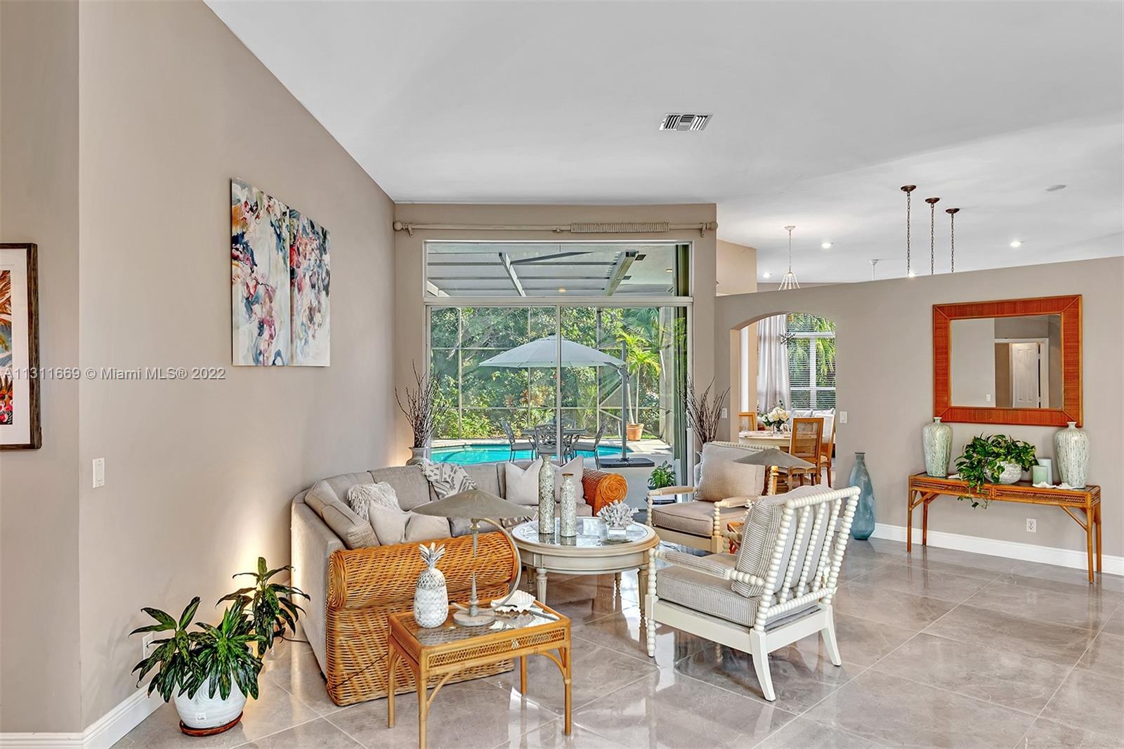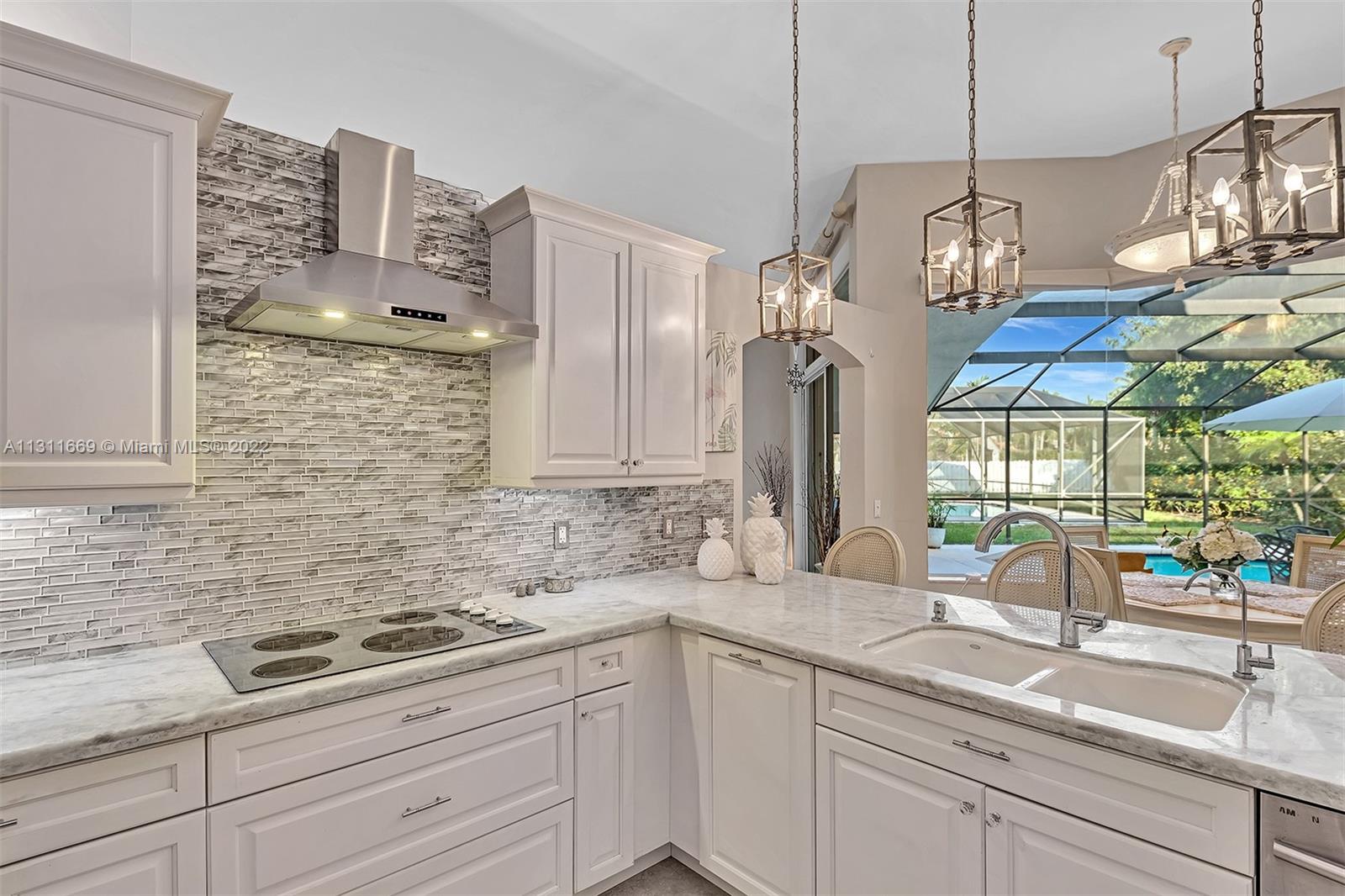 MOVE IN READY! This absolutely STUNNING 4 bed/3 bath one story home is set on perfectly manicured, lushly landscaped corner lot, COMPLETELY RENOVATED with transitional taste and a coastal flair. Enter the foyer and immediately feel the spacious living areas, volume ceilings and large sliders with transom windows. The chef's kitchen with quartzite counter tops, glass tile backsplash and wall oven/microwave overlooks the spacious family room. The master suite boasts a spa-like bathroom and 2 walk-in closets with built-ins. Other features include gorgeous 36x36 inch tile, trendy light fixtures and 3 way split bedroom plan. The screened pool with large patio is surrounded by generous yard. NEW ROOF and accordion shutters. 24 hr guard gated. Steps to community pool, playground and soccer field.