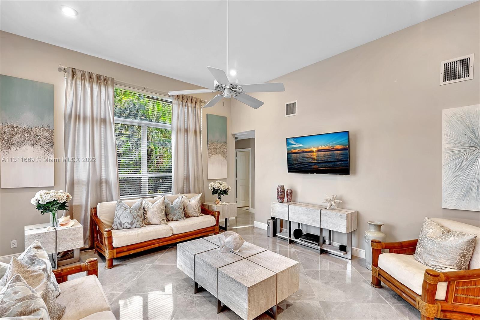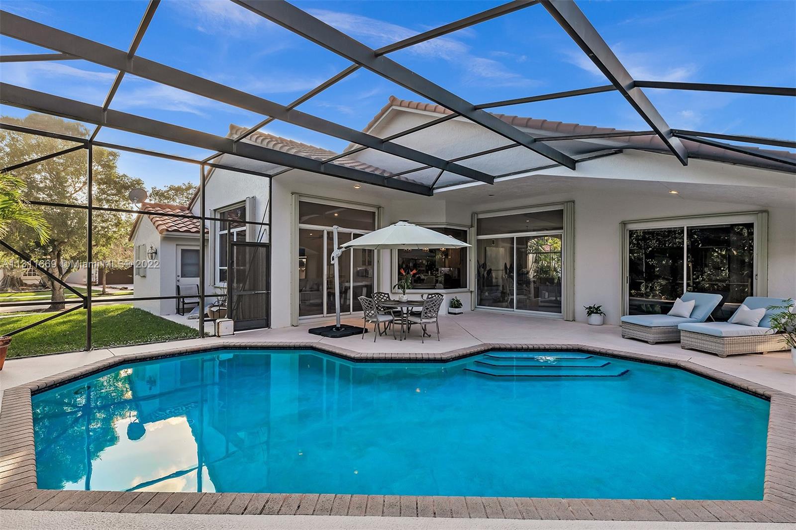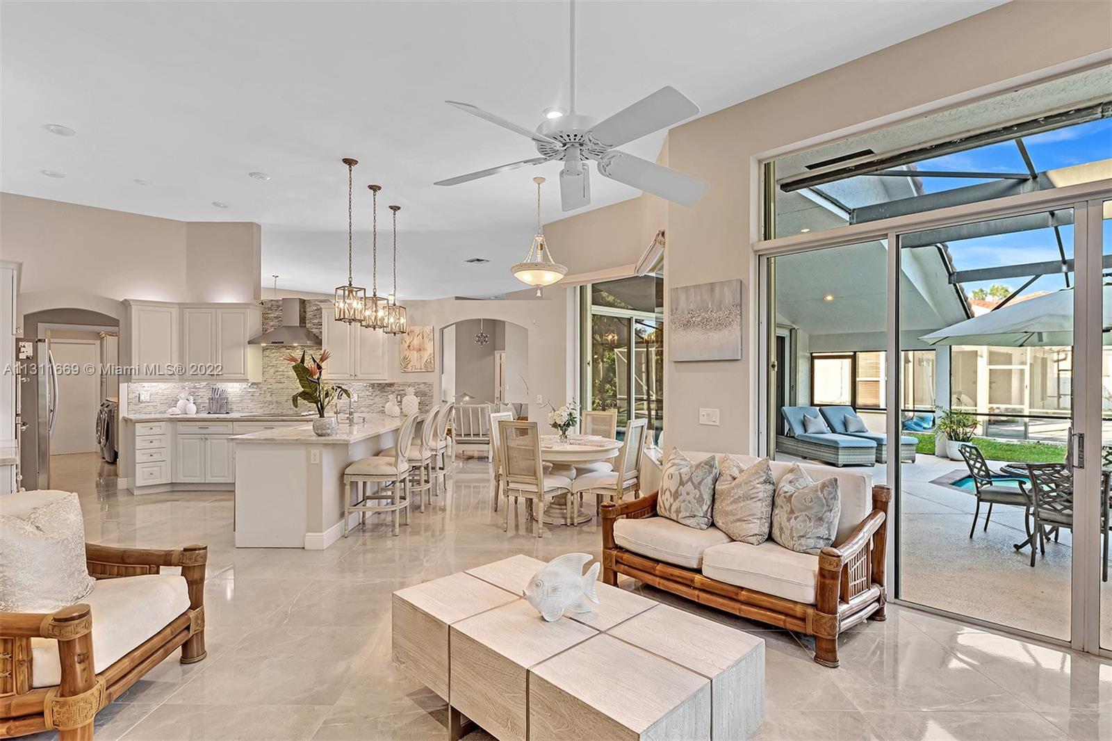 MOVE IN READY! This absolutely STUNNING 4 bed/3 bath one story home is set on perfectly manicured, lushly landscaped corner lot, COMPLETELY RENOVATED with transitional taste and a coastal flair. Enter the foyer and immediately feel the spacious living areas, volume ceilings and large sliders with transom windows. The chef's kitchen with quartzite counter tops, glass tile backsplash and wall oven/microwave overlooks the spacious family room. The master suite boasts a spa-like bathroom and 2 walk-in closets with built-ins. Other features include gorgeous 36x36 inch tile, trendy light fixtures and 3 way split bedroom plan. The screened pool with large patio is surrounded by generous yard. NEW ROOF and accordion shutters. 24 hr guard gated. Steps to community pool, playground and soccer field.
