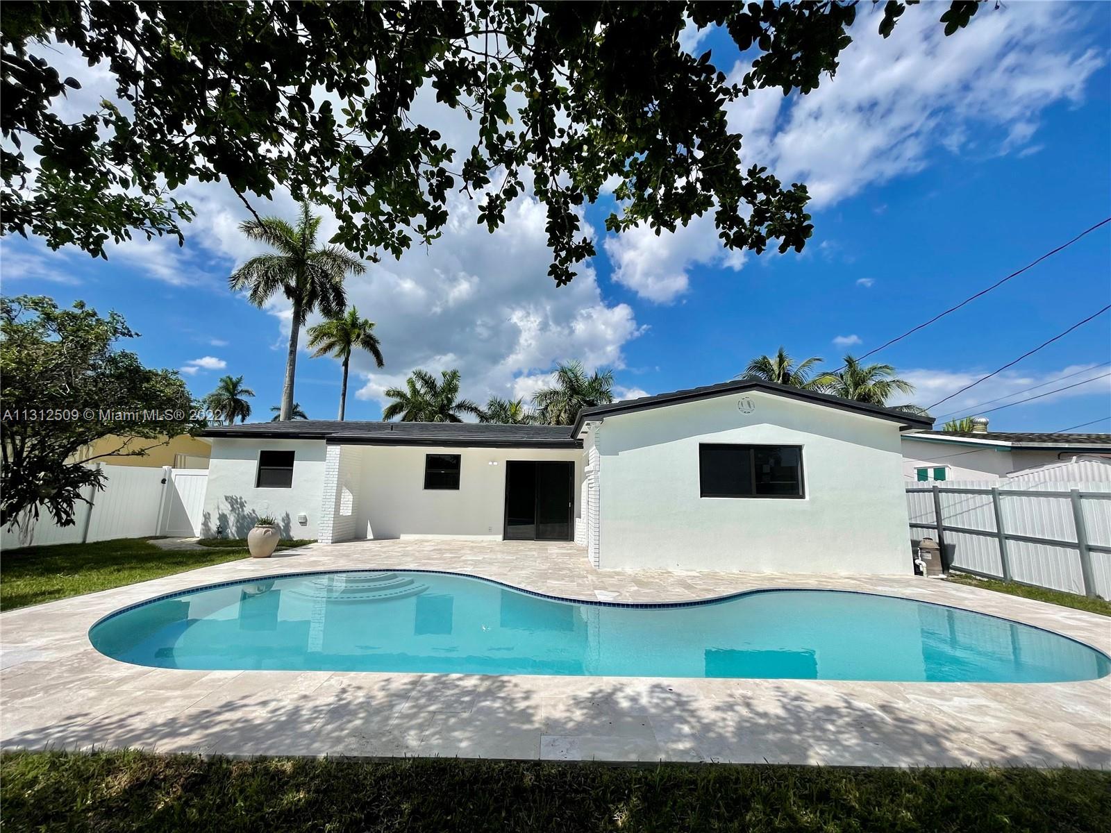 Brand New modern desing house with Impact Windows. Fully renovated pool on an oversized lot. 3 bedroom 2 bath, one big suite bedroom with waking closet. Space available for a double door refrigerator. Great backyard with sprinkler system for entertaining family and friends. New electrical panel. Conveniently located near highways, shopping, restaurants and schools. No association fees.