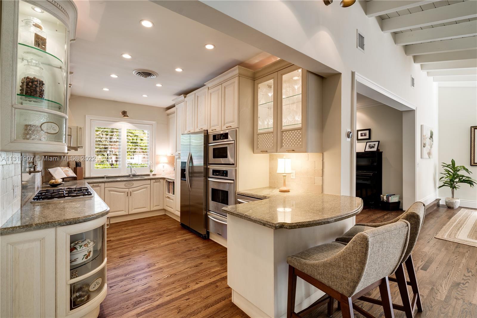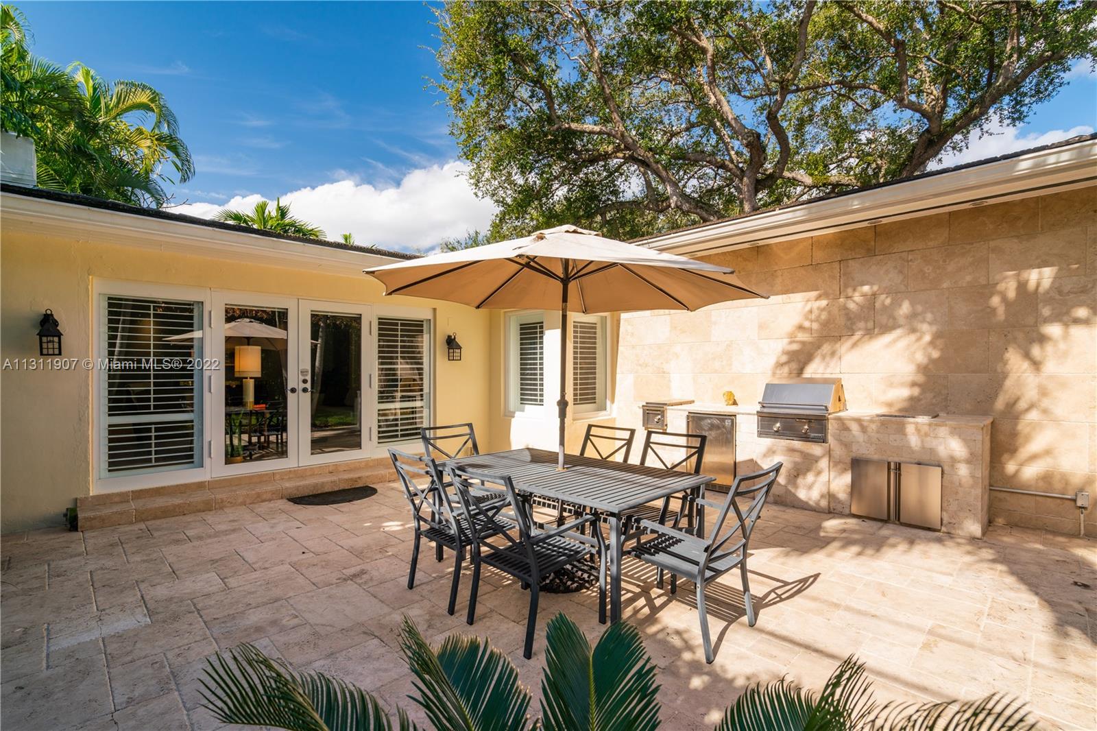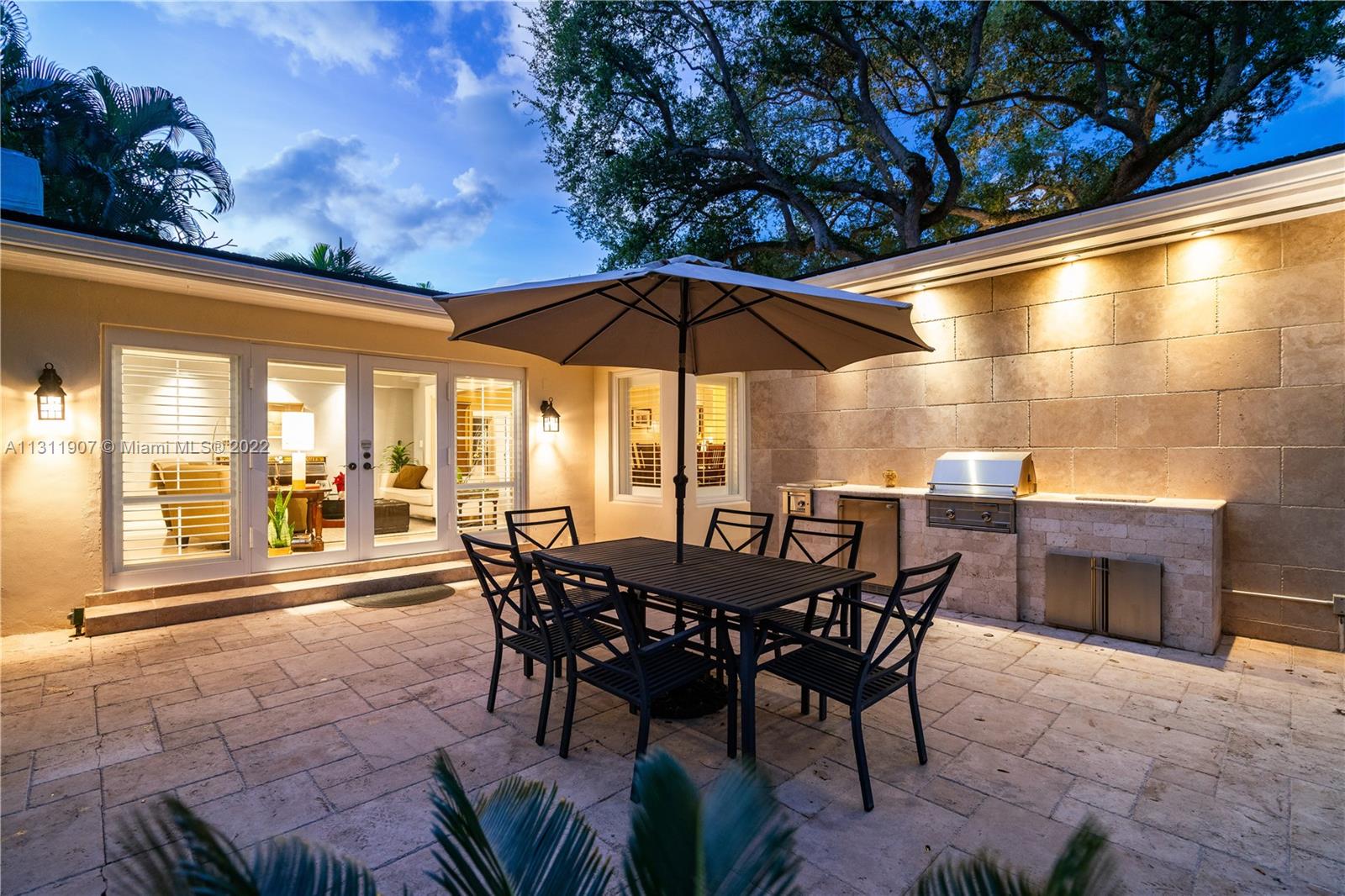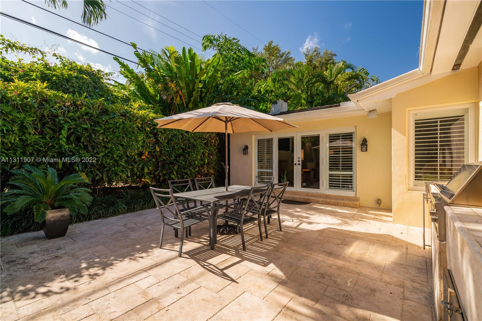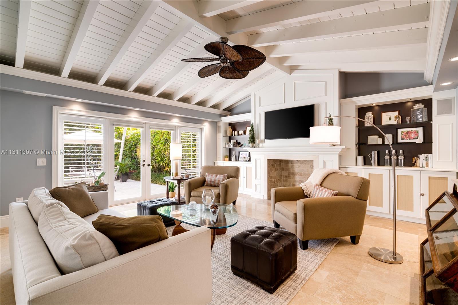 This idyllic Coral Gables home is a jewel. Quality, high-end finishes are evident throughout this 2000 sf home. Gorgeous wood floors and moldings enhance the vaulted ceilings and generously sized rooms. The beautiful great room is where you will want to spend all your time. An Italian-designer kitchen offers excellent storage as well as a gas stove, pot filler & wine cooler. The wood-burning fireplace, designer walk-in closets, & plantation shutters add additional charm and refinement. The bonus room is a perfect spot for a home office. A summer kitchen and BBQ and outdoor patio will be used year-round for entertaining. This home is in a prestigious Coral Gables pocket, sitting high on the ridge in a no flood zone. Two car garage with lots of storage. A Very Special Home.