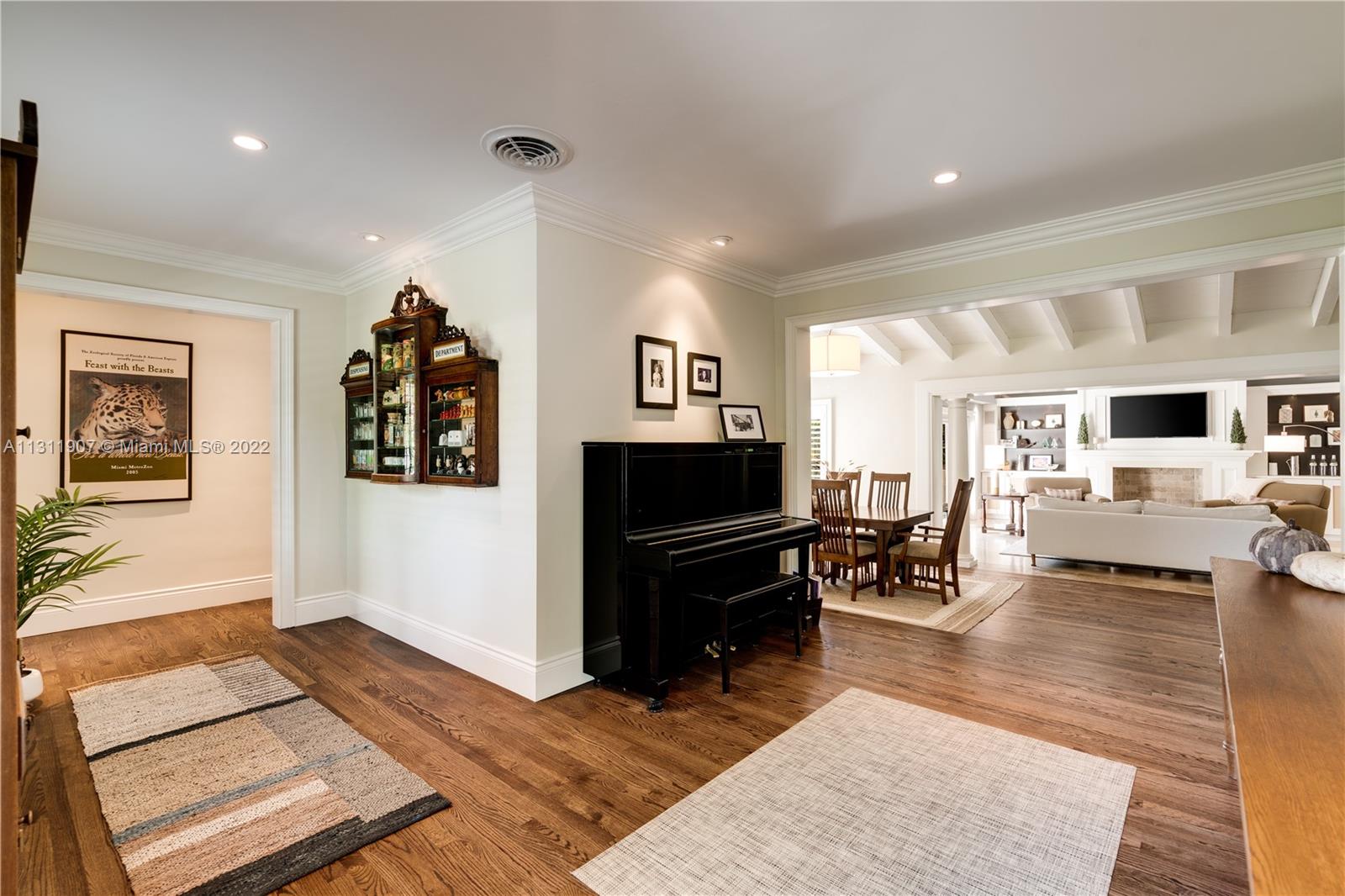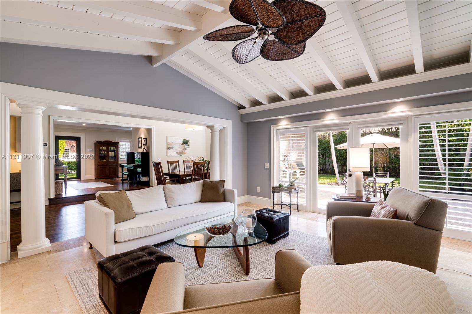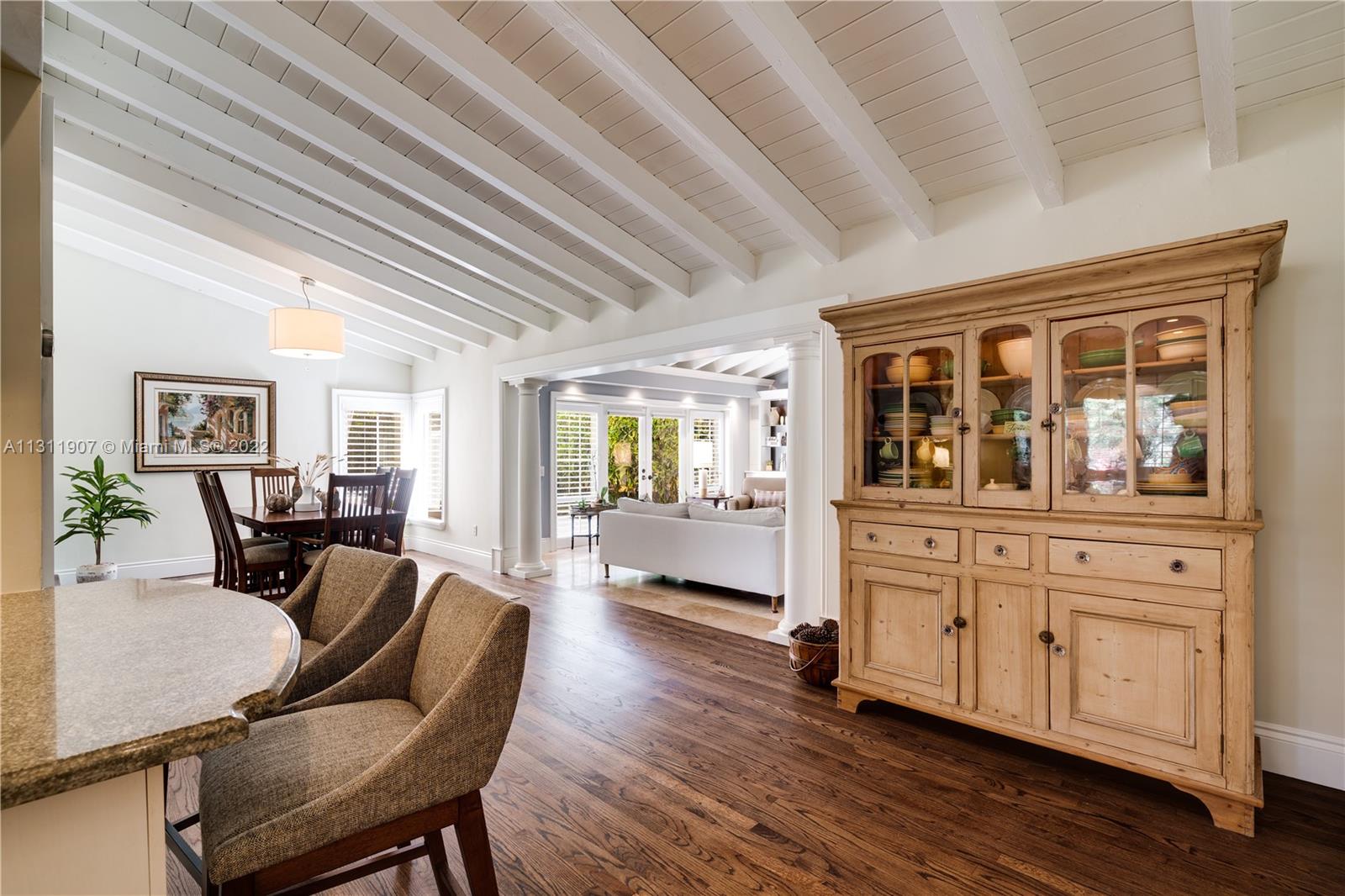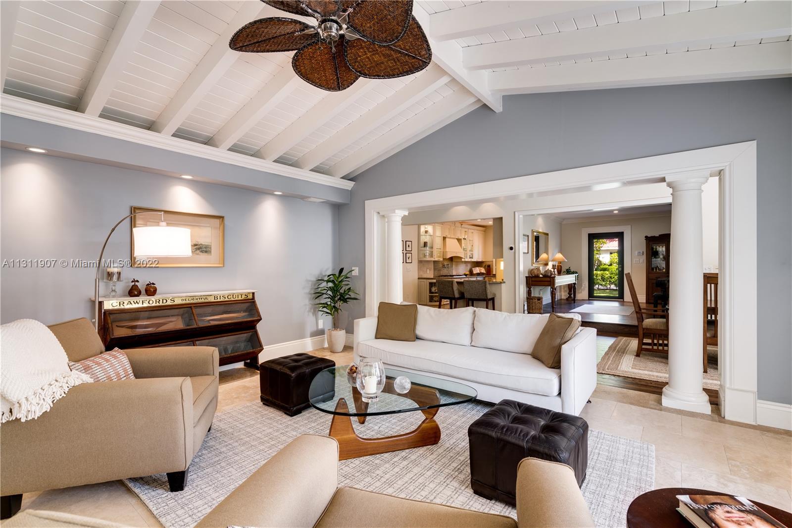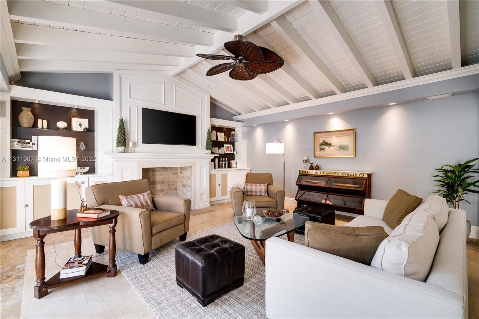 This idyllic Coral Gables home is a jewel. Quality, high-end finishes are evident throughout this 2000 sf home. Gorgeous wood floors and moldings enhance the vaulted ceilings and generously sized rooms. The beautiful great room is where you will want to spend all your time. An Italian-designer kitchen offers excellent storage as well as a gas stove, pot filler & wine cooler. The wood-burning fireplace, designer walk-in closets, & plantation shutters add additional charm and refinement. The bonus room is a perfect spot for a home office. A summer kitchen and BBQ and outdoor patio will be used year-round for entertaining. This home is in a prestigious Coral Gables pocket, sitting high on the ridge in a no flood zone. Two car garage with lots of storage. A Very Special Home.