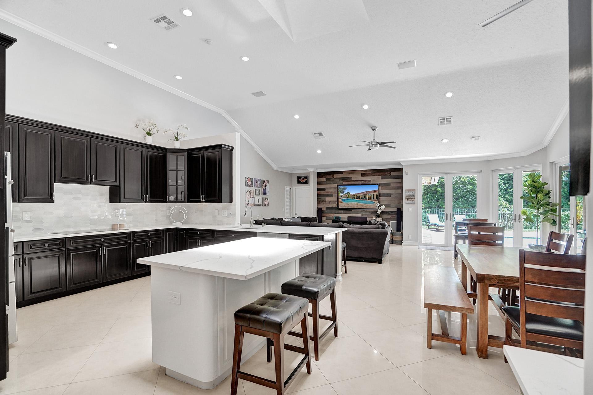 5 bed 4.5 bath plus custom office in Tequesta! Excellent school district . Walking distance to Publix. Pool home with 4,084 under air remodeled modern house with ALL the Extras. Perfectly located in Tequesta. The home features a custom built office, 13ft ceilings, large chefs kitchen with a large island quartz counters, all bathrooms have been fully remodeled, oversized pool, impact French doors and according shutters, 2015 roof, large lot, lush landscaping, quiet cul-de-sac street, oversized 3 car garage, and MORE! Triple split floor plan for plenty of room for the family and entertaining .5th bedroom is huge with private bathroom perfect mother-in-law suite. Primary bedroom suite, 2 walk-in closets, jacuzzi tub, double vanities, and marble shower. Walking distance to parks and Publix.