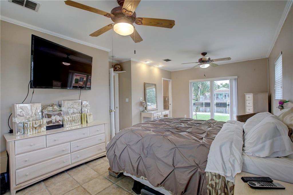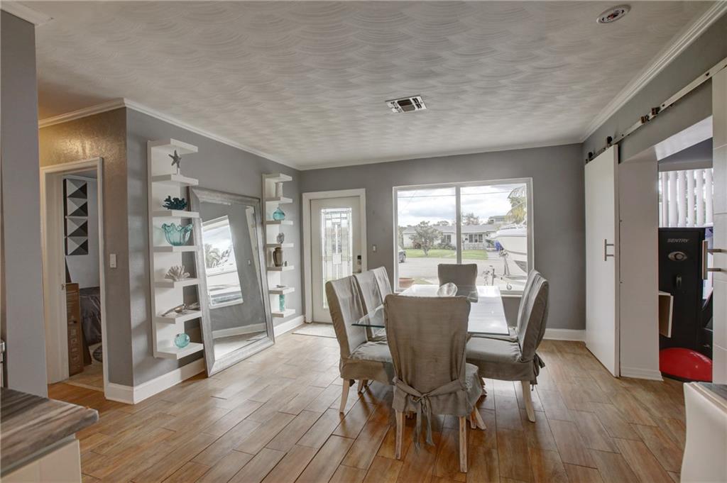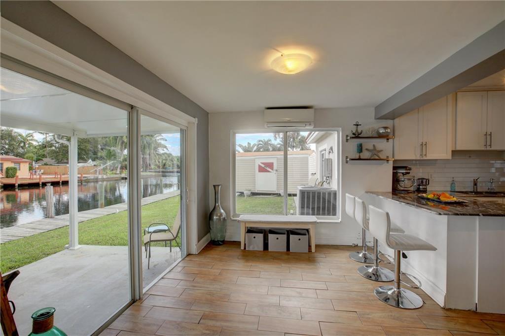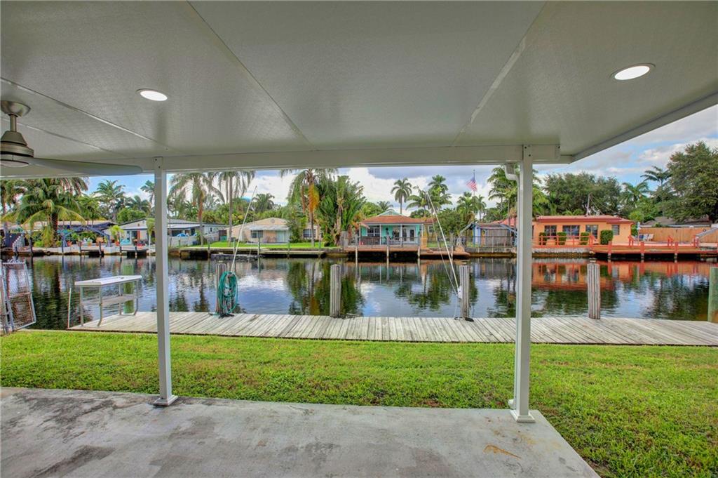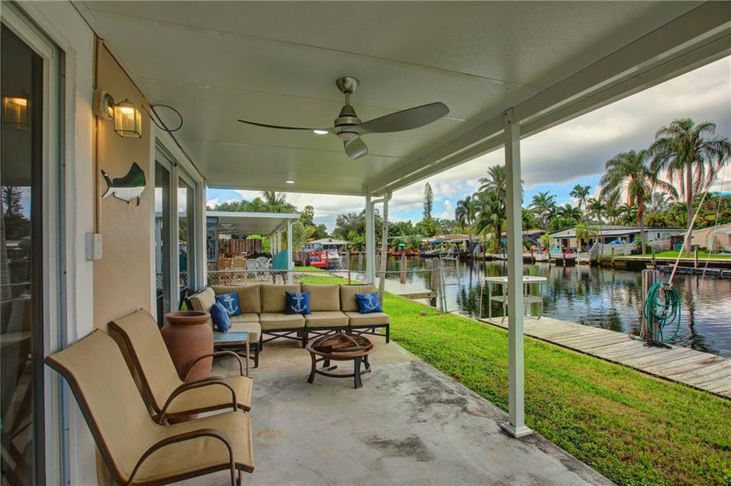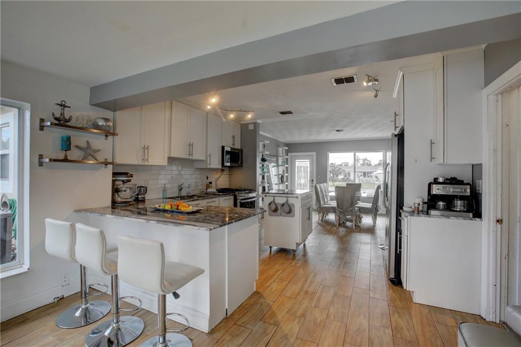 Beautifully remodeled waterfront home with ocean access. Features kitchen with white shaker cabinets & marble counter tops. Gas stove & gas water heater. Separate laundry room. 74 ft dock (there are several fixed bridges to get to the ocean). Impact doors & windows. Tile floor throughout. Covered concrete patio. Flat portion of the roof was replaced in 2020. The carport was enclosed (with permits) and adds 119 sq ft to the house plus an addition to the house (with permits) adds another 101 sq ft to the house. Total living area is 1407 square feet. House shows well! Don't miss it!