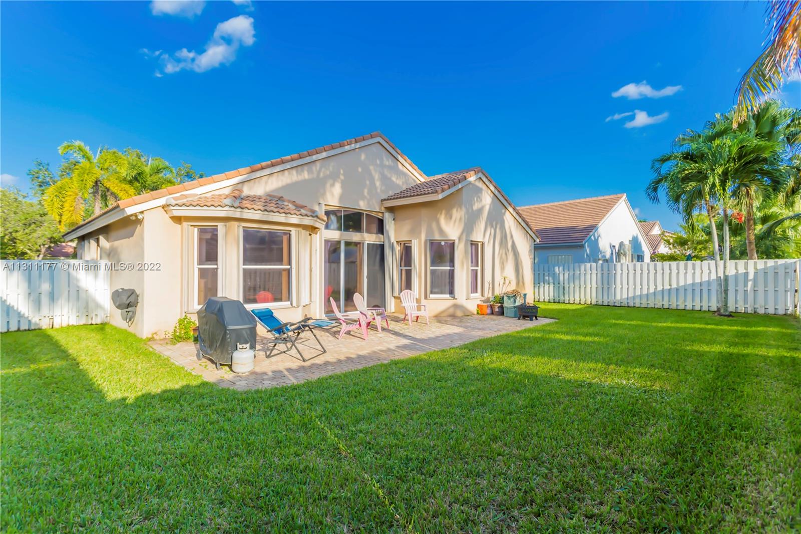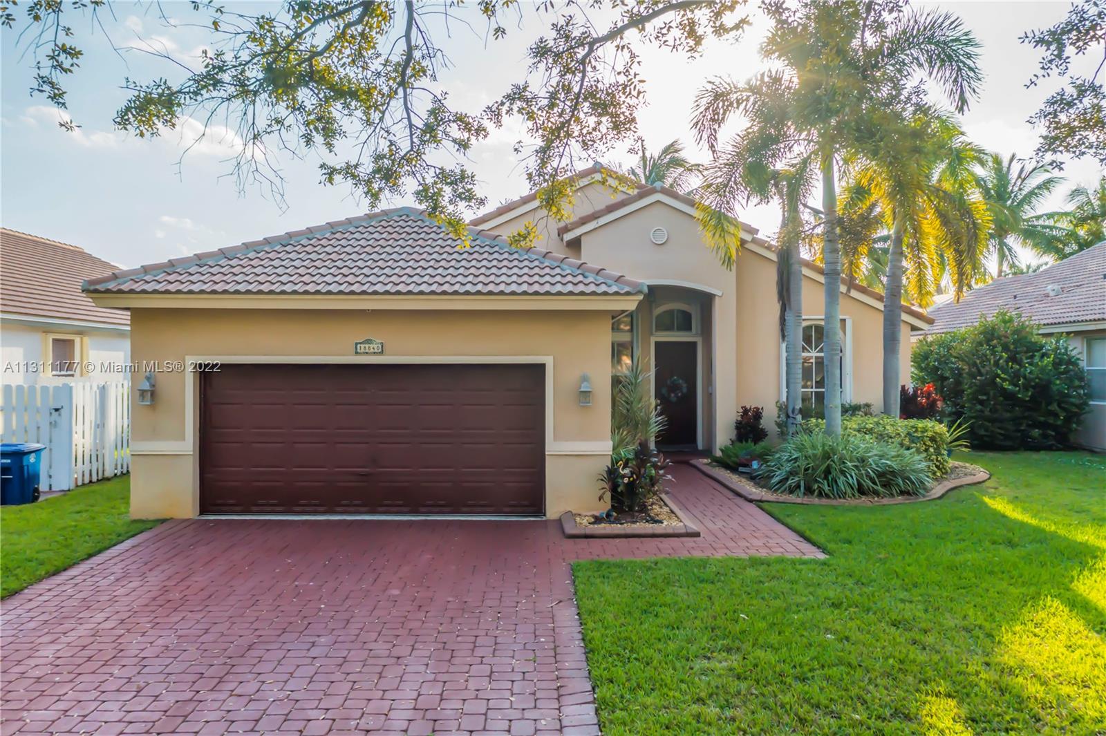 GORGEOUS THREE BEDROOM, TWO BATHROOM, ONE STORY HOME IN MONACO AT SUNSET LAKES. THIS HOME FEATURES TILE FLOORING & VOLUME CEILINGS THROUGHOUT. UPDATED KITCHEN WITH GRANITE COUNTERTOPS, WOOD CABINETRY & CUSTOM BUILT-IN BENCH AT BREAKFAST AREA. THE MASTER SUITE FEATURES A SITTING AREA & CUSTOM CALIFORNIA CLOSET. FULLY FENCED-IN BACKYARD WITH A PAVERED PATIO AND GRASSY YARD, WITH PLENTY OF ROOM TO BUILD A POOL. THIS HOME IS PROTECTED BY ACCORDION SHUTTERS.