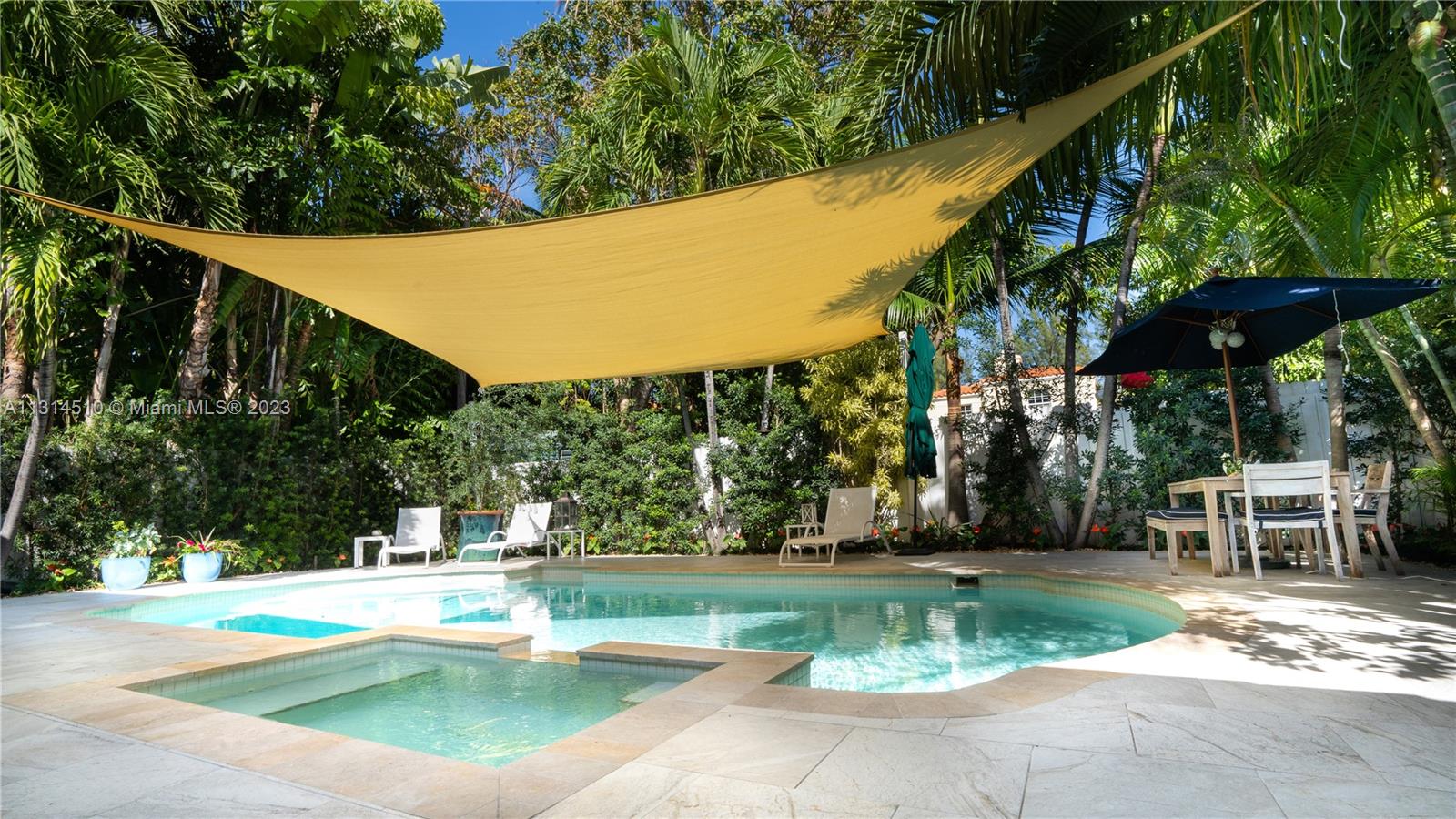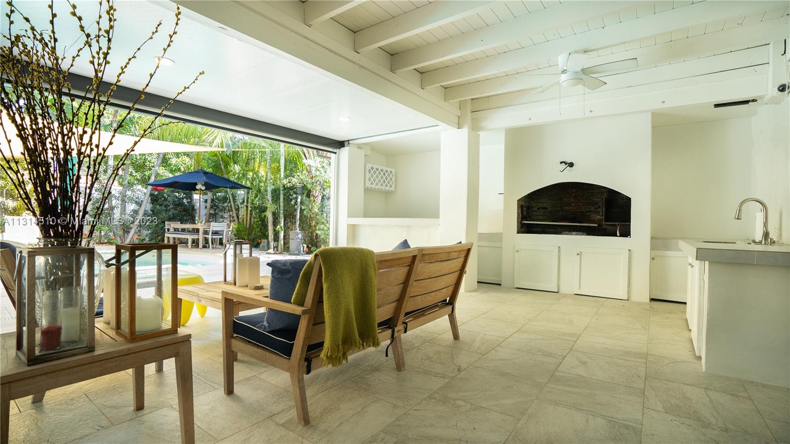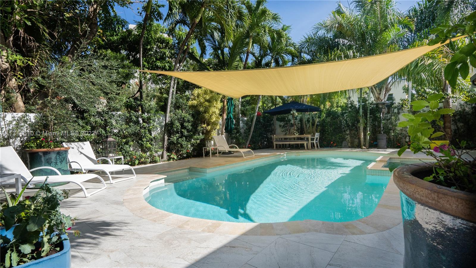 This private Miami Beach home offers a bright and spacious open floor plan and is conveniently located walking distance to 41st Street. You'll be close to restaurants, banks, stores and places of worship, as well as being within walking distance of the beach. Enjoy a private heated pool and jacuzzi surrounded by beautiful landscaping and fruit trees. The outdoor patio is perfect for entertaining with an Argentinian grill, wet bar, and plenty of seating with views of the pool. The master bedroom and living area both have folding windows that open completely to bring the outdoors in. The house is outfitted with great finishes, such as AC Diffusers and Recessed lighting, making this a great property to show.