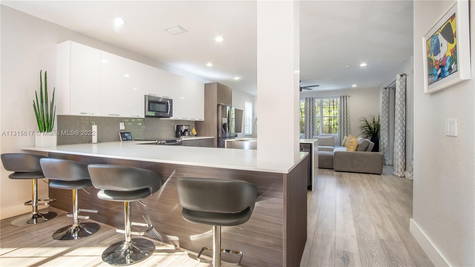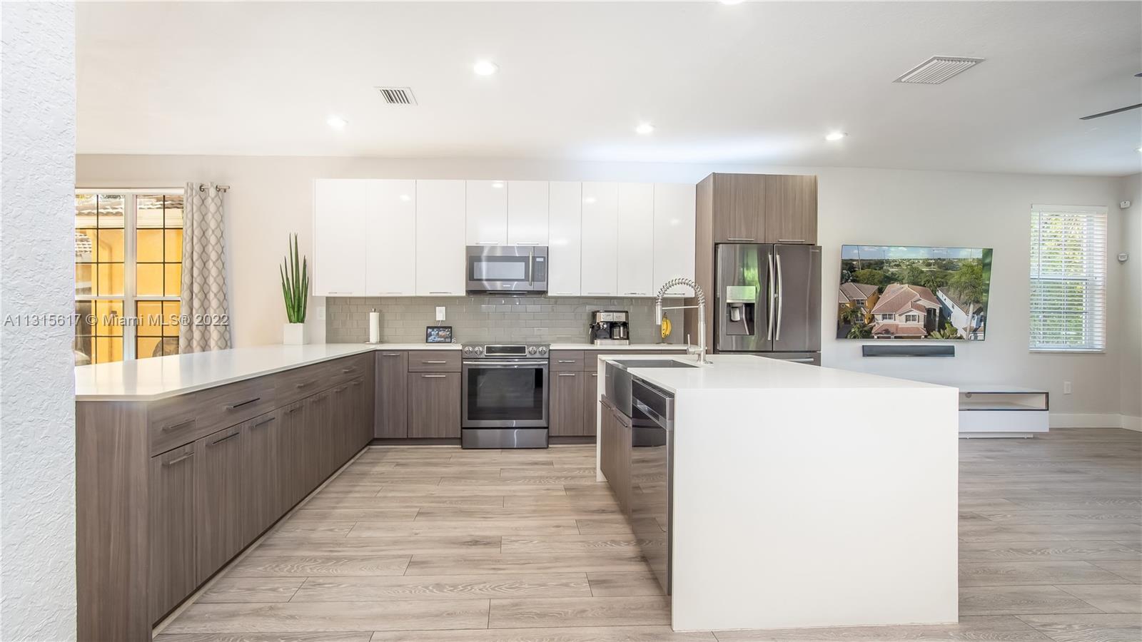Stunning 4 bedroom, 3 bath completely renovated home featuring an open and spacious modern design. Upgrades throughout including high-end kitchen cabinets, quartz counter tops, island & peninsula, black stainless steel appliances, SMART home features with custom lighting. Walk into your huge master bedroom suite with sitting area and 2 walk-in closets with custom built-ins. The master bath is luxurious with freestanding tub and pantry style storage closet. All bedrooms have walk-in closets and if you need more space, the upstairs loft is a great entertainment room or a 5th bedroom. Vaulted ceiling living area shows stunningly with tons of natural light entering from the patio. Great backyard for entertaining family & friends. No expense spared and conveniently located near great schools.