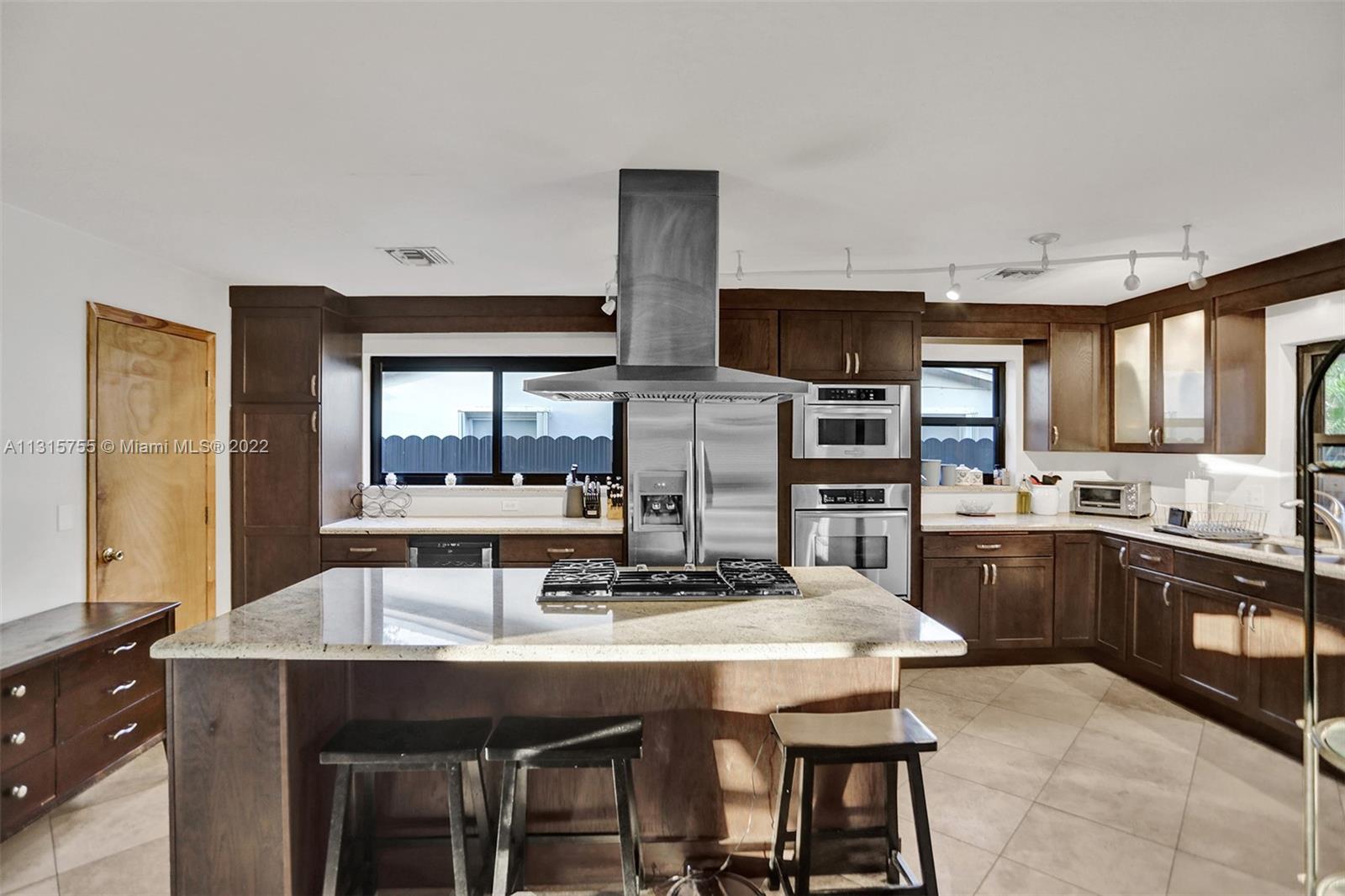 Imagine finding the perfect starter home that'll allow to host family birthday parties, friendly get together's, or the big game. Also, easy to Airbnb! This beautifully remodeled, 3 bedroom/ 2 bathroom in the heart of Hollywood Hills offers an open concept, dining and entertaining area with a huge island gas cooktop with seating. All hurricane impact windows and doors with tons of natural lighting. Plenty of covered, outdoor entertaining area and room for a pool with a private fenced backyard or just add a hot tub! Also enjoy hot water during any hurricane with a gas hot water heater. Separate laundry room next to the kitchen.