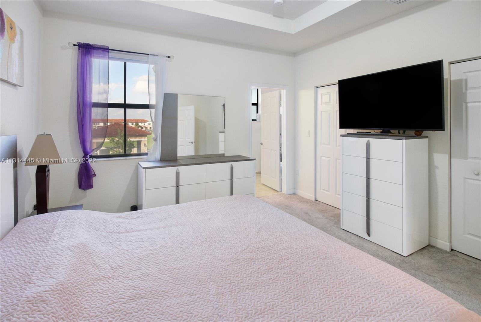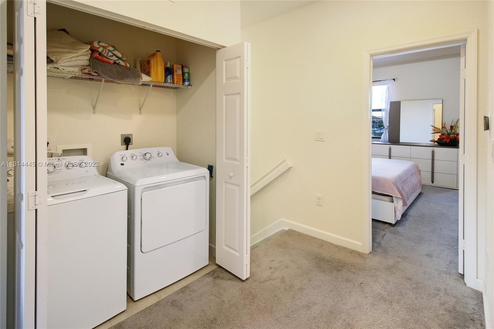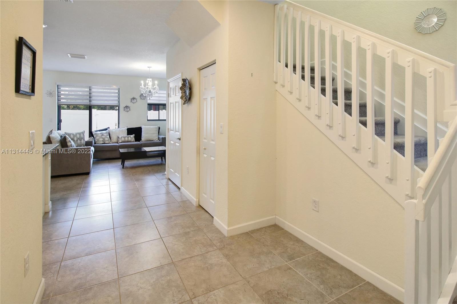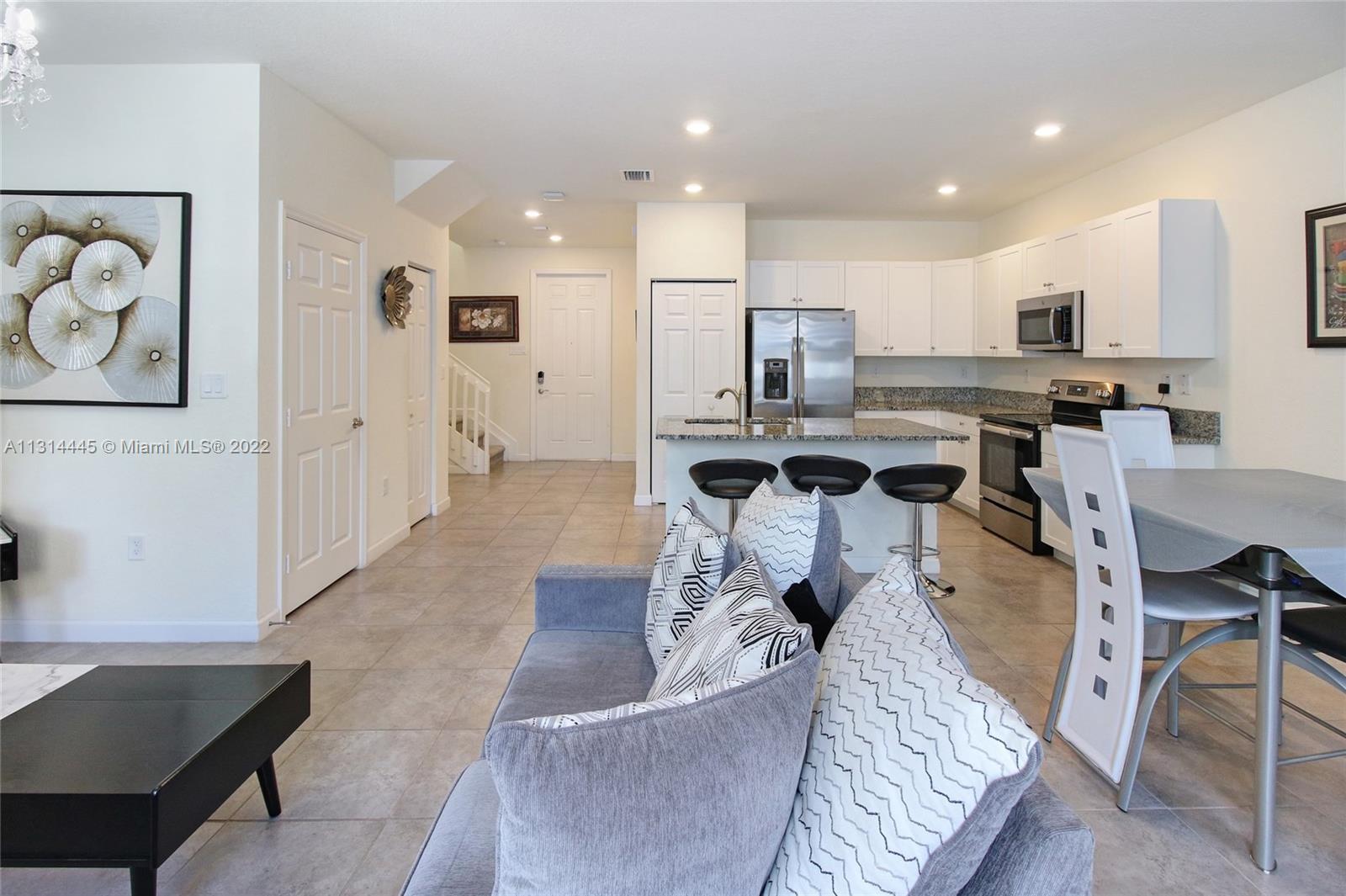 Presenting a beautiful townhouse, offering you a 3 bedroom, 2 full bathrooms and a half bathroom in the Aquabella community. This property features stainless steel appliances along with a kitchen island, dining area connecting to the living room. Giving a spacious backyard with concrete, great for entertaining guest, BBQ & family activities. Carpet leading upstairs covering the rooms, primary bedroom with an en suite and double closets, two standard rooms which share the second bathroom. Washer & Dryer provided on the second floor, easy access from the rooms. New construction home allowing quick access to nearby highways such as I-75, 826 & Turnpike and daily used convenient stores 5 miles or less away. This home neighbors great elementary, middle & high schools nearby.