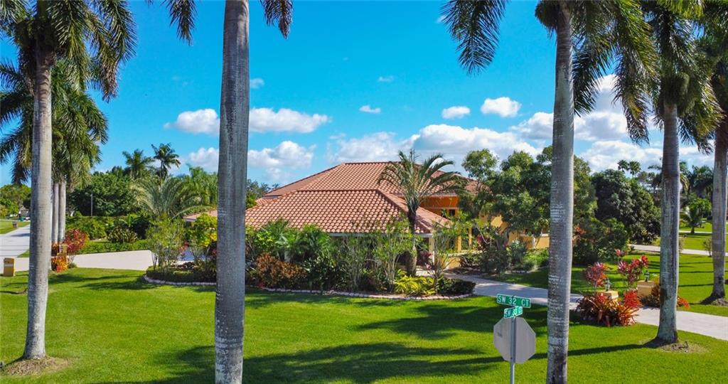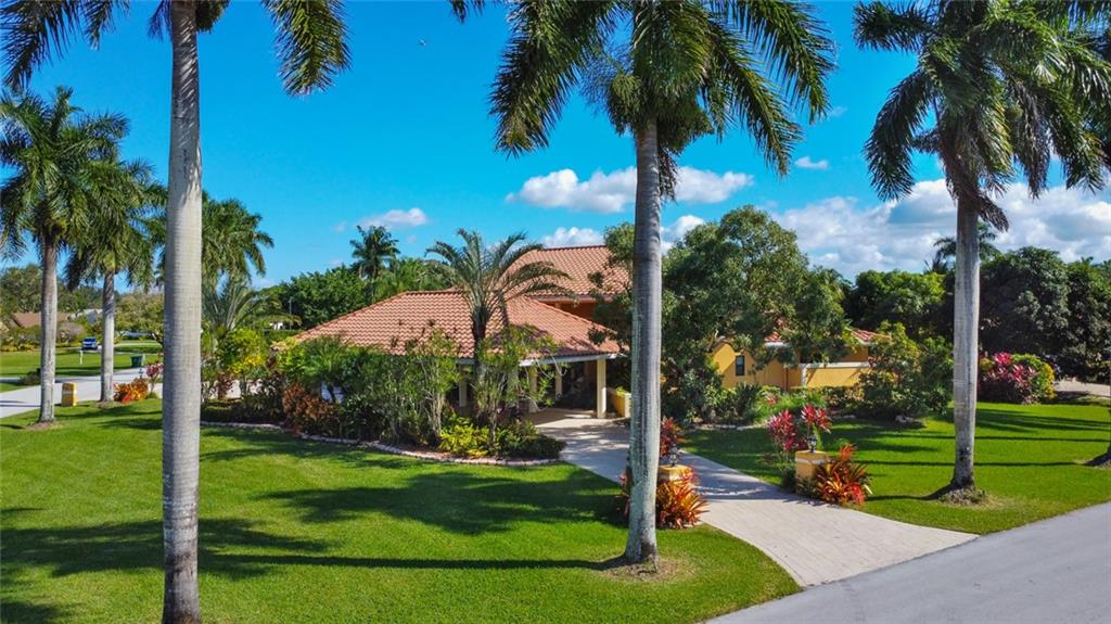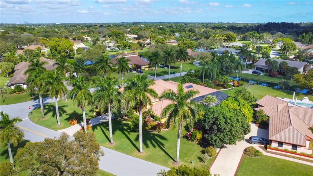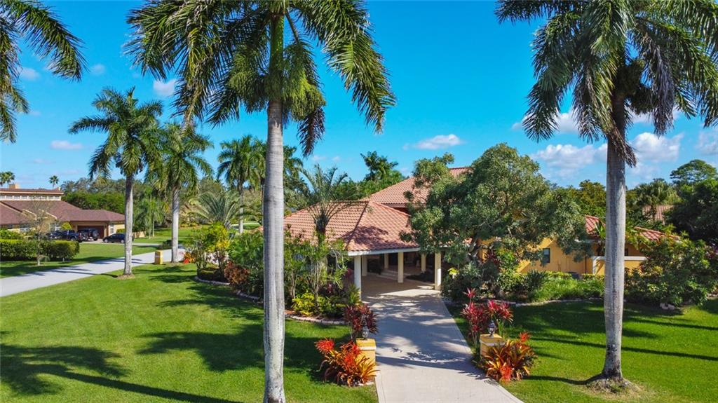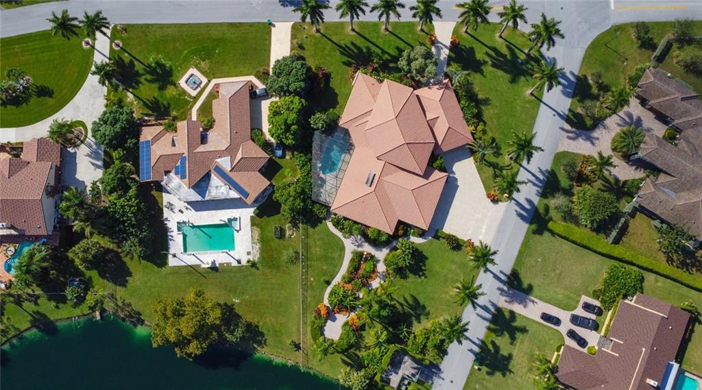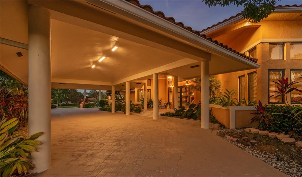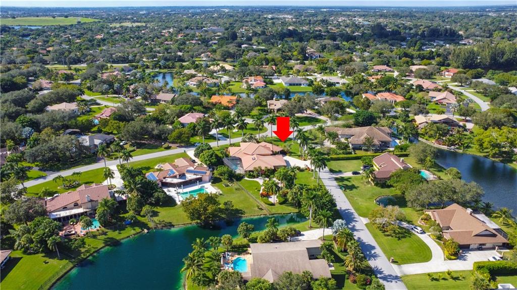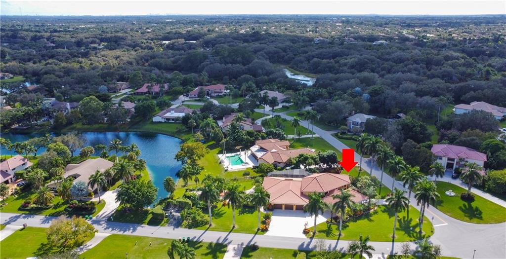 Spectacular, one-of-a-kind, contemporary home nestled in coveted Whispering Pines in the heart of Davie. From the grand, columned porte cochere entrance to the water's edge at the rear, this beautiful home thrills with every turn! Stroll along the pathways in its peaceful, lush tropical gardens or relax in the large, screened pool. With a large bar outside, ready for a new summer kitchen, dining is both formal & al-fresco! This home offers family fun & easy entertaining. Other features include soaring ceilings, a huge master suite with walk-in closets, spacious master bath w/vanity & lighted jacuzzi, impact glass windows & doors, wood & tile floors, huge Florida room w/wet bar, fenced property, fruit trees, silent pet fence, large circular drive, 3 car garage & alarm. Light, airy & bright!