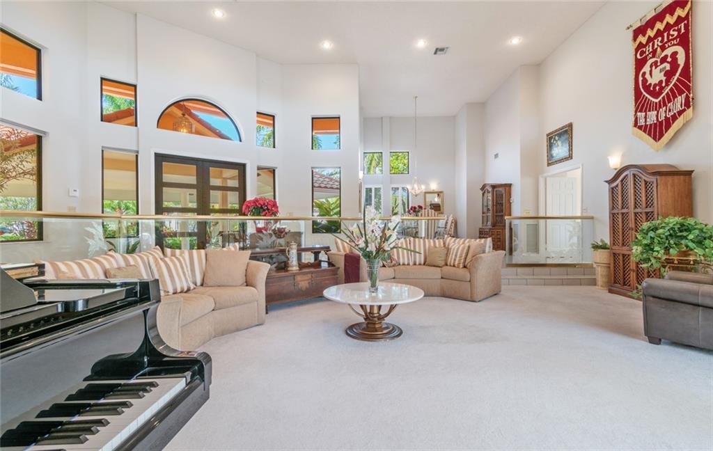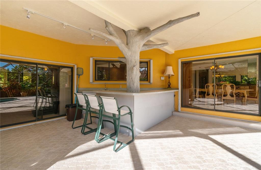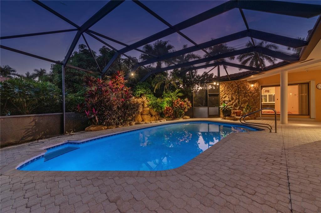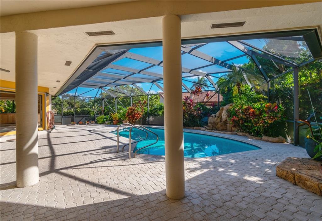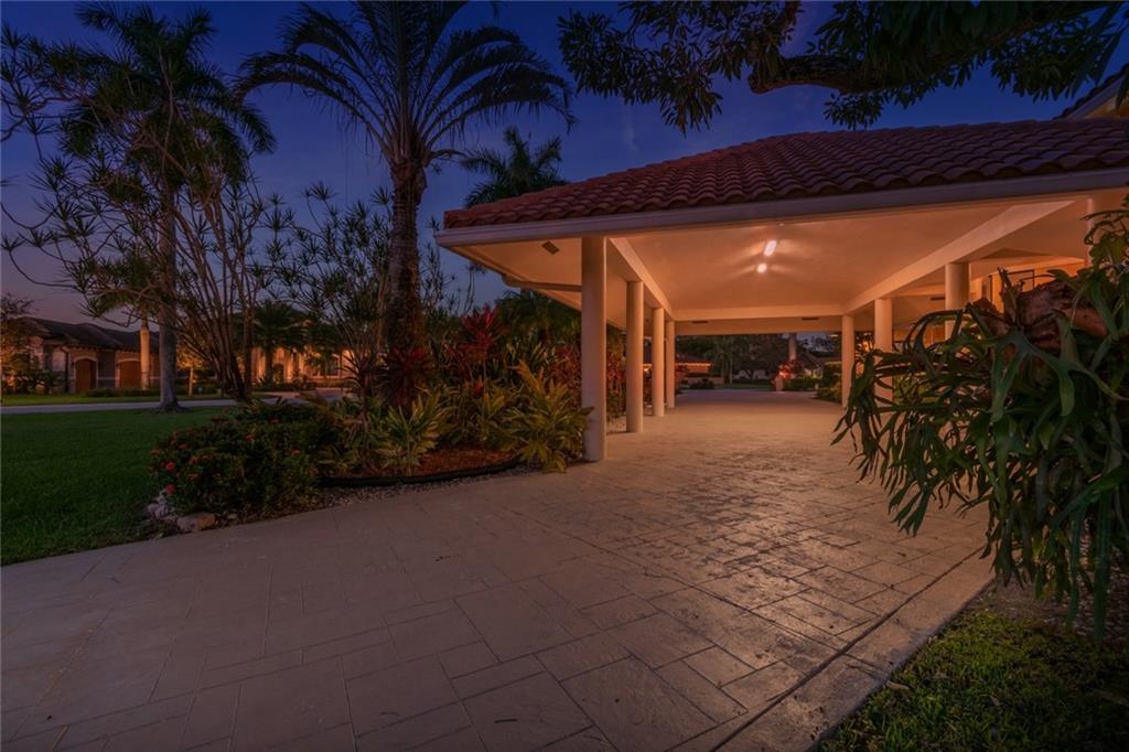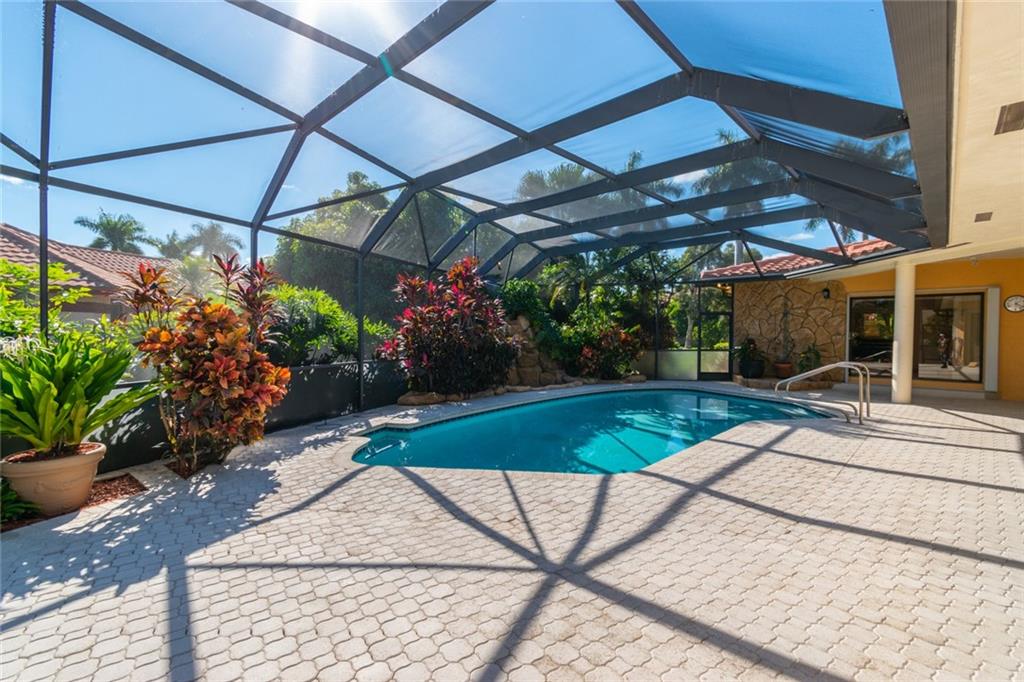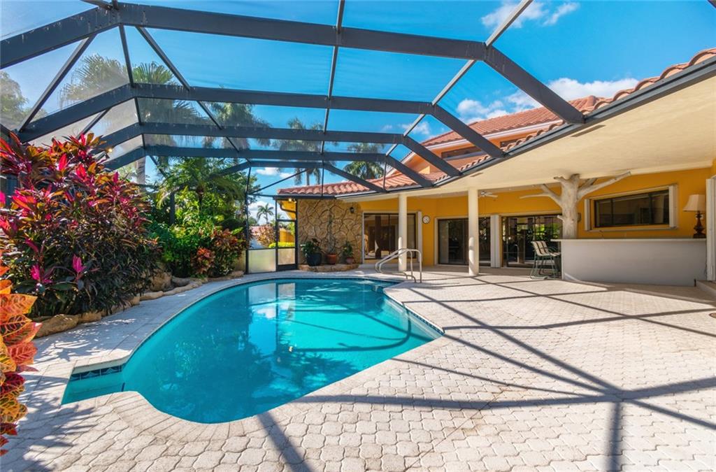 Spectacular, one-of-a-kind, contemporary home nestled in coveted Whispering Pines in the heart of Davie. From the grand, columned porte cochere entrance to the water's edge at the rear, this beautiful home thrills with every turn! Stroll along the pathways in its peaceful, lush tropical gardens or relax in the large, screened pool. With a large bar outside, ready for a new summer kitchen, dining is both formal & al-fresco! This home offers family fun & easy entertaining. Other features include soaring ceilings, a huge master suite with walk-in closets, spacious master bath w/vanity & lighted jacuzzi, impact glass windows & doors, wood & tile floors, huge Florida room w/wet bar, fenced property, fruit trees, silent pet fence, large circular drive, 3 car garage & alarm. Light, airy & bright!