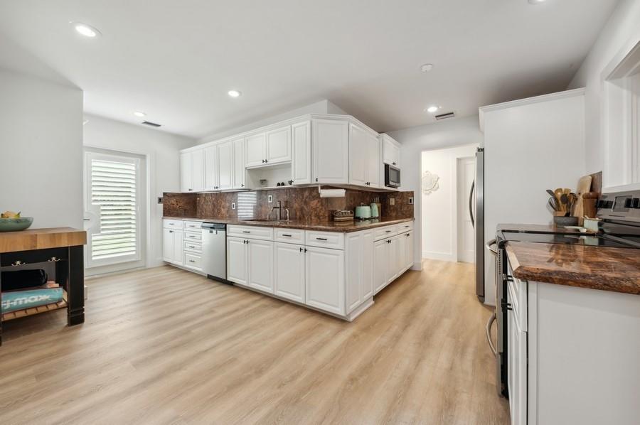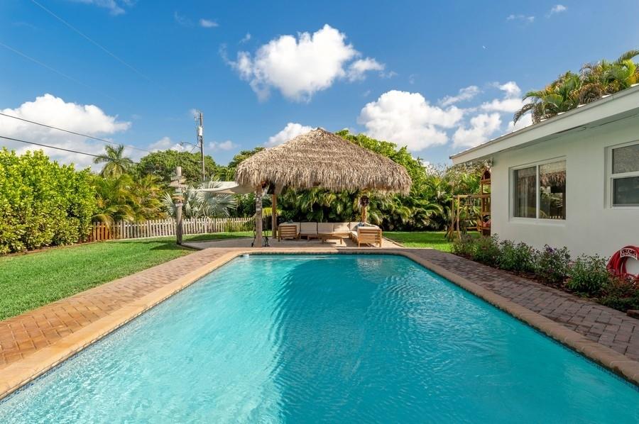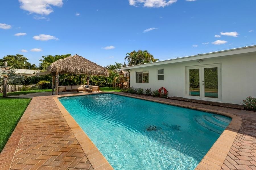 Dreaming of a vacation-inspired lifestyle in sought-after Old Pompano? Completely move in and FULLY renovated, this 4 bedroom/2 bathroom home is ready for you to enjoy! This home is an entertainer's dream featuring a large gourmet kitchen outfitted with stainless steel appliances, white cabinets, ample cabinetry and a beautiful bar. Spend your afternoons unwinding in the Tiki Hut overlooking the beautiful pool in this oversized lot. The many upgrades include new PVC plumbing throughout, impact windows & doors, a brand new aluminum roof, beautiful new LVT flooring, fresh interior & exterior paint and tropical landscaping. Come experience the ultimate in laid-back Florida living! Also would be a great opportunity for a vacation rental!