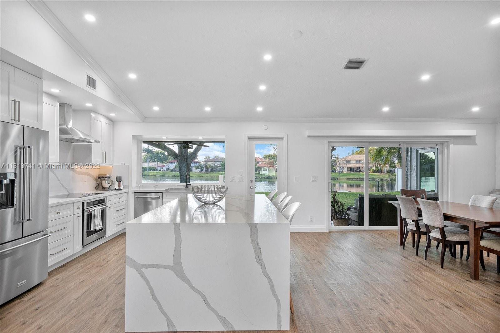 Step into this beautifully updated 4 bedroom 3.5 bath home with gorgeous water views. Remodeled over the last 2 years this home features a stunning open concept kitchen with white cabinets, stainless steel appliances, granite countertops and a large island. New flooring throughout including the huge primary suite with a new bathroom and walk-in closet. Newer impact windows and doors (2021), new AC, and new water heater! There is a beautiful screened in porch overlooking the large yard and lake. This home is a dream come true!
