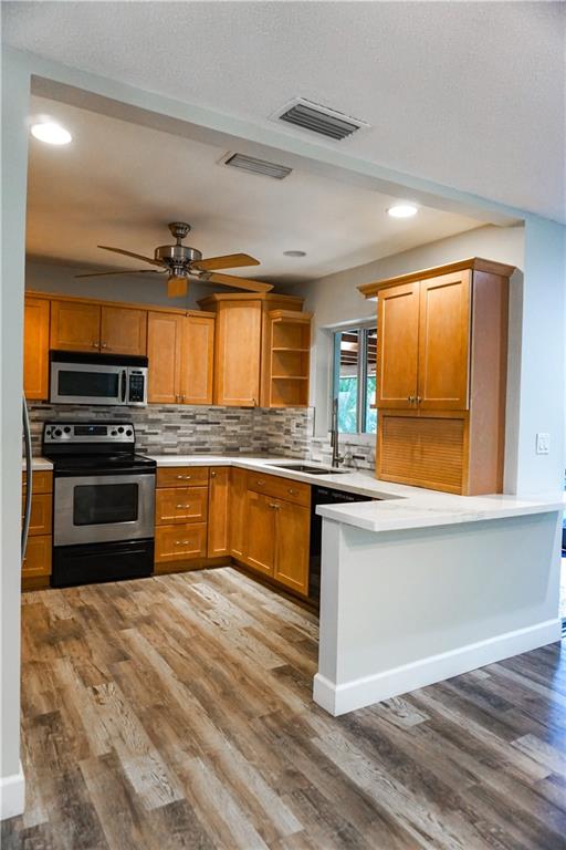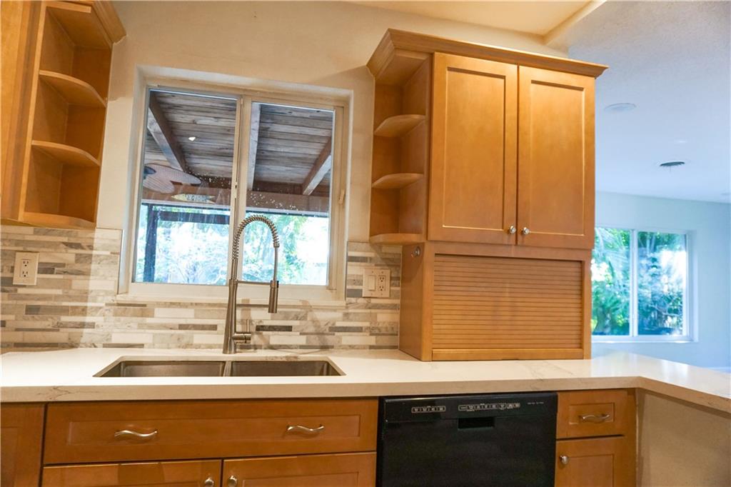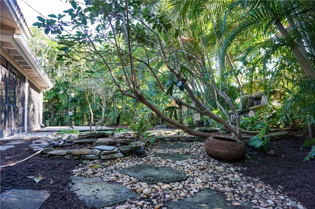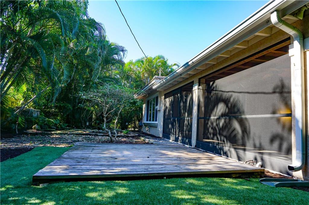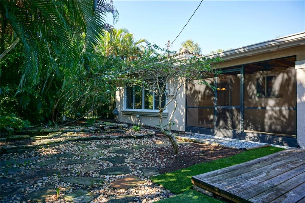 Florida paradise in EAST Pompano Beach featuring covered carport parking to protect your car from the weather with laundry/utility room and fully-permitted wind-rated shed with roll up door perfect for motorcycle, bike and water toy storage. Spacious, open interior including 2 bedrooms with en-suite bathrooms, bright living room leading to dining area and open kitchen with breakfast bar and rear Florida room overlooking lush tropical landscaping and waterfall feature in fenced backyard. Oversized screened porch perfect for indoor-outdoor living and entertaining. Recently remodeled, commercial grade LVP flooring and both bathrooms re-plumbed (2020), driveway freshly recoated. Tankless gas water heater, gas dryer, Ring doorbell and Ring motion activated light on shed.