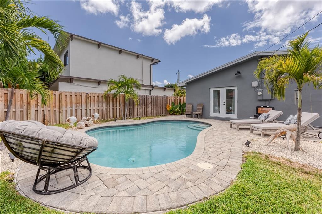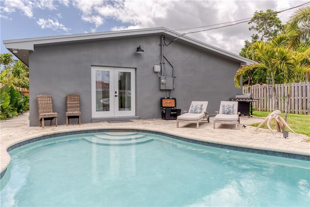 A rare, gorgeous and modern gem near the Kester Park neighborhood of Old Pompano. Beautifully updated throughout with high end finishes, large profile La Fenice ICON Italian tile flooring, huge custom walk-in master closet, new appliances, Impact windows and doors, complete with a stunning backyard oasis with pool and al fresco dining area. The master bedroom boasts impact french doors leading right out to your private pool area as well as a massive ensuite bathroom with oversized shower and Speakman shower fixtures. Walk, bike or golf cart to the Pompano Community Park, Kester Park, Pompano Beach Golf Course, Canine Corner Dog Park, the Pompano Beach Amphitheater, the Pompano Beach Pier or any of the amazing restaurants or shops along the up & coming E Atlantic Blvd. A true gem.