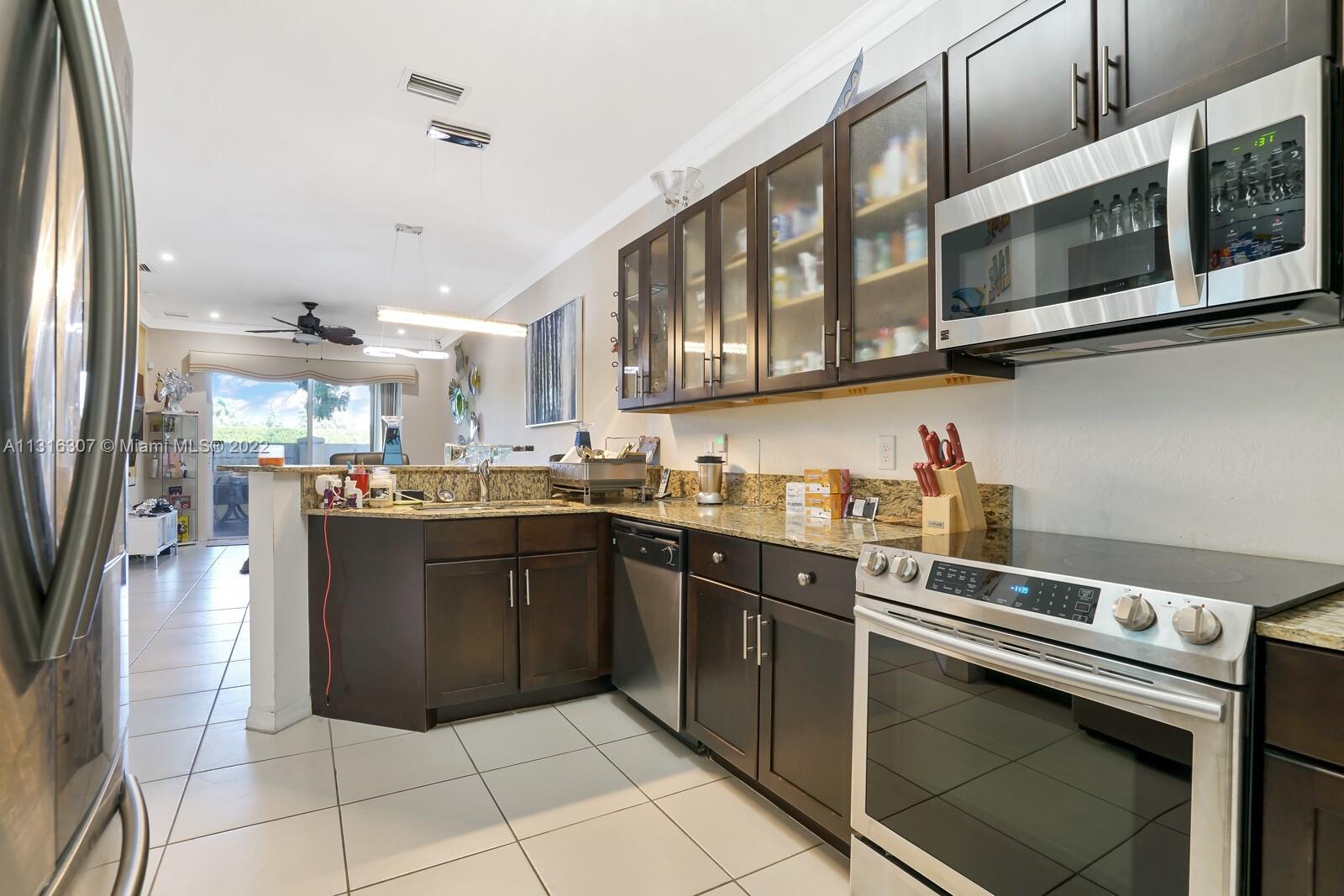 Location!! Beautiful and immaculate townhouse perfectly situated in the desirable gated community of "Village Walk" in Miramar. Featuring 4 bedrooms and 3 bathrooms plus a bonus room, 1 car garage, fenced patio. Nicely updated with modern touches and a stunning glass staircase. State of the art kitchen with stainless steel appliances and granite countertops. Close to all major highways and roadways, Hospitals and schools. Willl not last!!