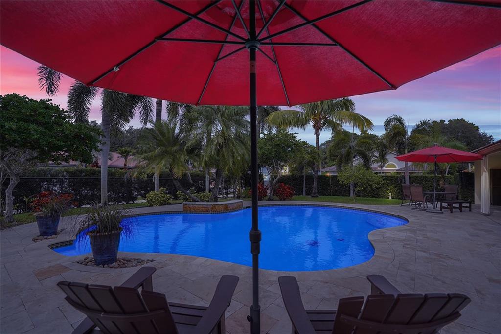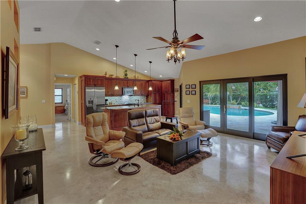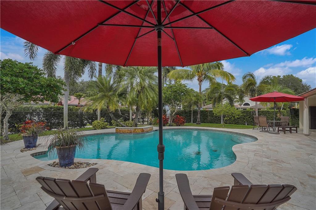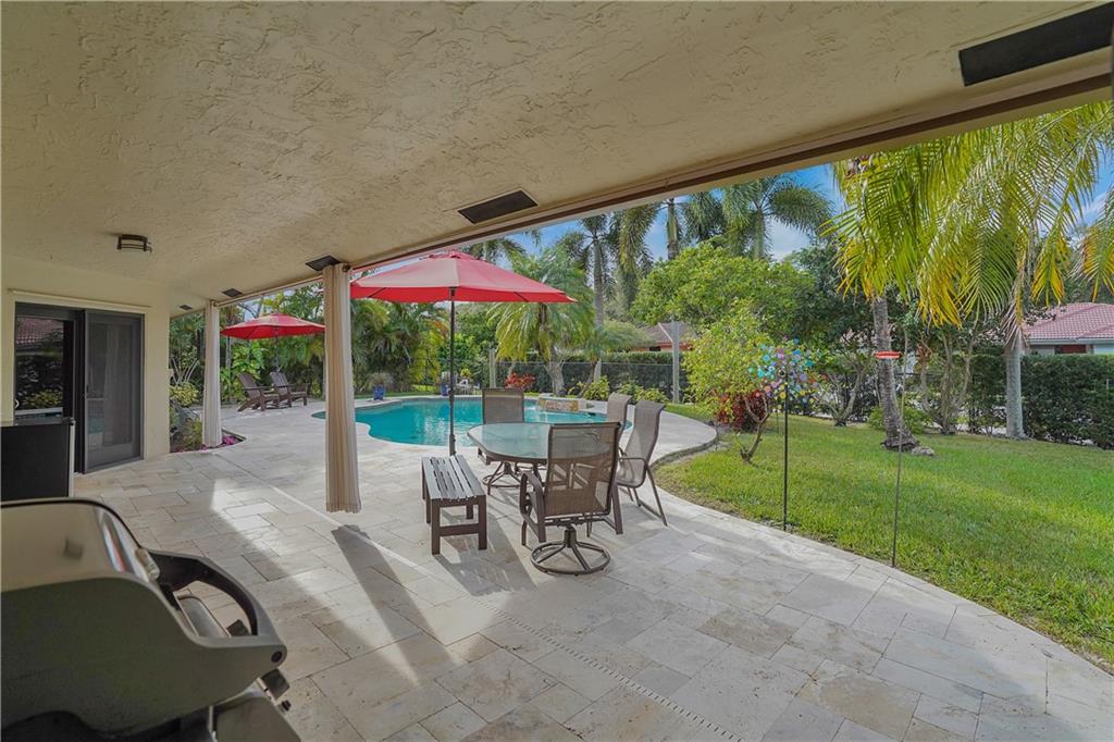 Welcome to your very own corner lot in the extremely quiet neighborhood of Oak Knoll Ridge in Davie…with the added benefit of the Pine Ridge Island County Club. This home features custom kitchen cabinets, SS appliances, high hat lighting, travertine flooring, impact windows and doors throughout and an open layout that flows into the backyard for entertaining. This oasis offers you a beautiful yard, travertine decking, covered patio, and a swimming pool with water falls that was redone in 2016. There is a beautiful nature trail that leads to the country club and children's playground. The roof was replaced in 2008 with flat concrete tile. With quick access to I-595 and plenty of shops, this home has been lovingly cared for by the owners and is ready for a new family to enjoy.