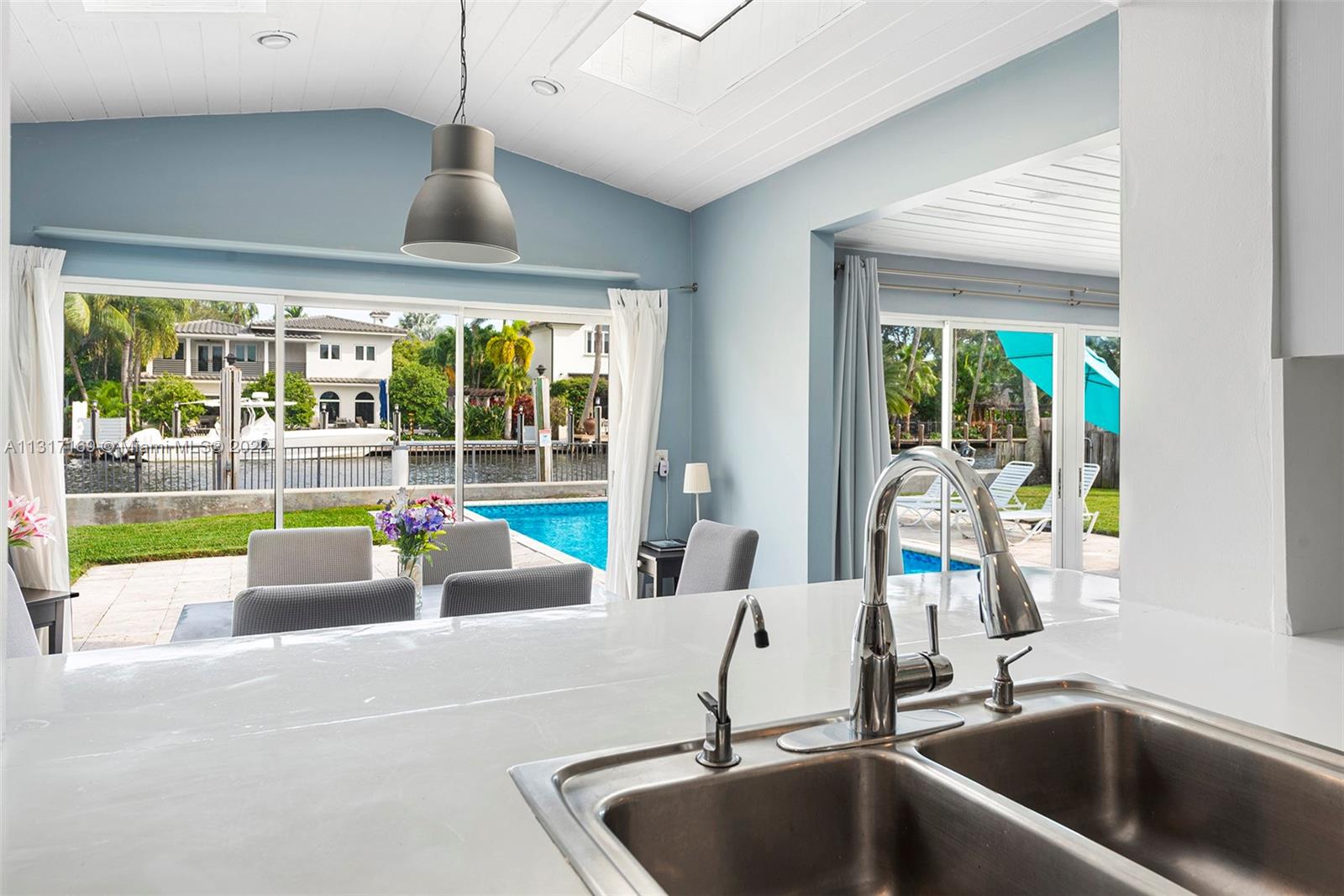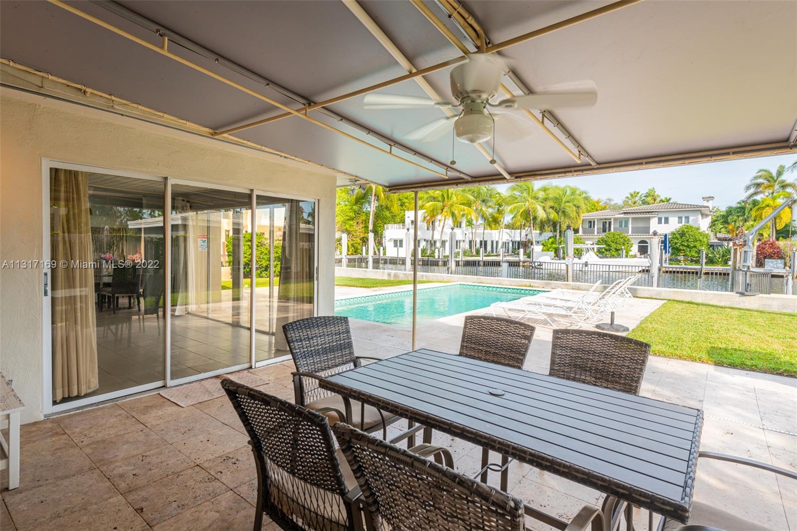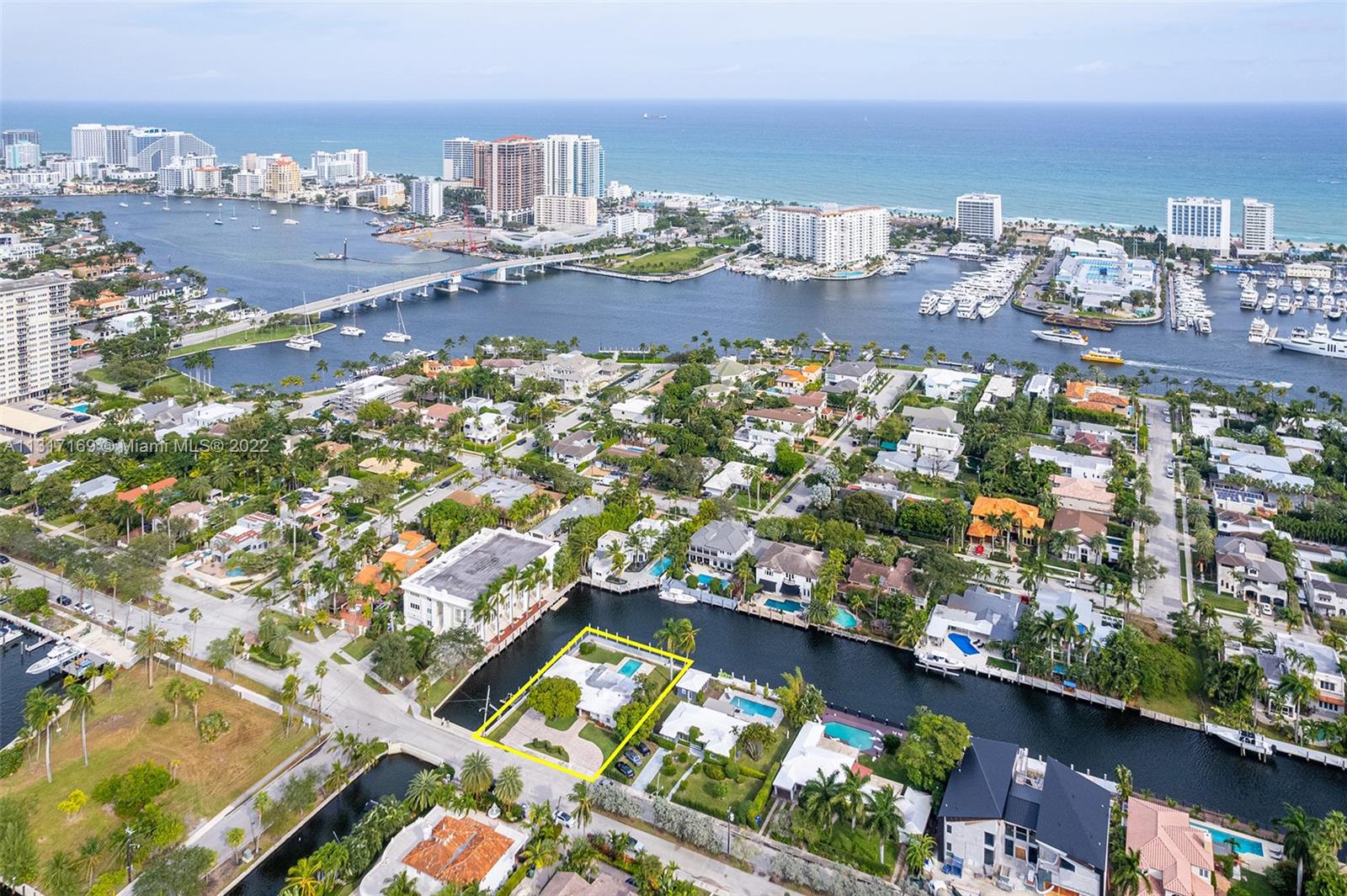 Lovely waterfront home with 215' Waterfront with no fixed bridges located in the gated Riviera Isles (Las Olas). The home sits on a large corner lot surrounded by water on two sides (North side 90' & East side 125'). The home is currently being used as a vacation rental, although the home shows nice it does need some updating. You can build your custom dream home as many new homes are currently being built in the neighborhood. Seawall was recently refitted ready for your boats. Shops, restaurants and the beach are only a few blocks away, a fantastic location!