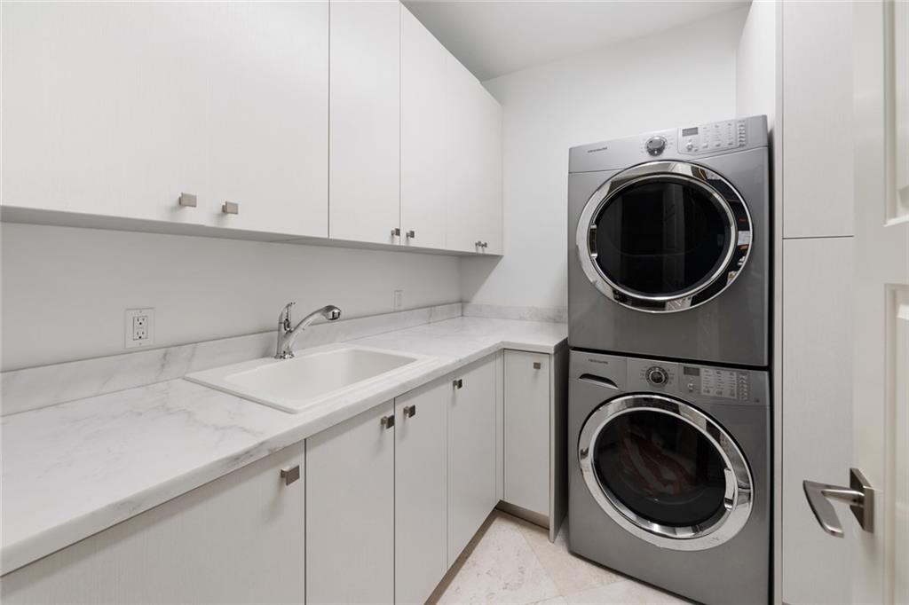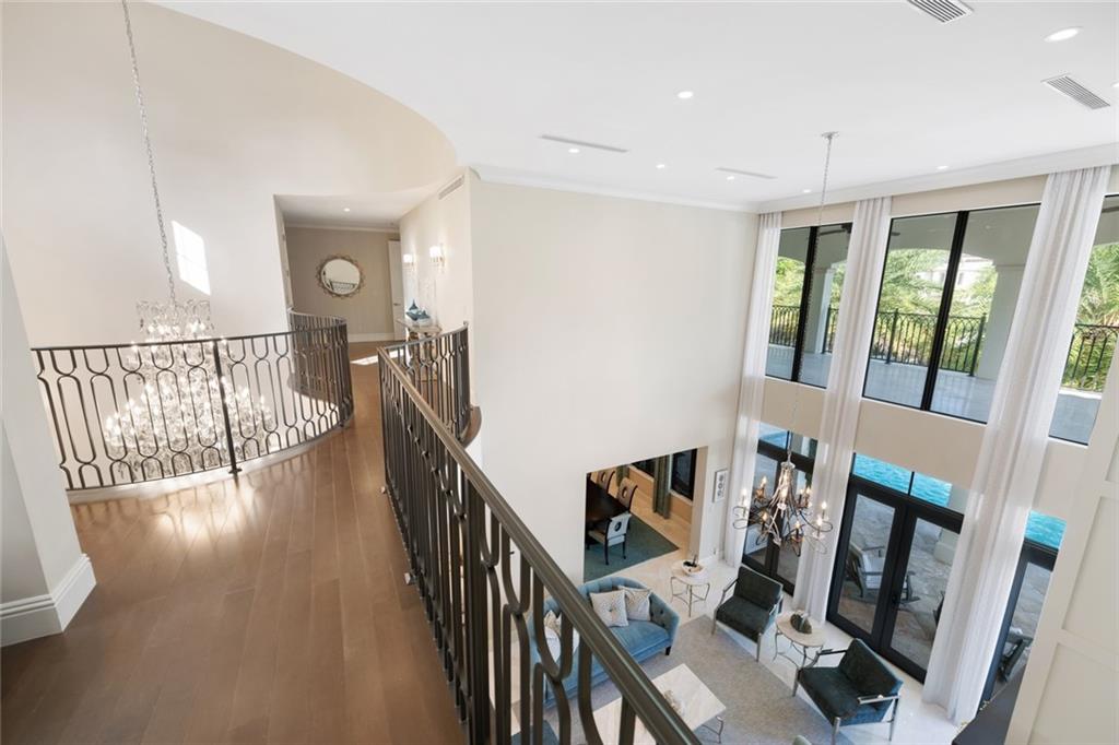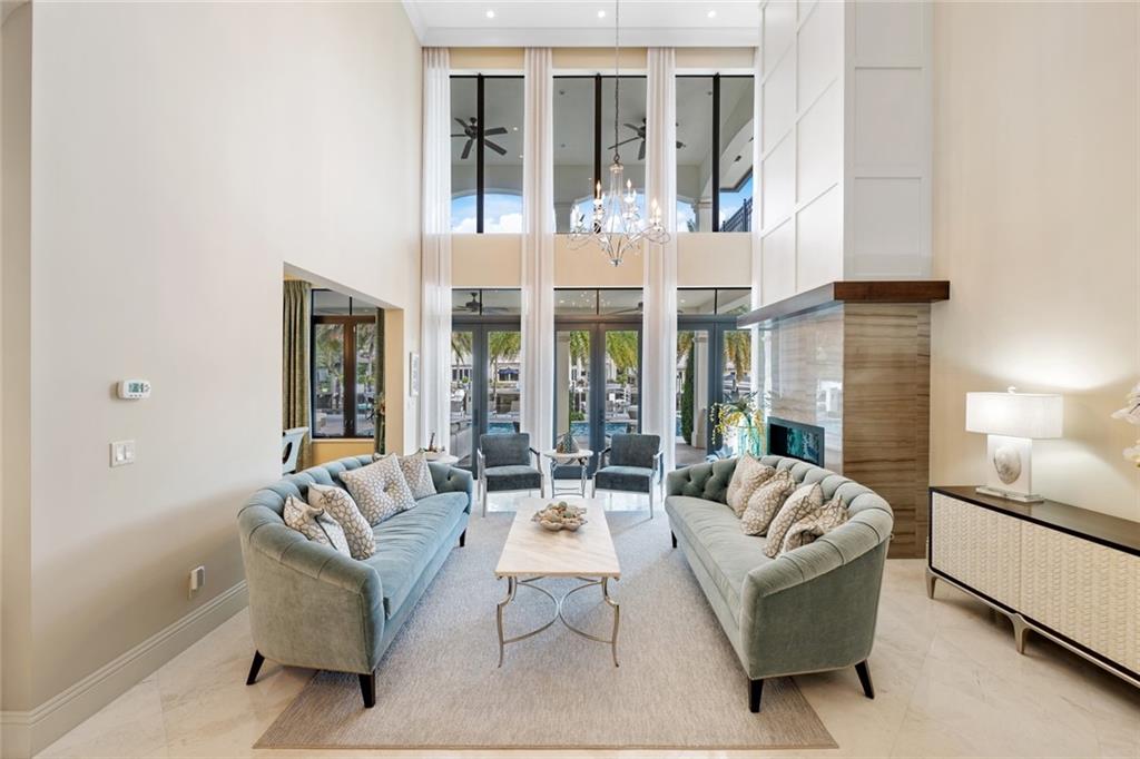 Offered turnkey & available for a quick closing! Stunning transitional custom deep-water residence offers Eastern exposure, resort style grounds, pool & spa, summer kitchen & 95' of deep-water frontage. The professional interior design offers a welcoming coastal modern vibe & open flow that is perfect for entertaining! Elegant entry foyer, 2-story living room & fireplace, adjoining formal dining room & expansive great room, breakfast area with large & well-equipped Chef's kitchen (all water facing). home office & potential bedroom on first level, 2 laundry rooms,custom lighting & drapery throughout. Grand staircase/elevator to 4 spacious bedrooms & incredibly well proportioned primary suite, sitting area, ultra-luxurious spa bath & large custom closets, access to oversized covered balcony